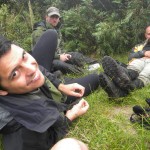 um ponto de referência que estamos próximos de sair da água para a trilha. Nessa descida não teve como escapar dos tombos no rio gelado e da ansiedade em sair daquele lugar, já fazia mais de doze horas que estávamos caminhando. O cansaço começou a tomar conta de todos.