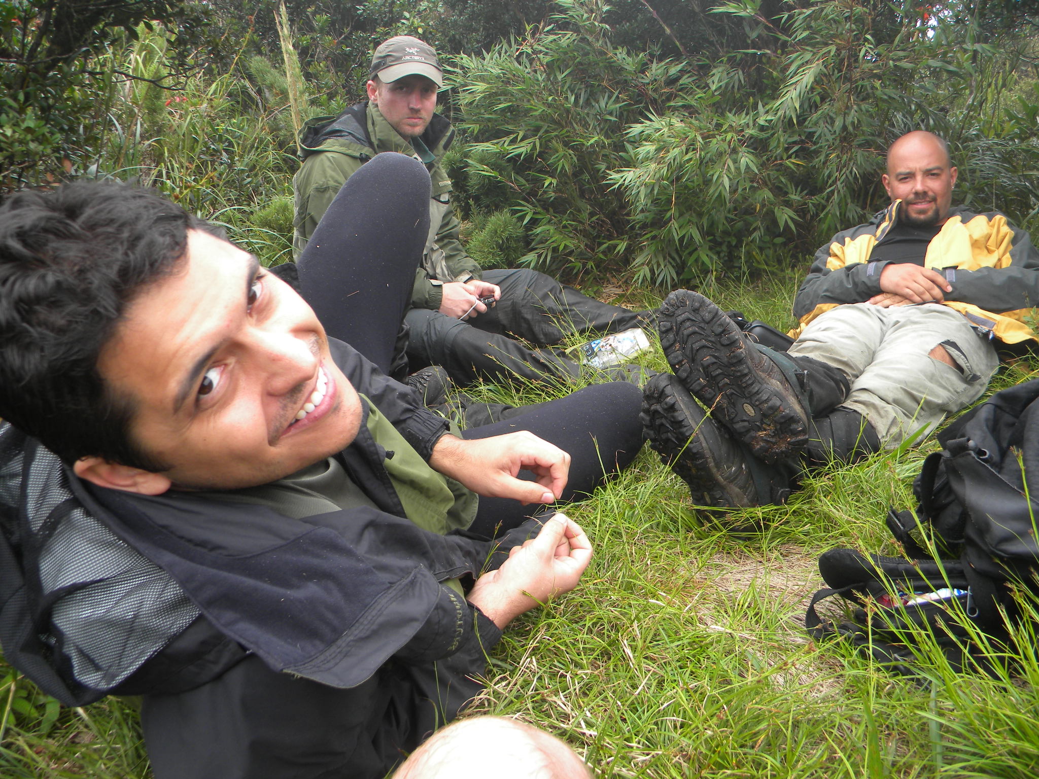 A descida do Ciririca rumo ao Agudo da Cotia é bem íngreme, como fazia três dias que chovia na serra, a trilha estava bem molhada e escorregadia. Na descida de um trecho quase que de 90°, com o auxílio de uma corda velha que esta lá que já faz, sabe Deus quanto tempo, o Vinicius acabou escorregando e batendo o dedo direto na pedra, é provável que neste pequeno acidente o seu dedo indicador tenha quebrado, pois, minutos depois começou inchar e doer.