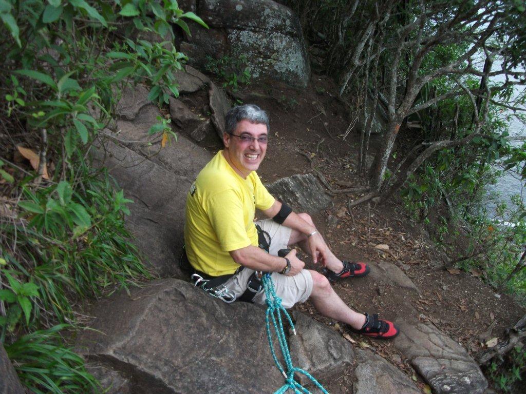 Acho que fazia alguns anos que eu não ia para a montanha com alguém que não era do meio. A muito tempo que não via alguém ficar tão encantado em subir uma parede ou fazer uma caminhada. Jair, um grande amigo, meu tutor e conselheiro do meu ramo profissional, ficou com cara de criança quando vai ao parque de diversões pela primeira vez. Naquele momento me deu uma pitada de inveja naquele sorriso, pois hoje fica cada vez mais difícil passar por isso novamente, cada vez mais temos que nos arriscar e ir cada vez mais longe a procura desse sentimento de satisfação e encanto, não que eu não me encante com tudo que vejo e passo na montanha, mas daquele medo constante, do frio na barriga em tudo que se vê e se faz e outras dezenas de sentimentos que temos quando estamos fazendo alguma coisa muito boa pela primeira vez.