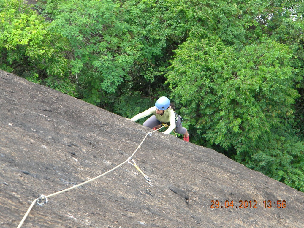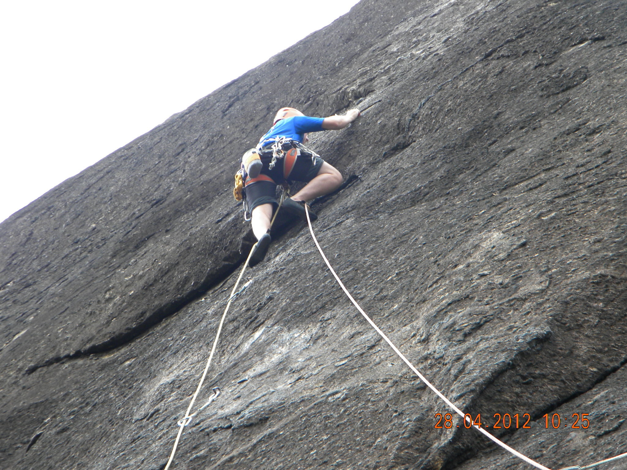 Como o tempo não firmava revolvemos voltar a escalar no Babilônia, o Otaviano e a Carol foram para uma via e eu e a Michelle para outra, deixei ela guiar a maioria das cordadas, pois ela ainda não tinha escalado nada ainda e estava na fissura de fazer alguma coisa.