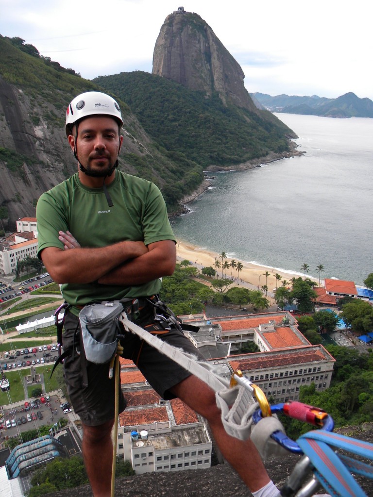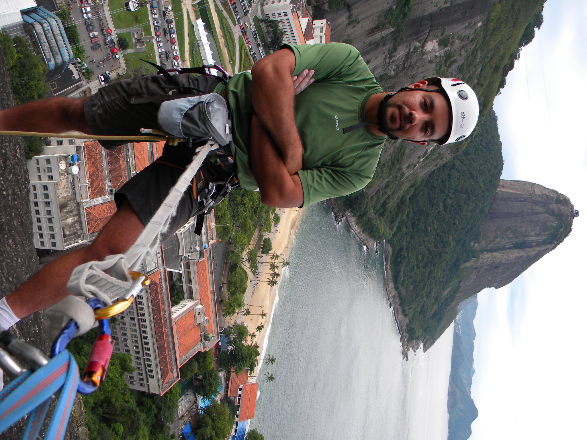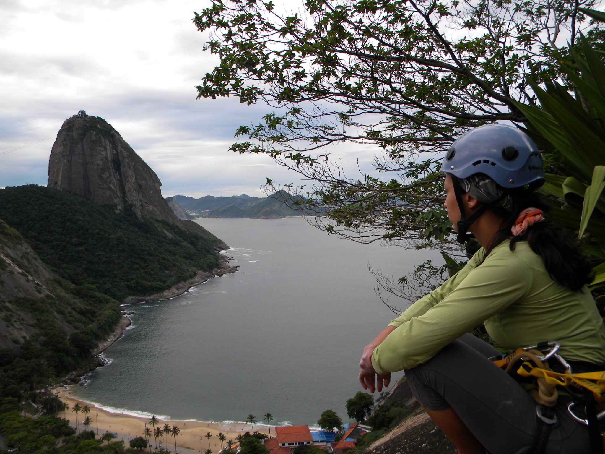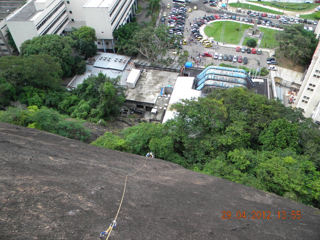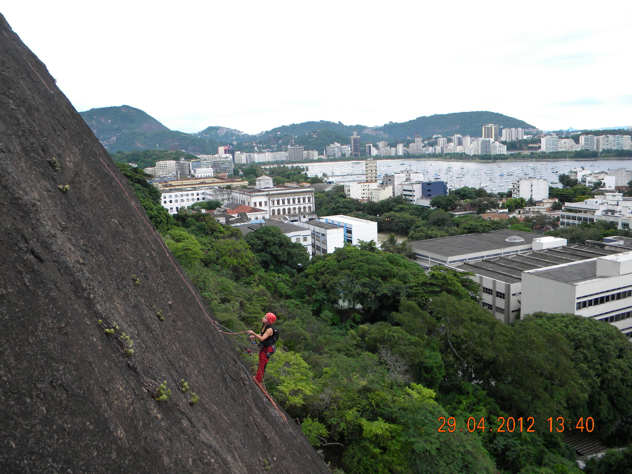Como o tempo não estava dos melhores e, segundo a previsão, melhoraria no próximo dia, a Michelle decidiu estudar porque tinha que terminar um trabalho, eu, Otaviano e Carol fomos escalar no Morro do Babilônia, as vias de escalada ficam atrás do Bondinho, nós do Paraná, não estamos acostumados a andar menos de cinco minutos para começar a escalar.