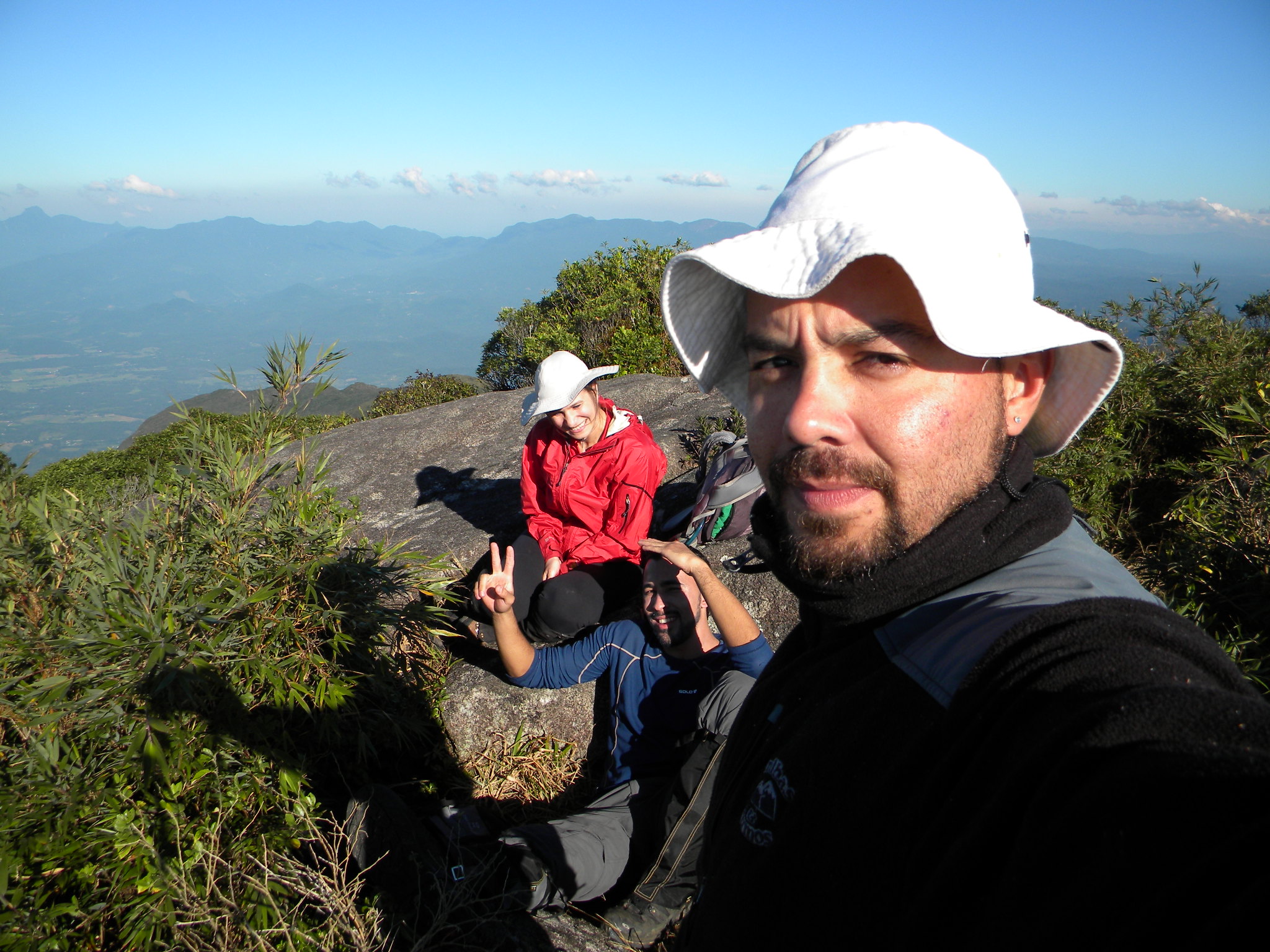 No cume, algumas fotos, um bom lanche e descansamos um pouco. Retornamos pela Noroeste por onde passamos pelos cumes do Gigante, Ponta do Tigre e a Esfinge, essa última só passamos porque o Lucas e a Michelle ainda não conheciam.