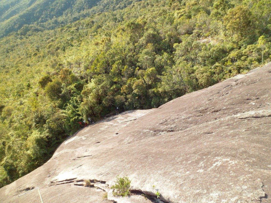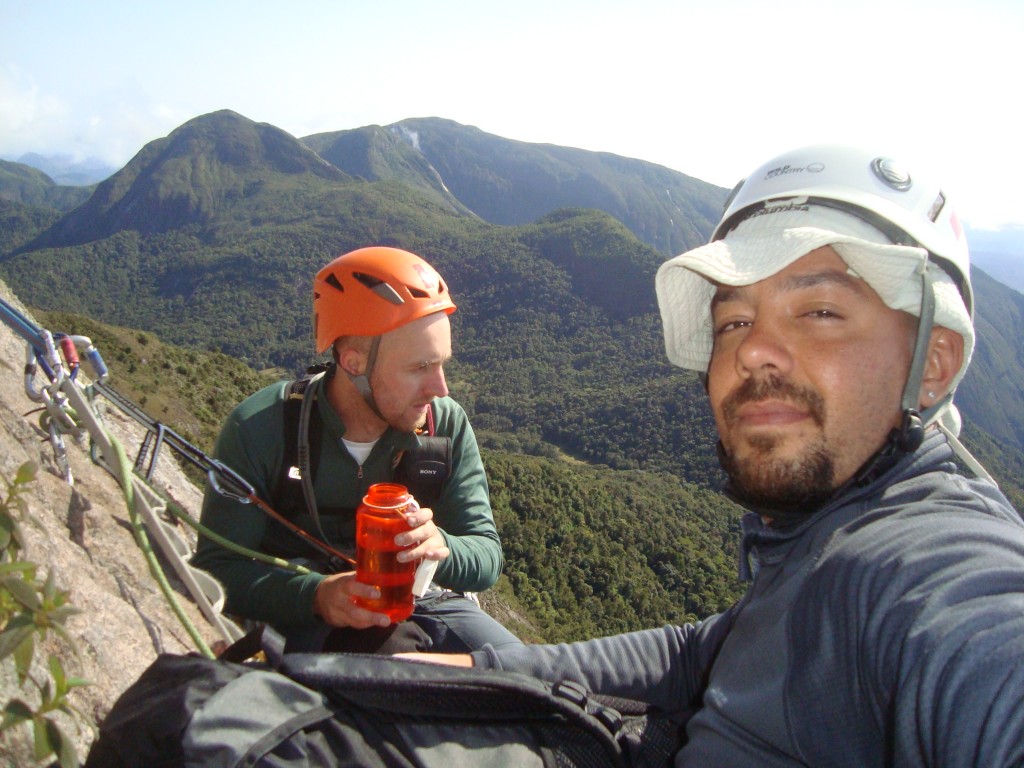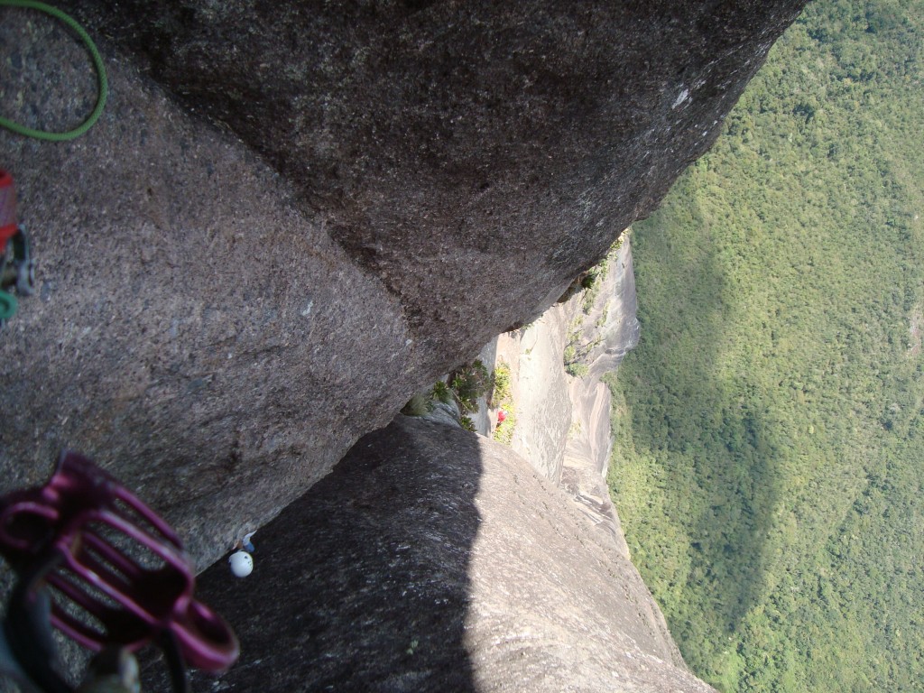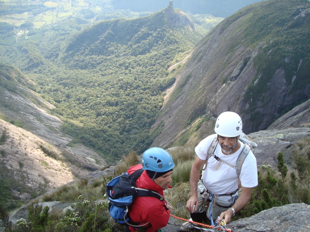 O chato são os 12 rapeis que precisa fazer, a linha que escolhemos para descida foi pela via Sylvio Mendes que acaba entre o colo do Pico Maior e o Capacete, quase 3 horas de rapel e mais 1:30 de caminhada até o refugio.
