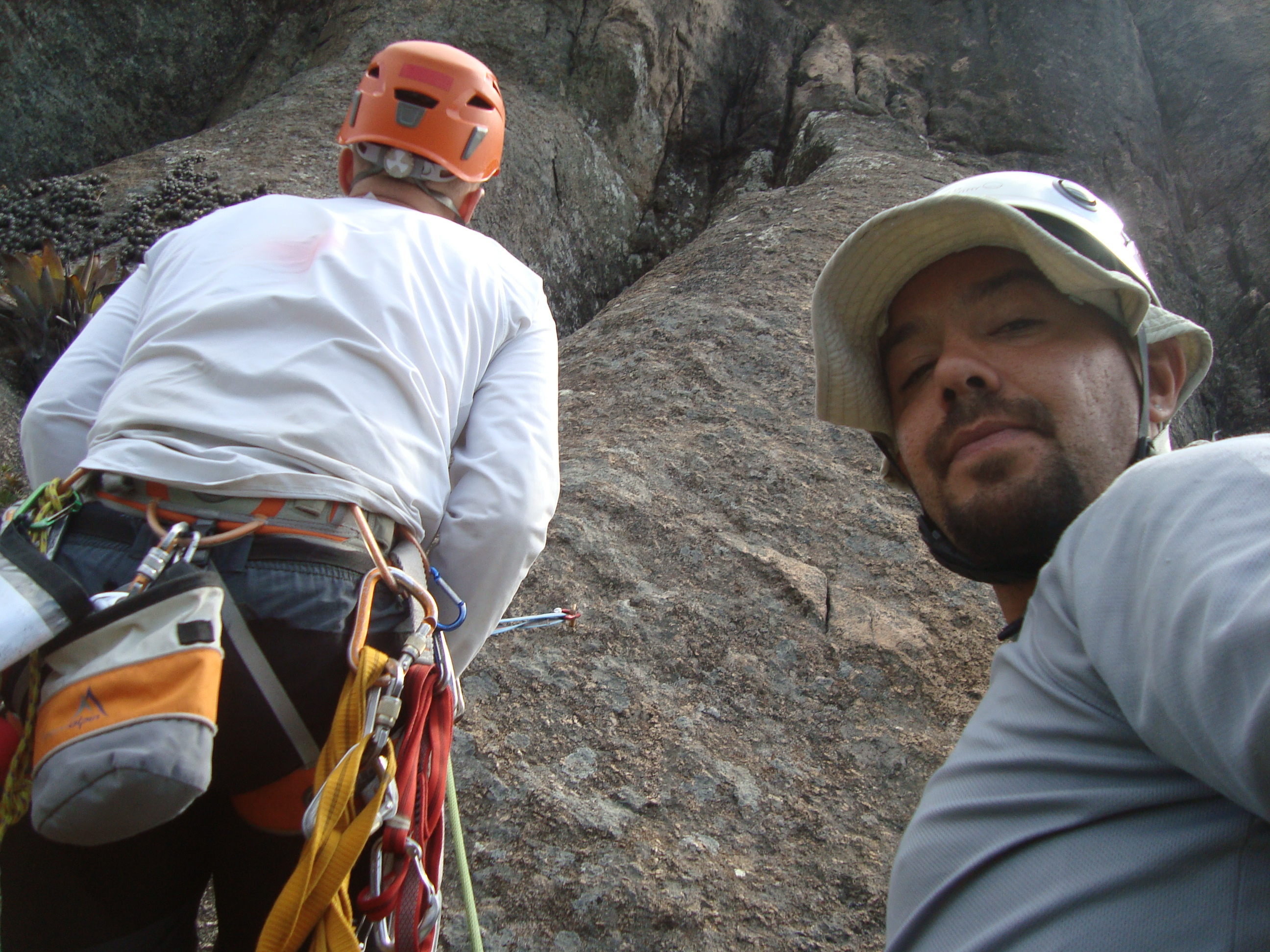 A cordada em A0 foi mais tranqüila que eu esperava, um pouco cabreira por causa das proteções bem antigas.