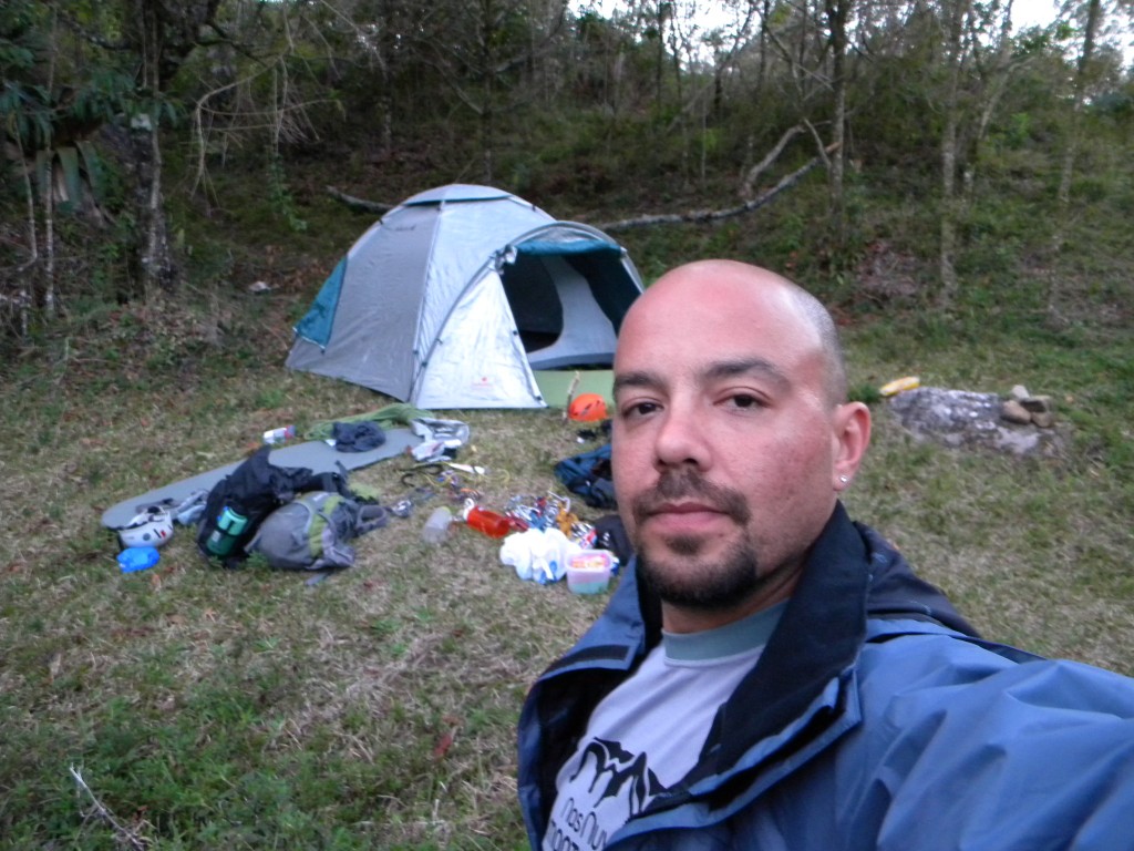 As 6:30 da manhã estávamos na base da via, a caminhada foi tranqüila com 1:30 do camping até a parede.