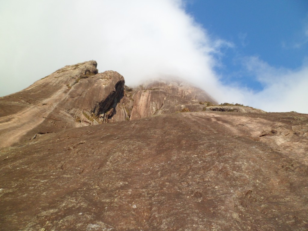 A via escolhida para subirmos o Pico Maior foi a clássica “Face Leste” (D4 5° V (A0/VI+) E3), um paredão de 700 metros que você só tem noção de sua grandiosidade quando está na base da parede.