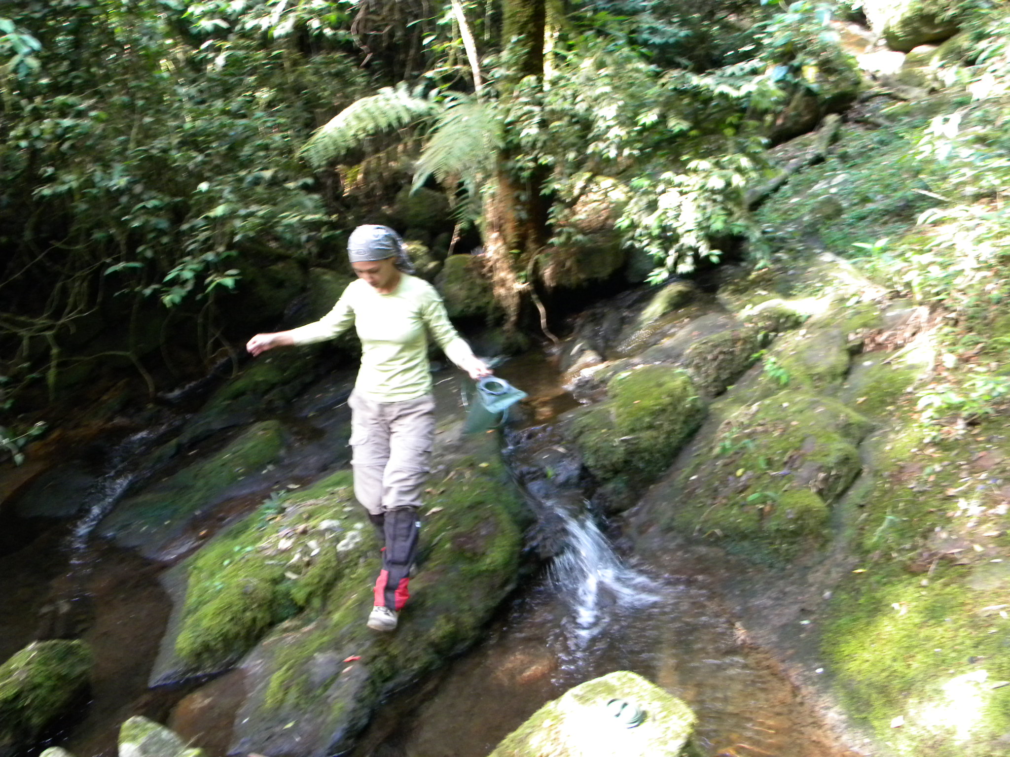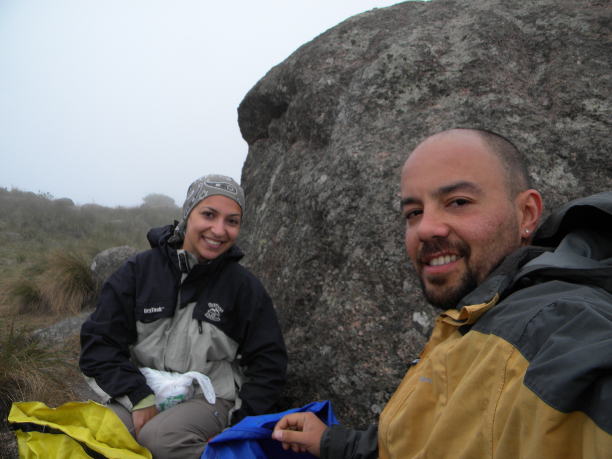 Começamos a caminhar as 14:30 na Fazenda da Bolinha, em 2 horas estávamos no cume do Camapuan. O tempo fechado, o vento forte e o frio que fazia, resolvemos descer o quanto antes.