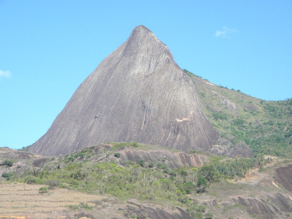 Na entrada da cidade já conseguimos avistar nosso primeiro objetivo, Pedra Paulista, a maior parede de escalada do Espírito Santo.