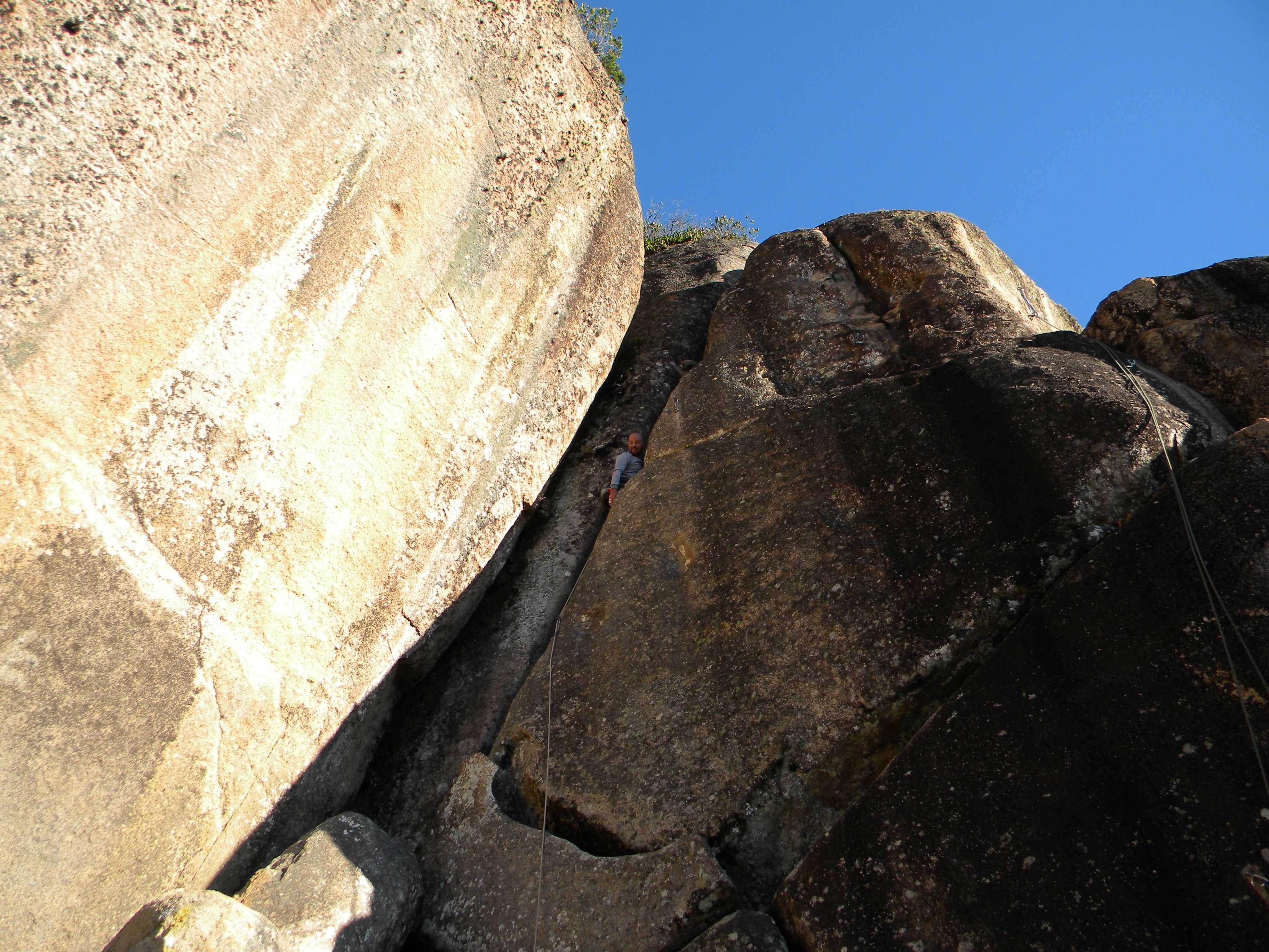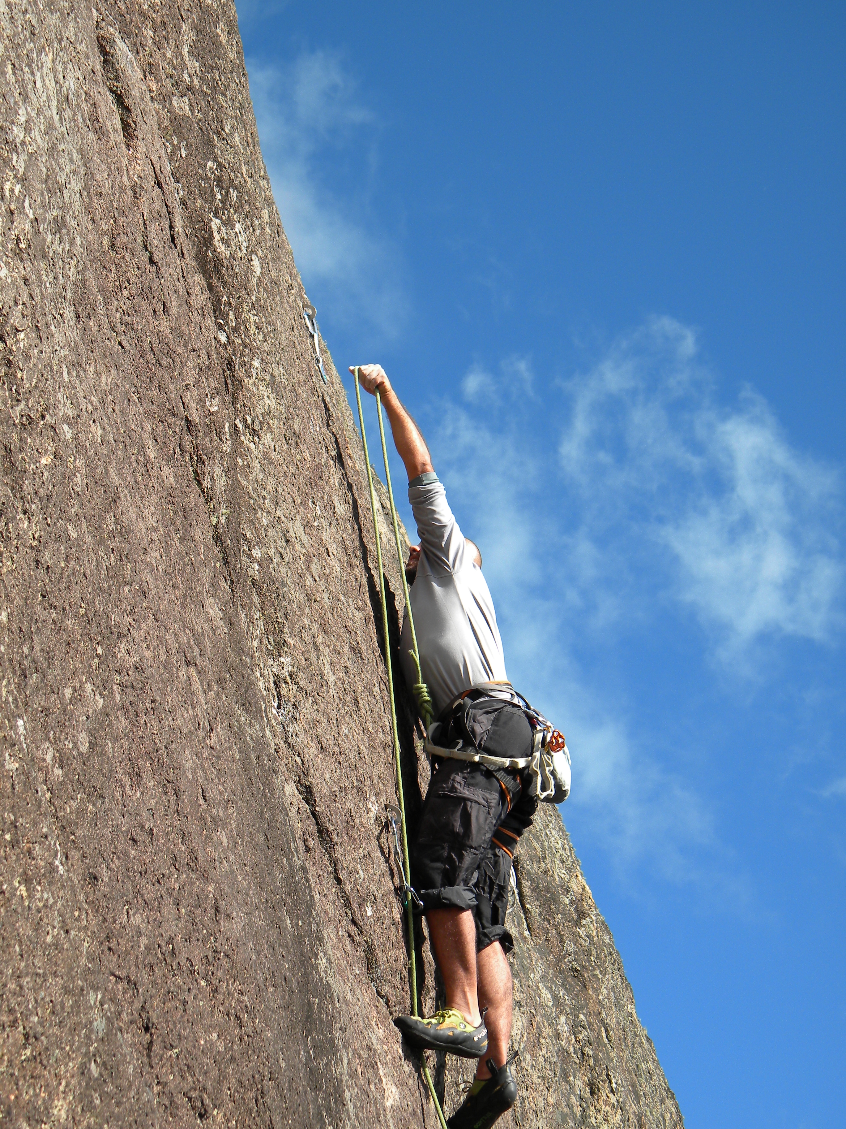 A via Laranja Mecânica, um 7a, foi à segunda via que entrei, fica a diga de fazer ela como a ultima via do dia, pois no final da escalada vc não sente mais as pontas do dedo. O restante das vias que fiz no decorrer do dia foram bem doloridas devido eu ter fritado as pontas do dedo já no inicio da escalada.