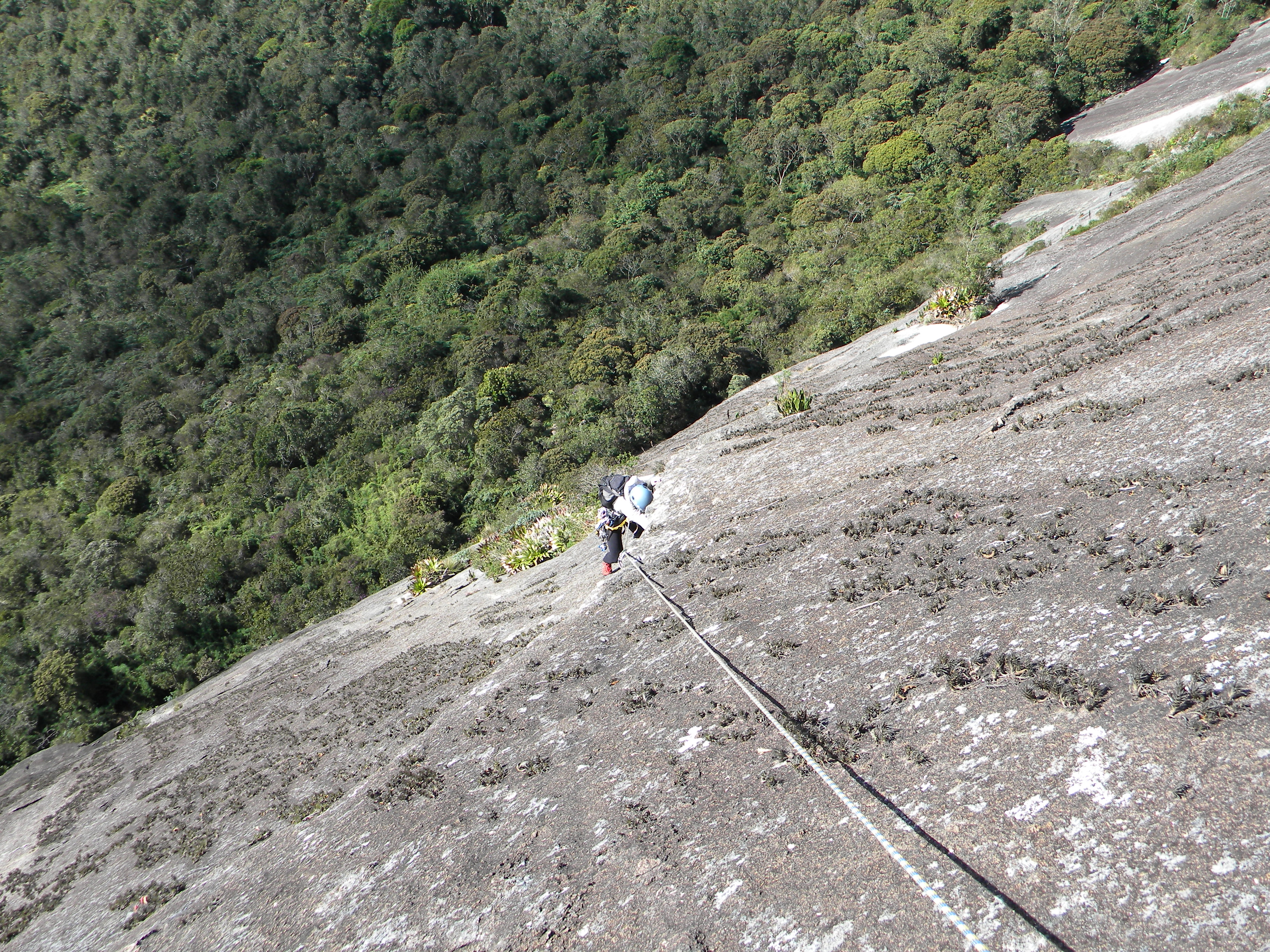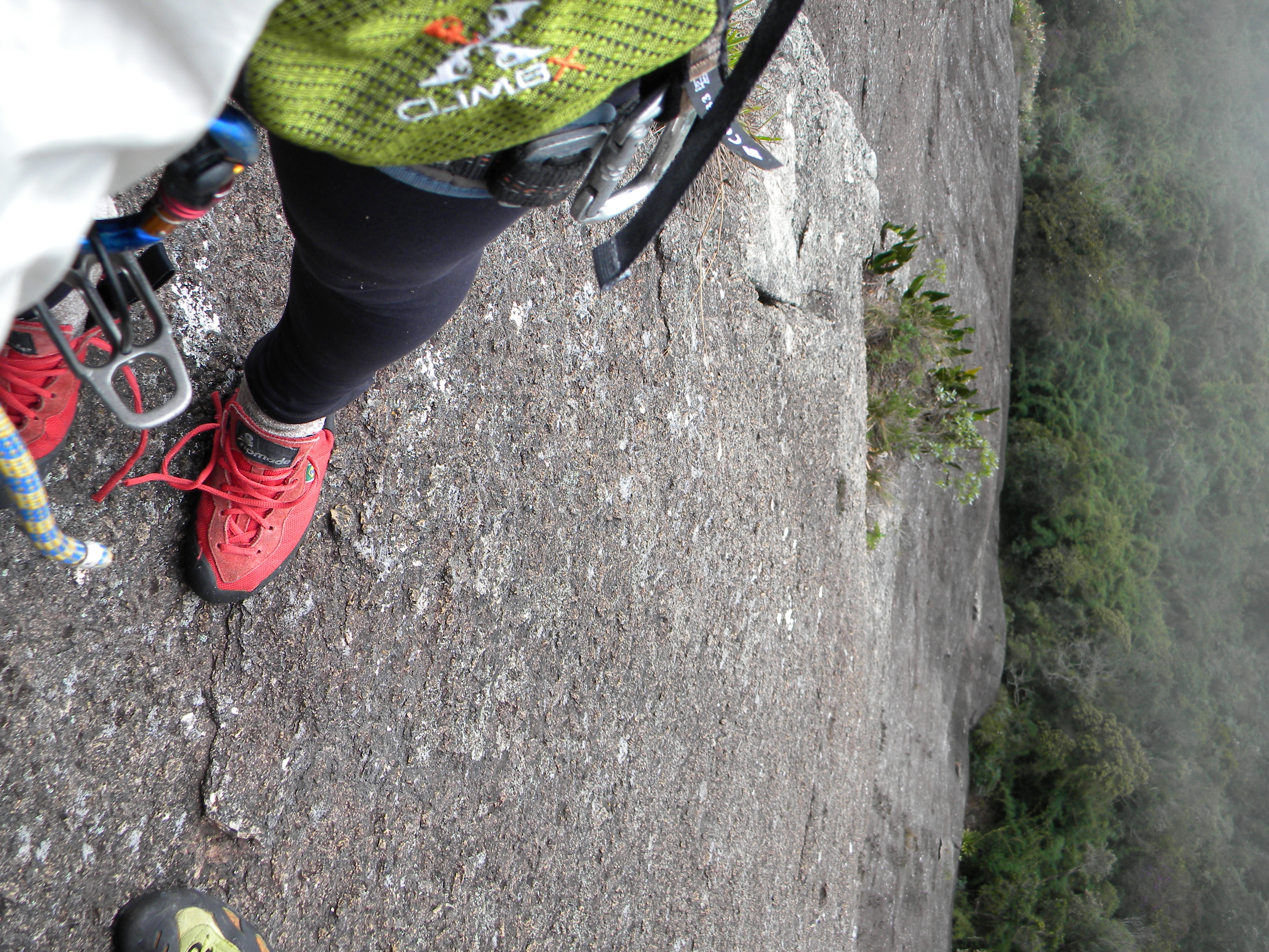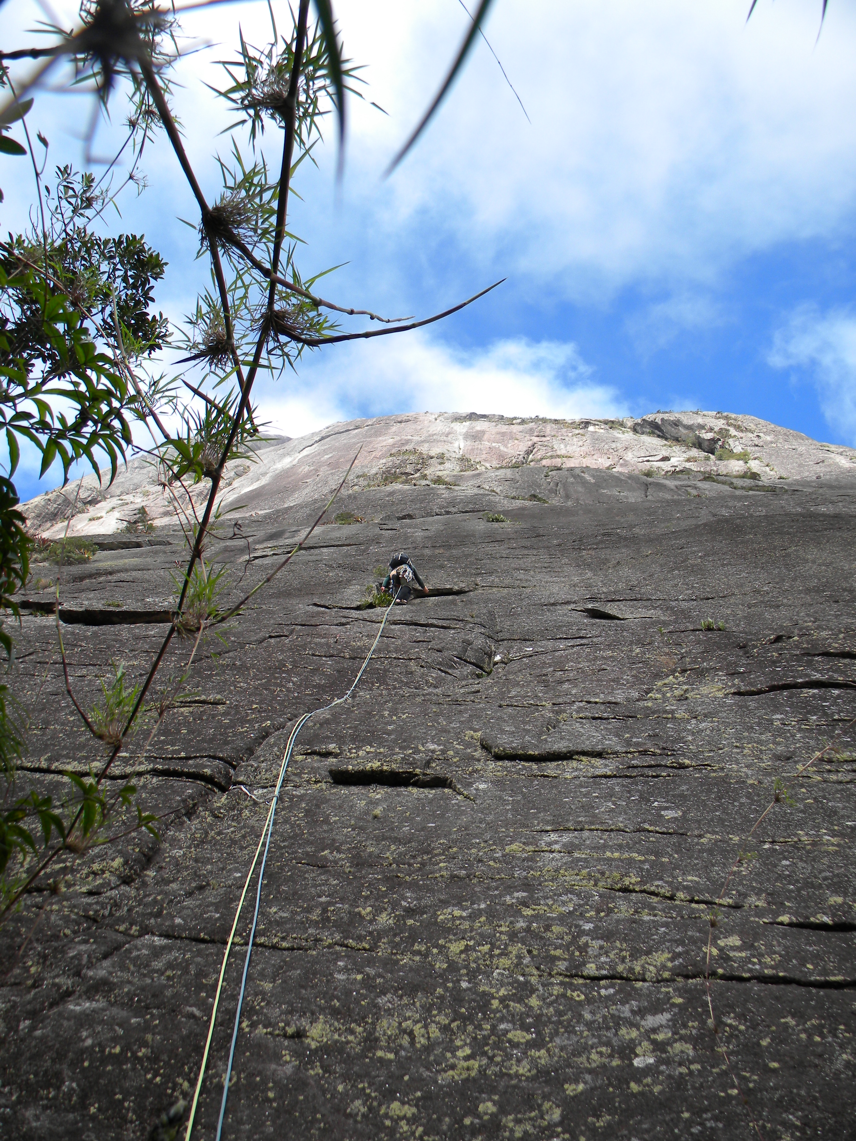 A escalada foi um tesão, cada cordada era diferente da outra, a 3° enfiada foi uma das melhores cordadas da via, além de ser muito bonita, quando vi o Otaviano fazendo o diedro parecia bem complicada, mas depois que entrei vi que não era um bicho de sete cabeças. Vários esticões, na saída de cada parada sempre tinha um lance um pouco mais delicado, me diverti muito com a Michelle nessa via.