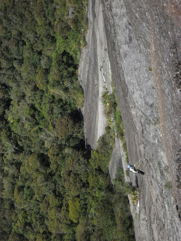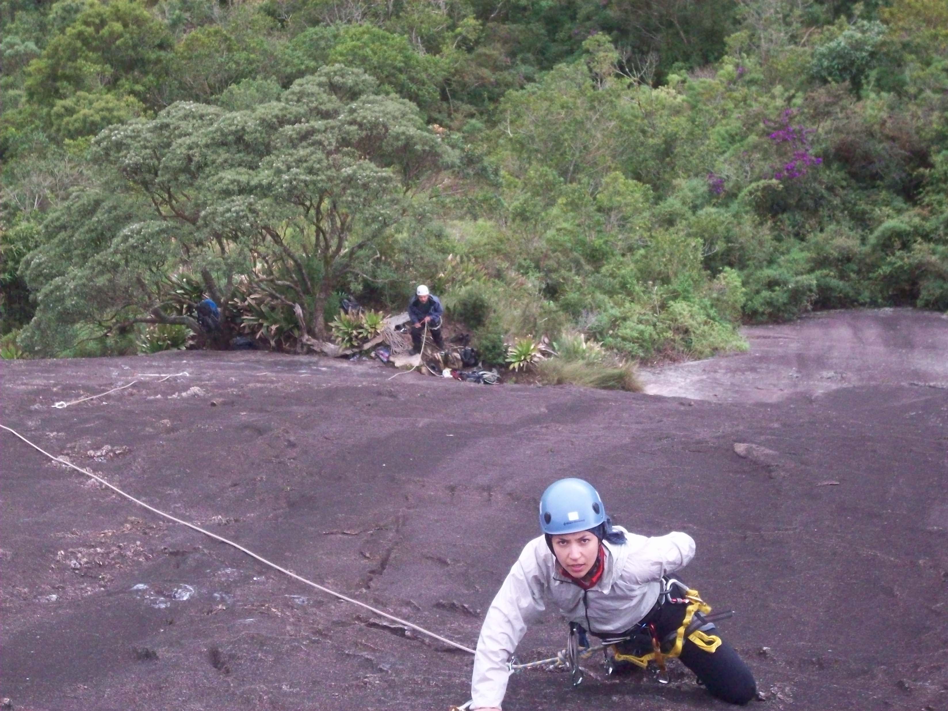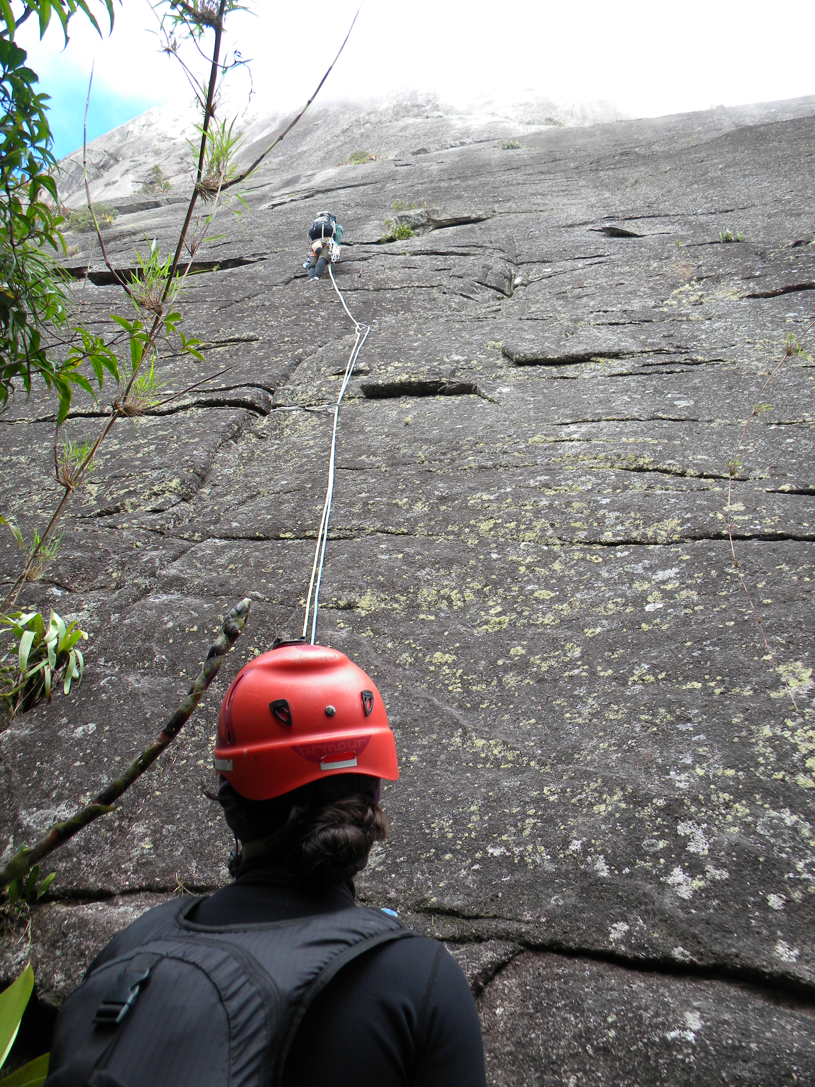A escalada foi um tesão, cada cordada era diferente da outra, a 3° enfiada foi uma das melhores cordadas da via, além de ser muito bonita, quando vi o Otaviano fazendo o diedro parecia bem complicada, mas depois que entrei vi que não era um bicho de sete cabeças. Vários esticões, na saída de cada parada sempre tinha um lance um pouco mais delicado, me diverti muito com a Michelle nessa via.