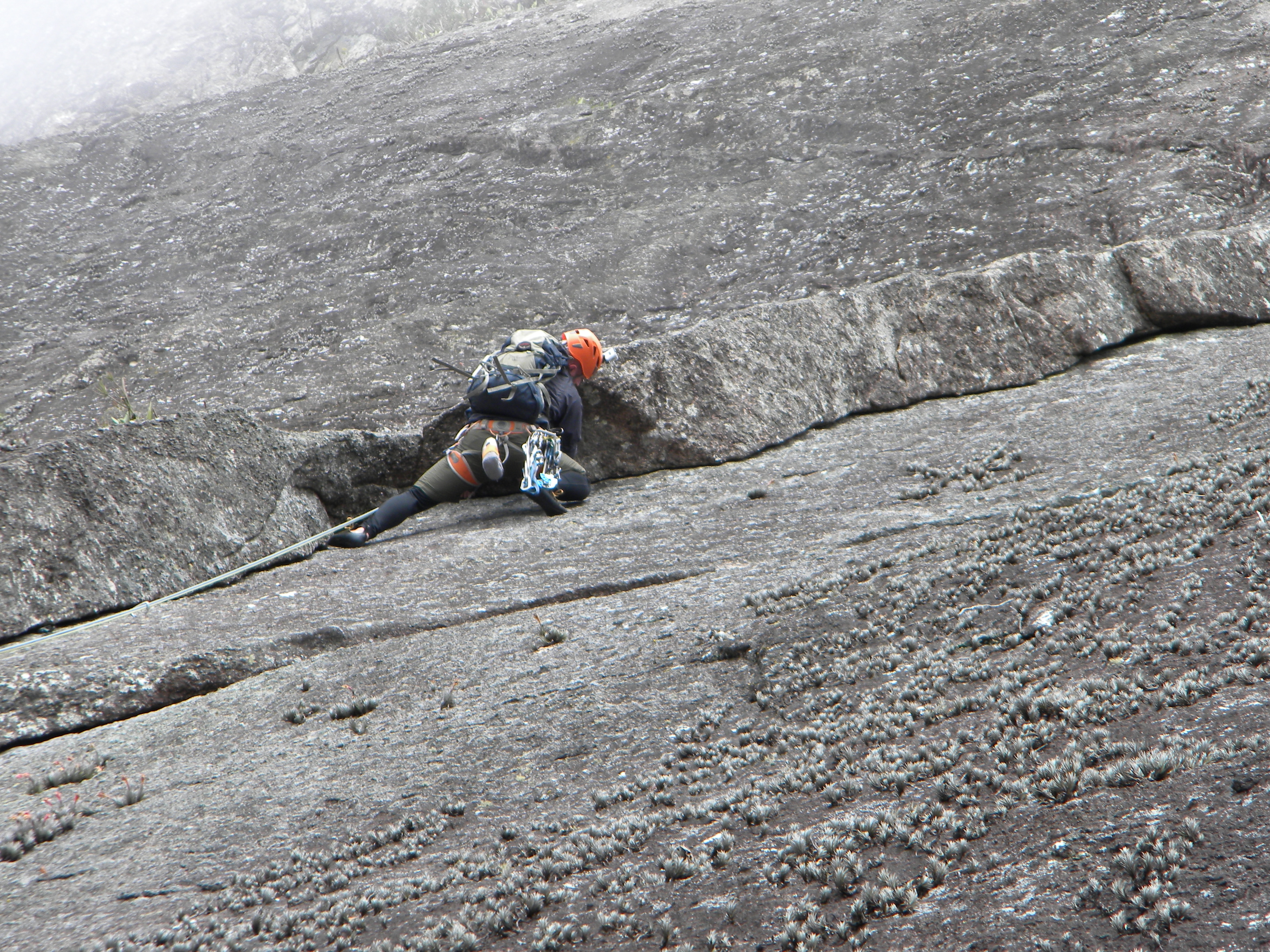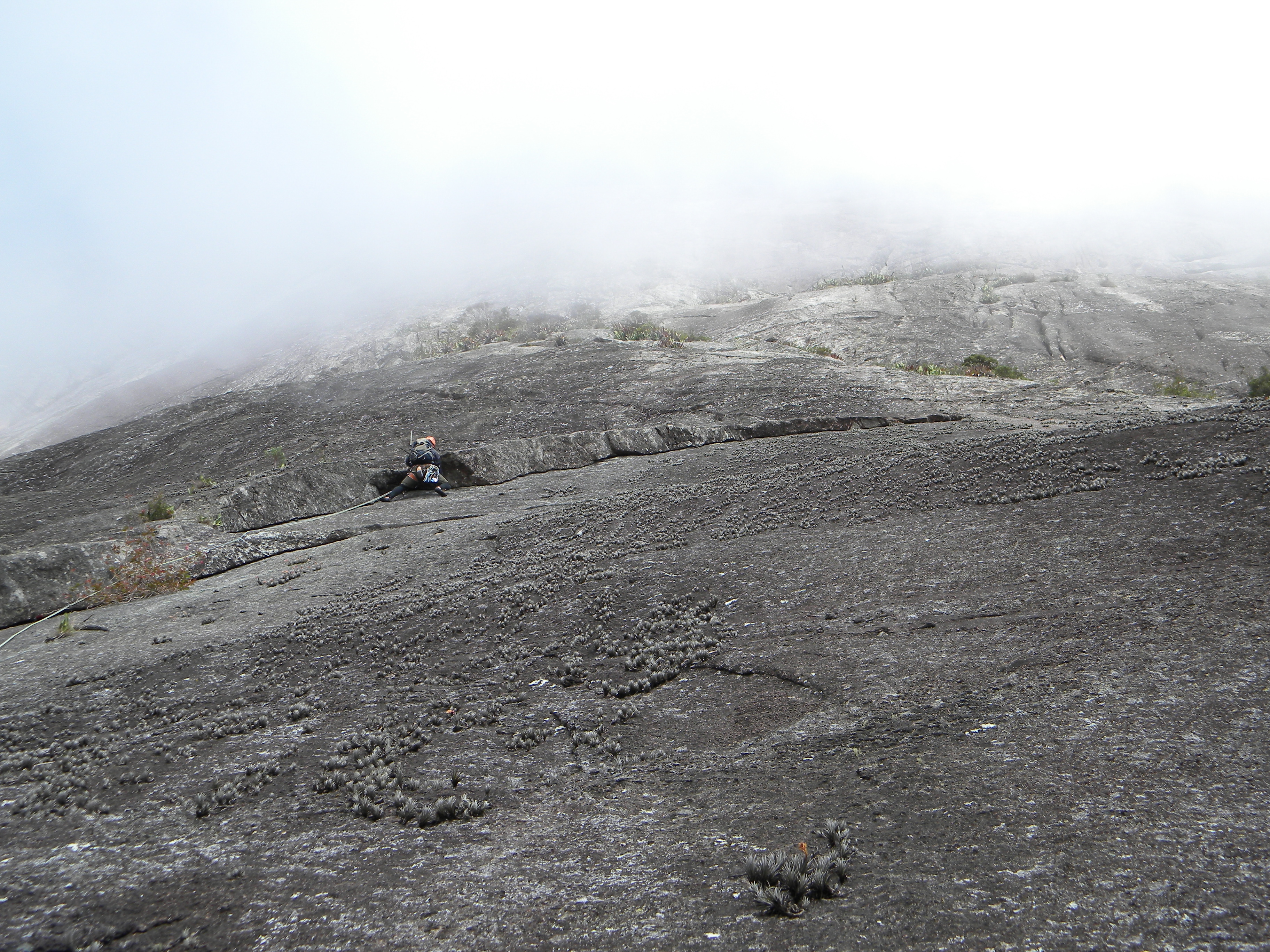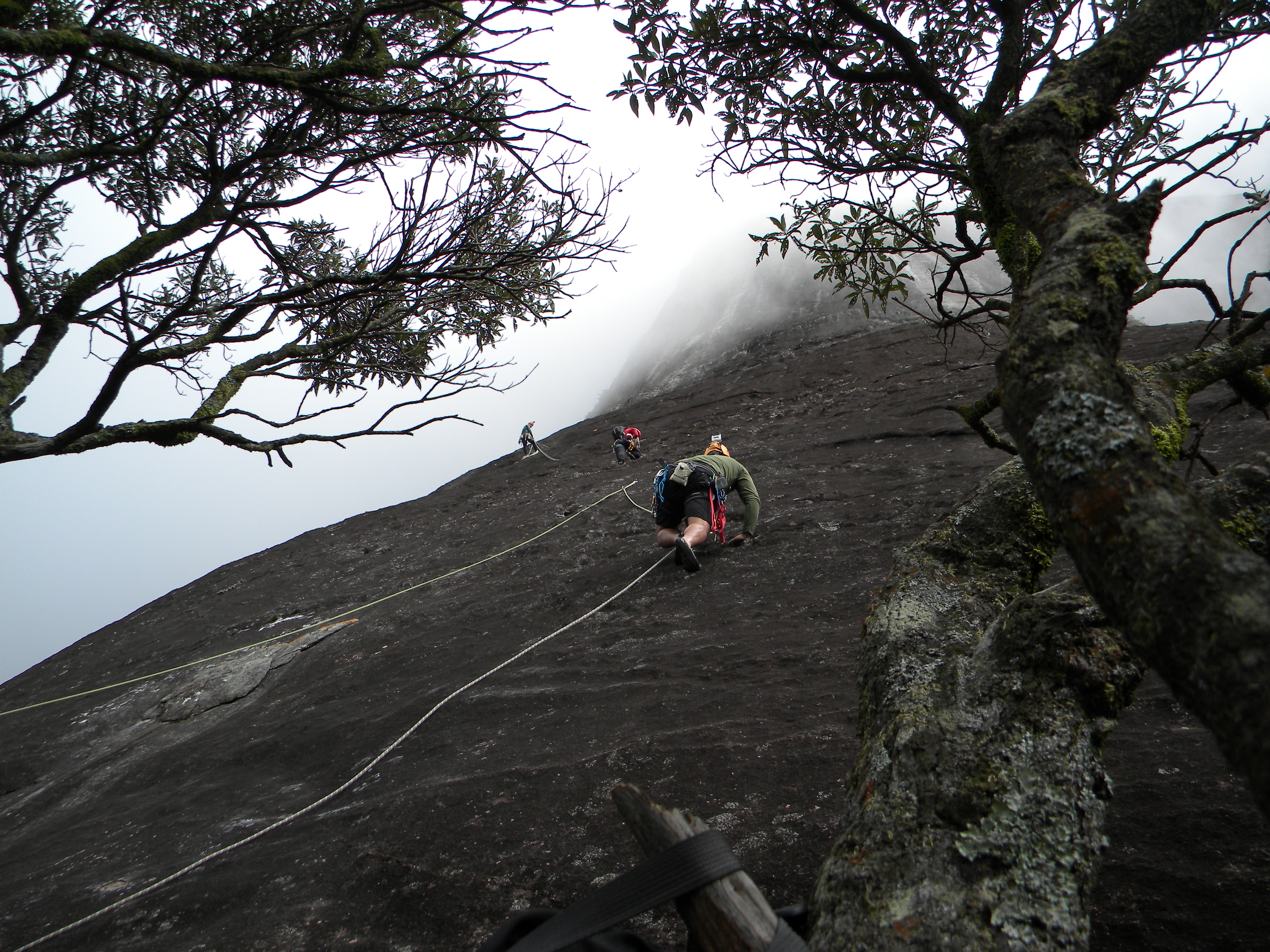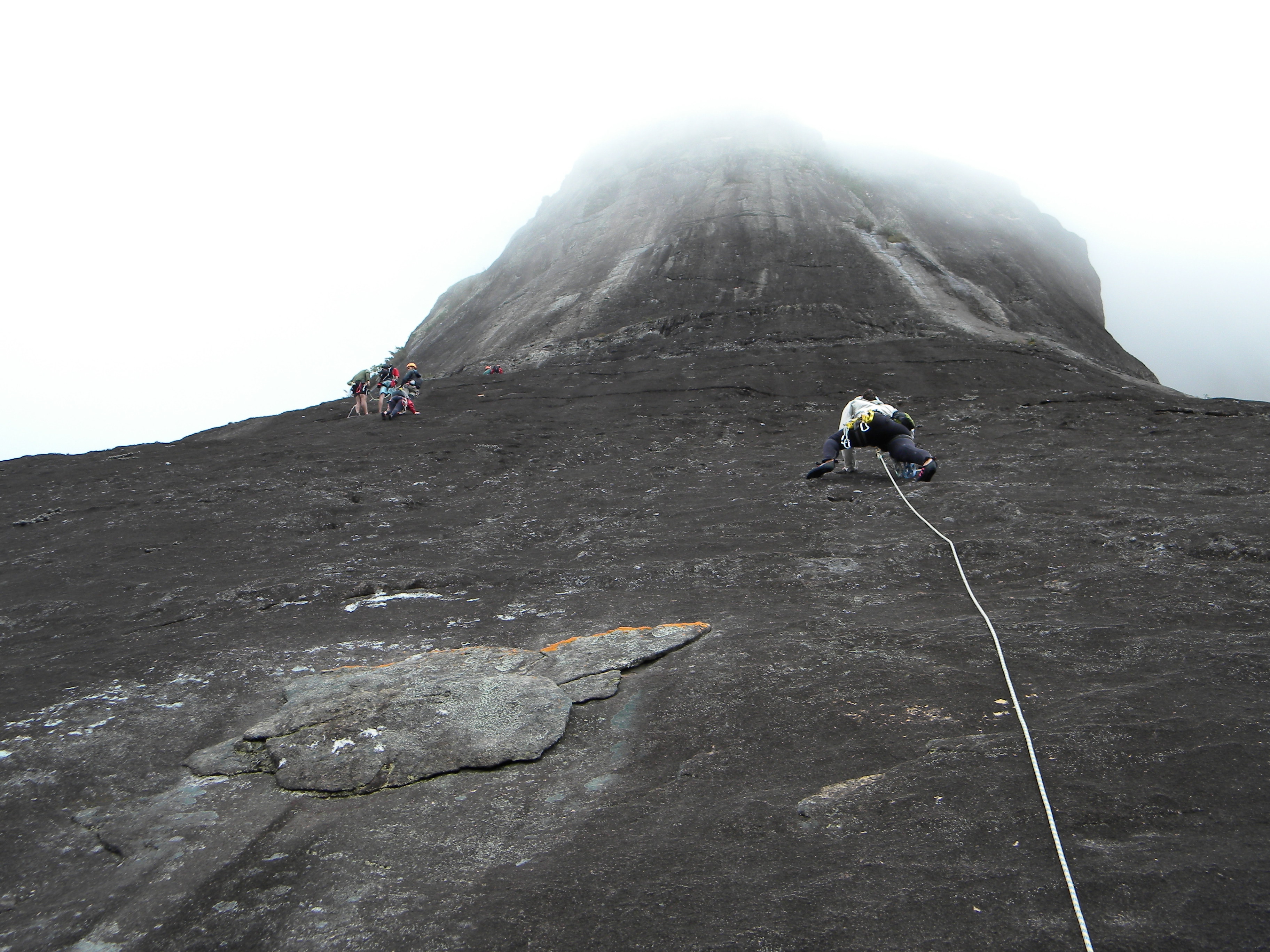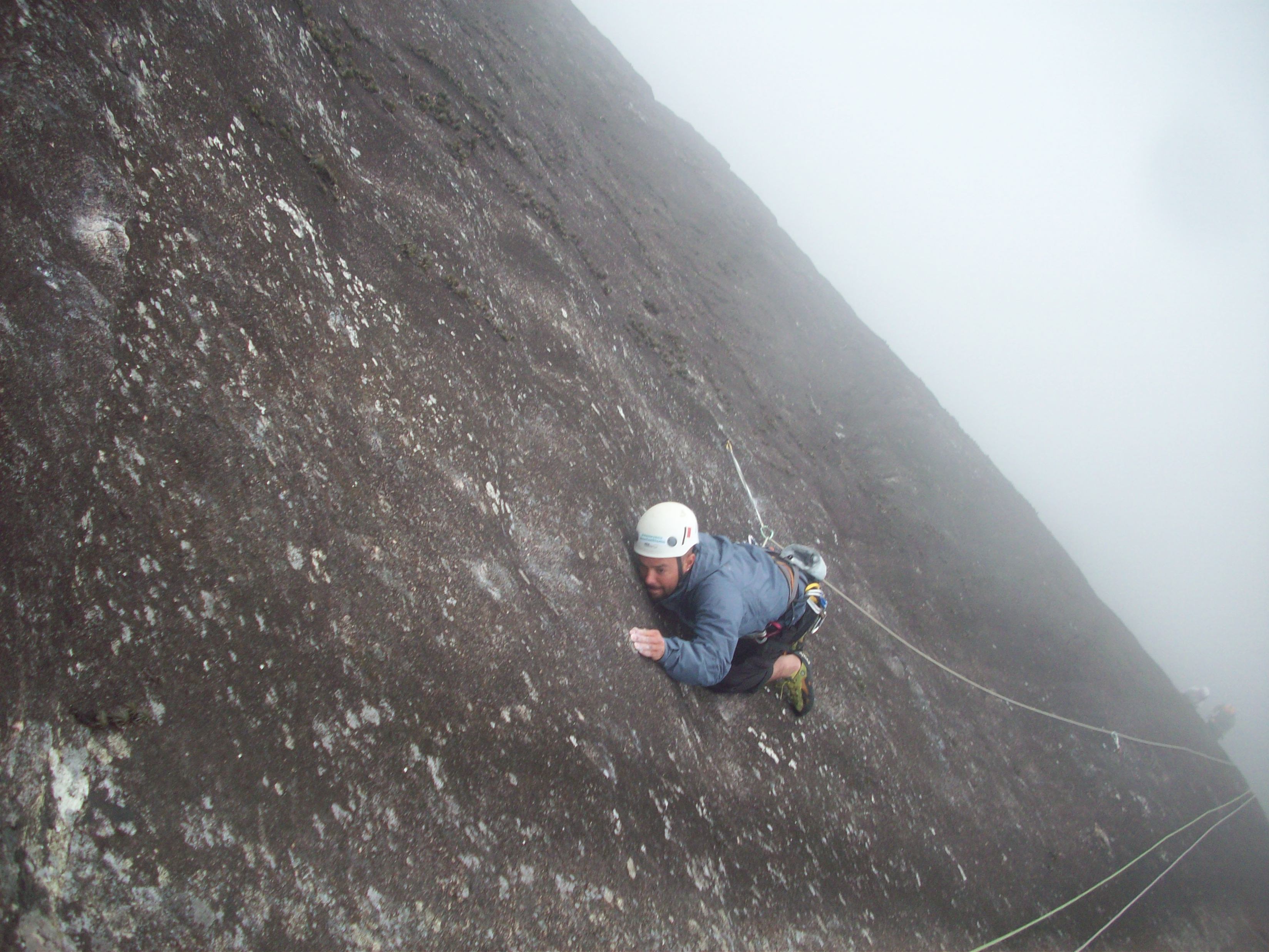 A última cordada eu e a Michelle já fizemos a noite, me bati um pouco para sair no cume, mas foi tudo tranquilo apesar do nevoeiro que baixou acompanhado do frio e muito vento.