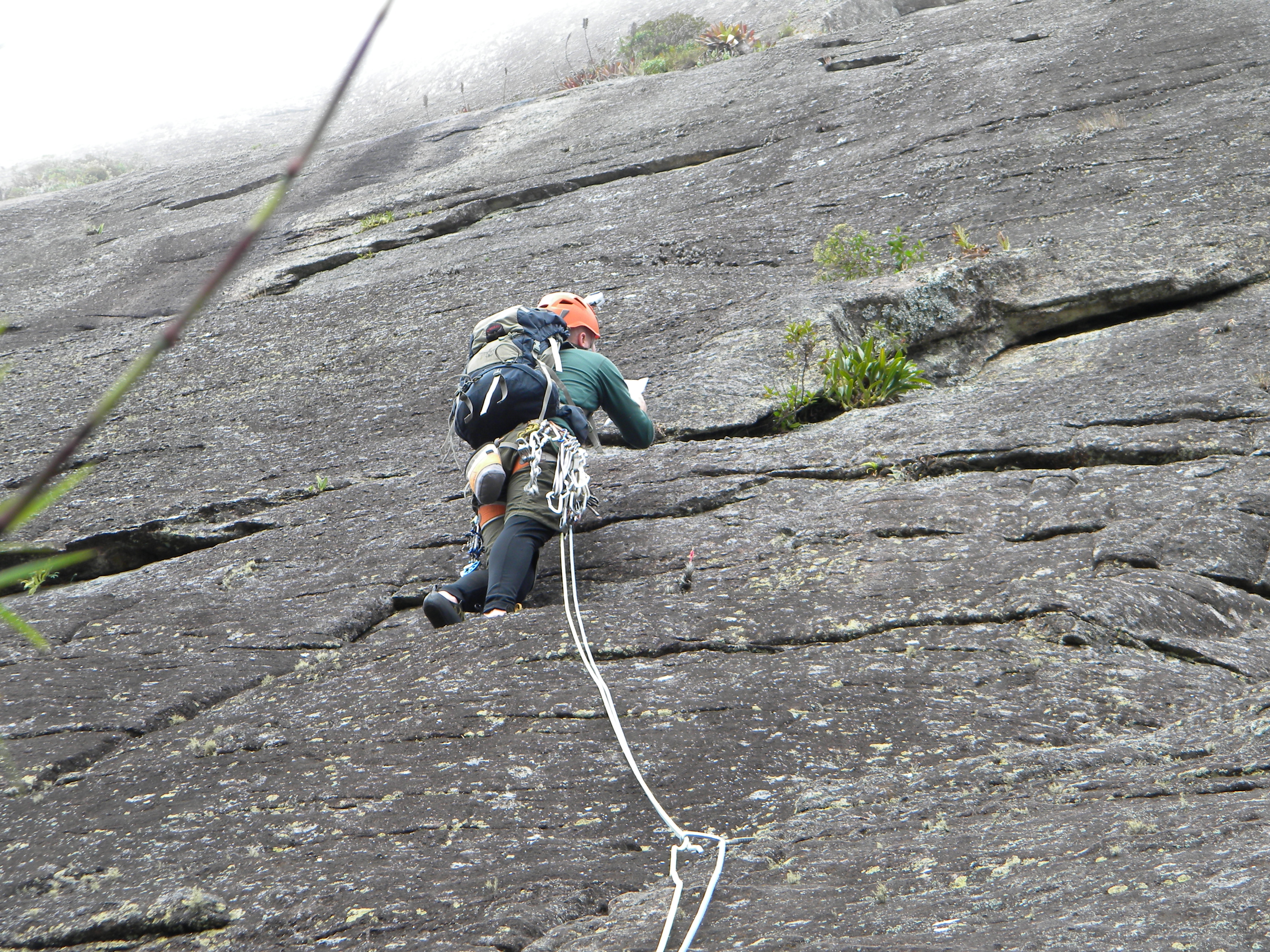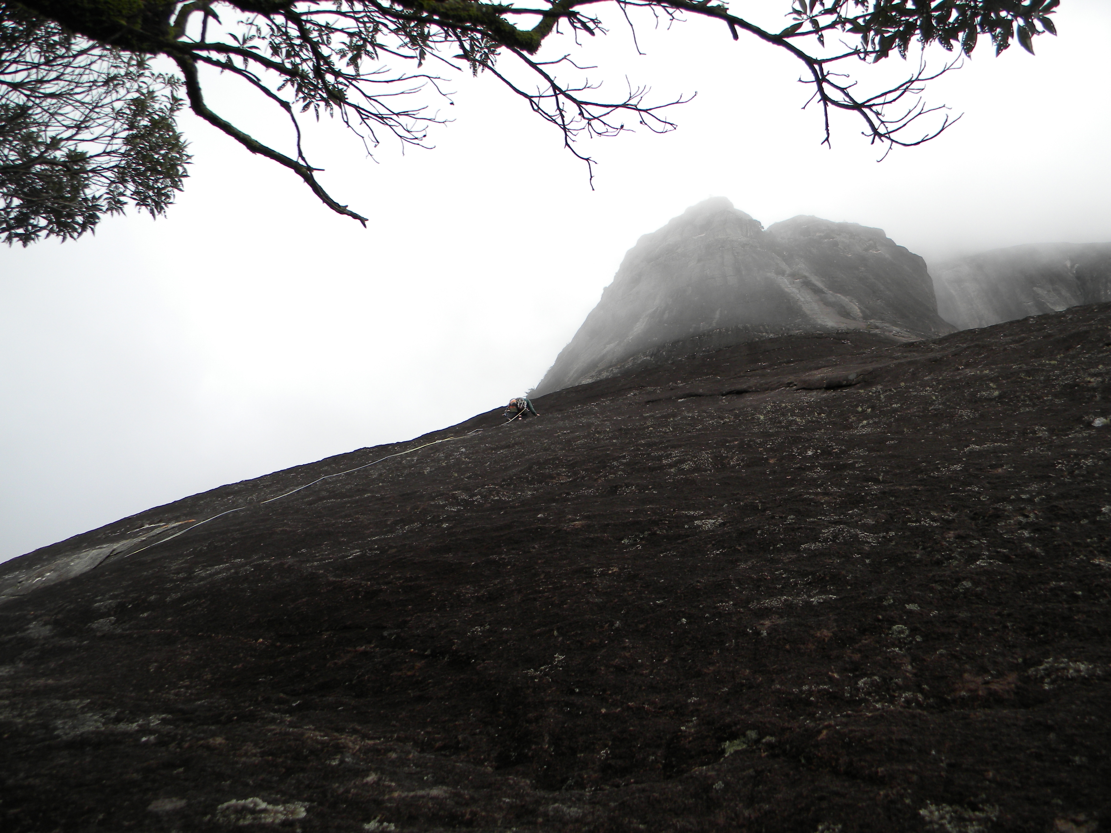Durante a primeira noite choveu muito, então ficamos meio sem saber para onde escalar com a parede possivelmente molhada. O pessoal que estava no refugio orientou em escalar no Pontão do Sol, um dos primeiros lugares que seca depois da chuva.