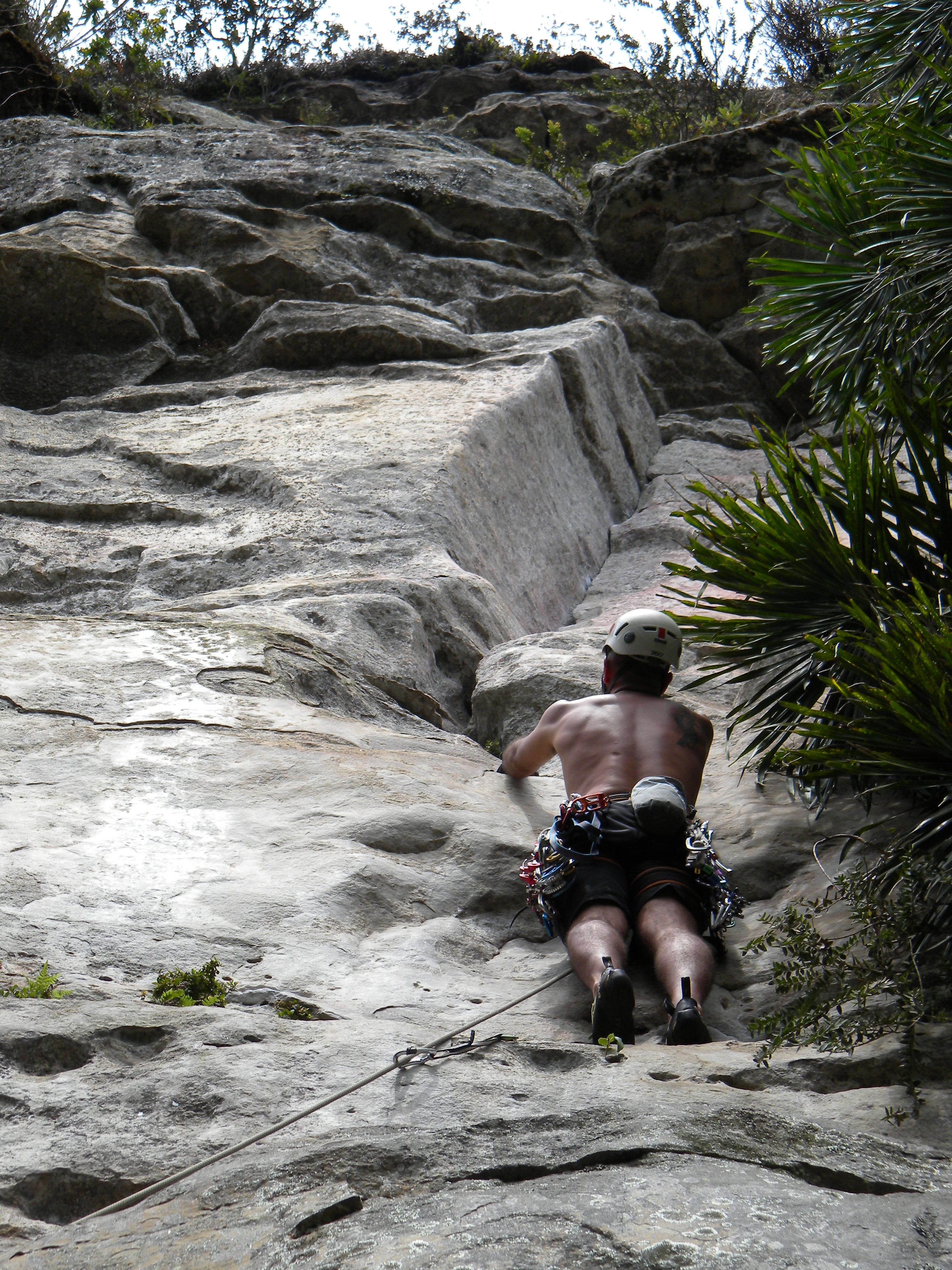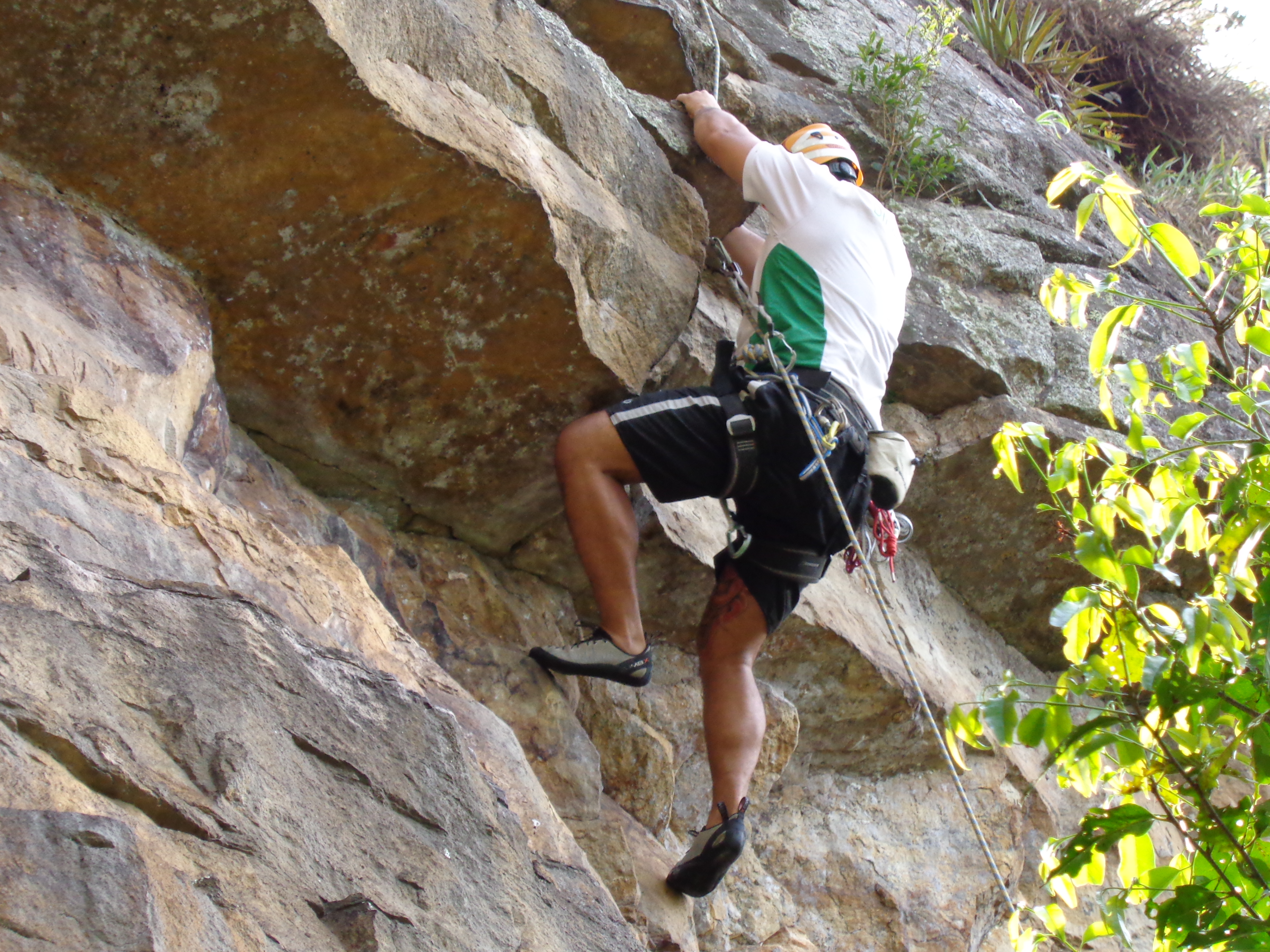 Pensei que nesse domingo eu iria me ferrar para escalar por causa do calor, pois ontem parecia que eu estava dentro de um forno a lenha de tão quente que estava, mas para minha sorte o dia estava perfeito para escalar, ensolarado e uma temperatura agradável em São Luiz.