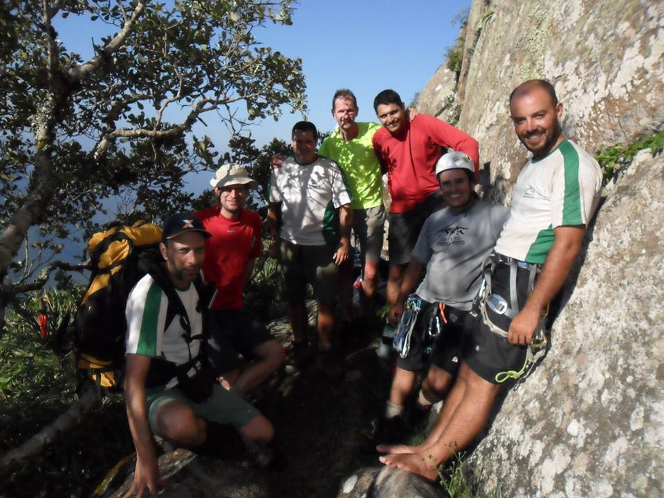 Achei a via um tesão, quatro cordadas bem diferentes, chaminé, escalada em livre, trepa mato, transversal e até um lance que precisa desescalar.