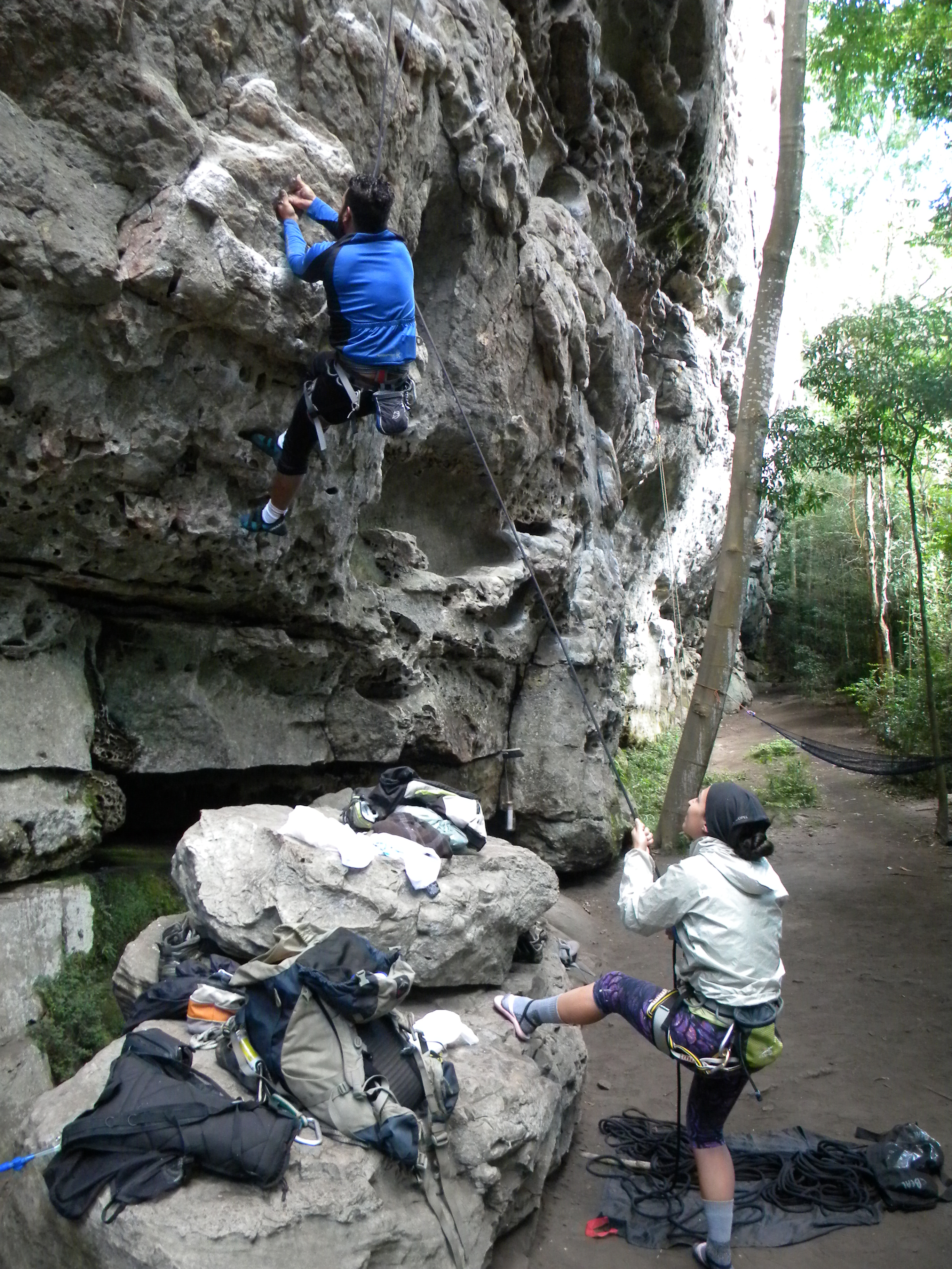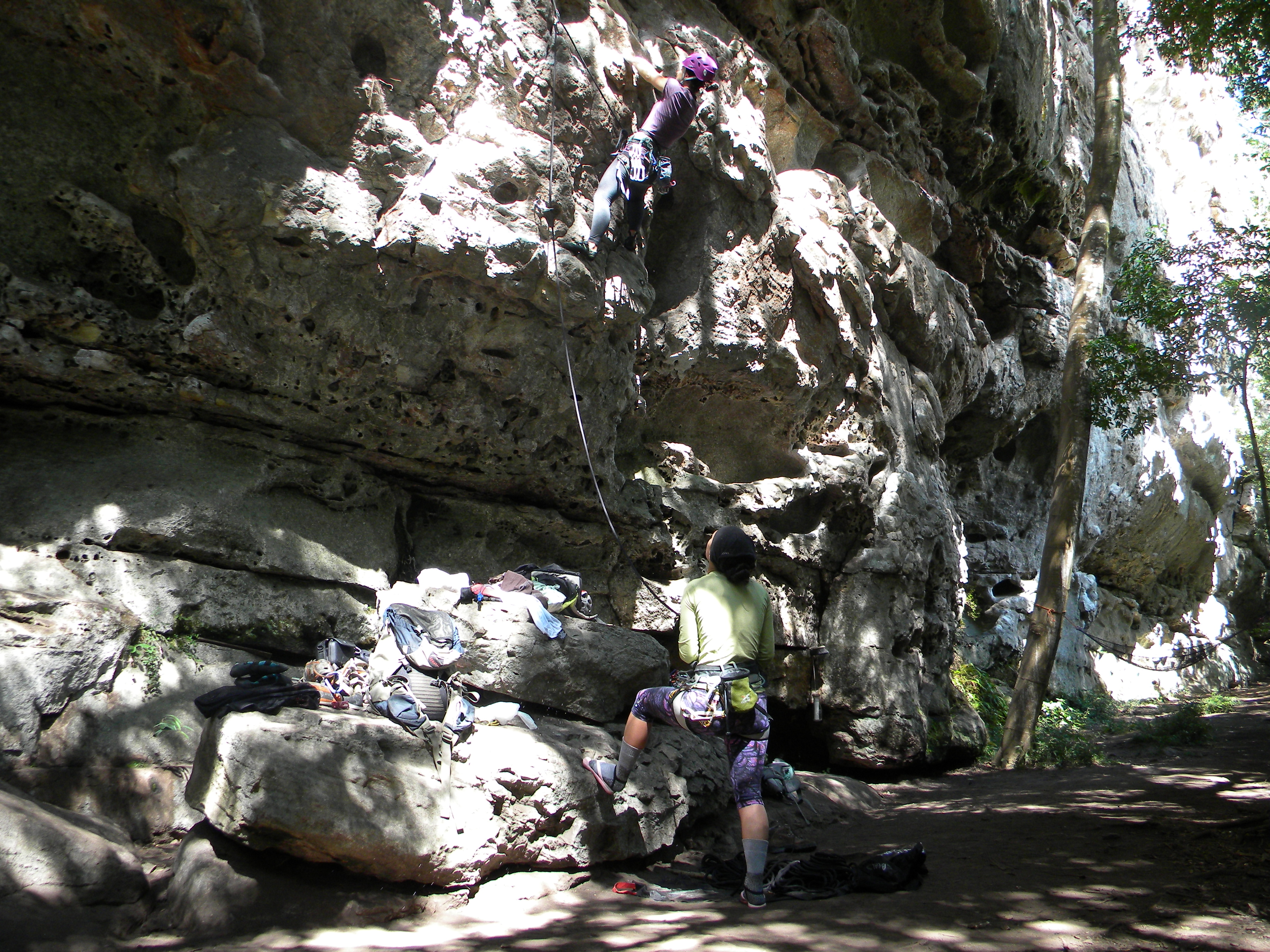 Ficamos praticamente sozinhos no setor da frente, revessamos as guiadas, demos pitacos na escalada alheia, malhamos um lance o outro e por ai foi o dia inteiro de escalada.