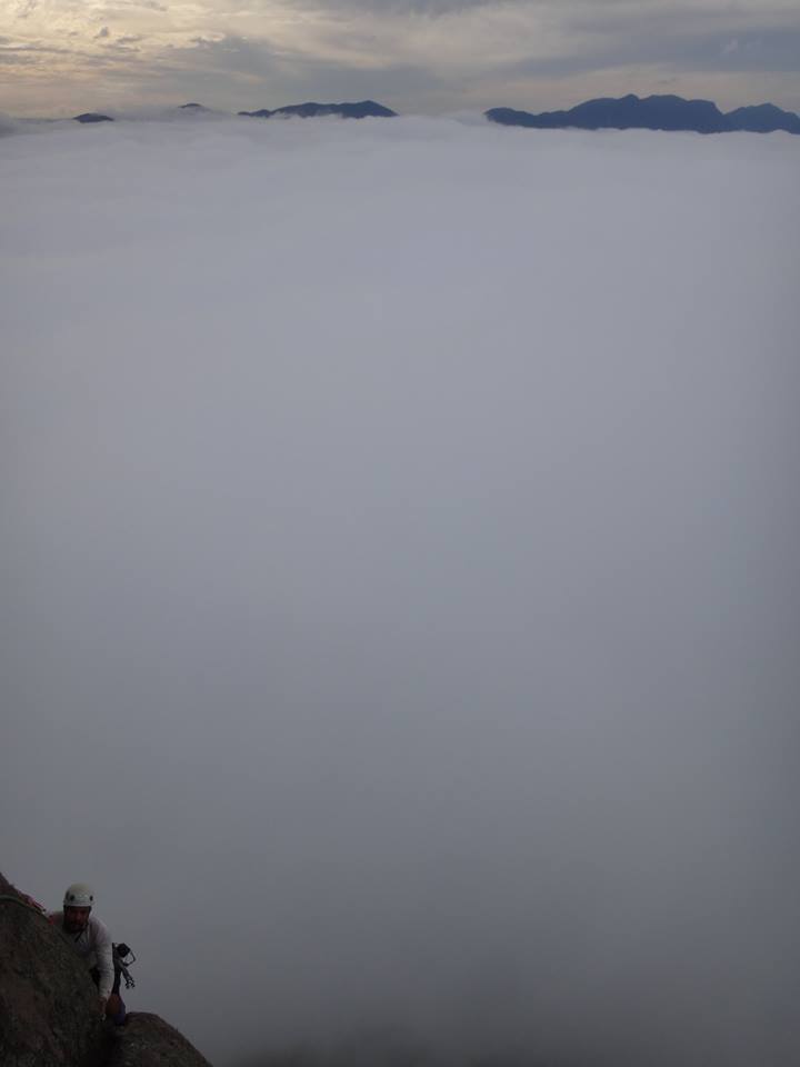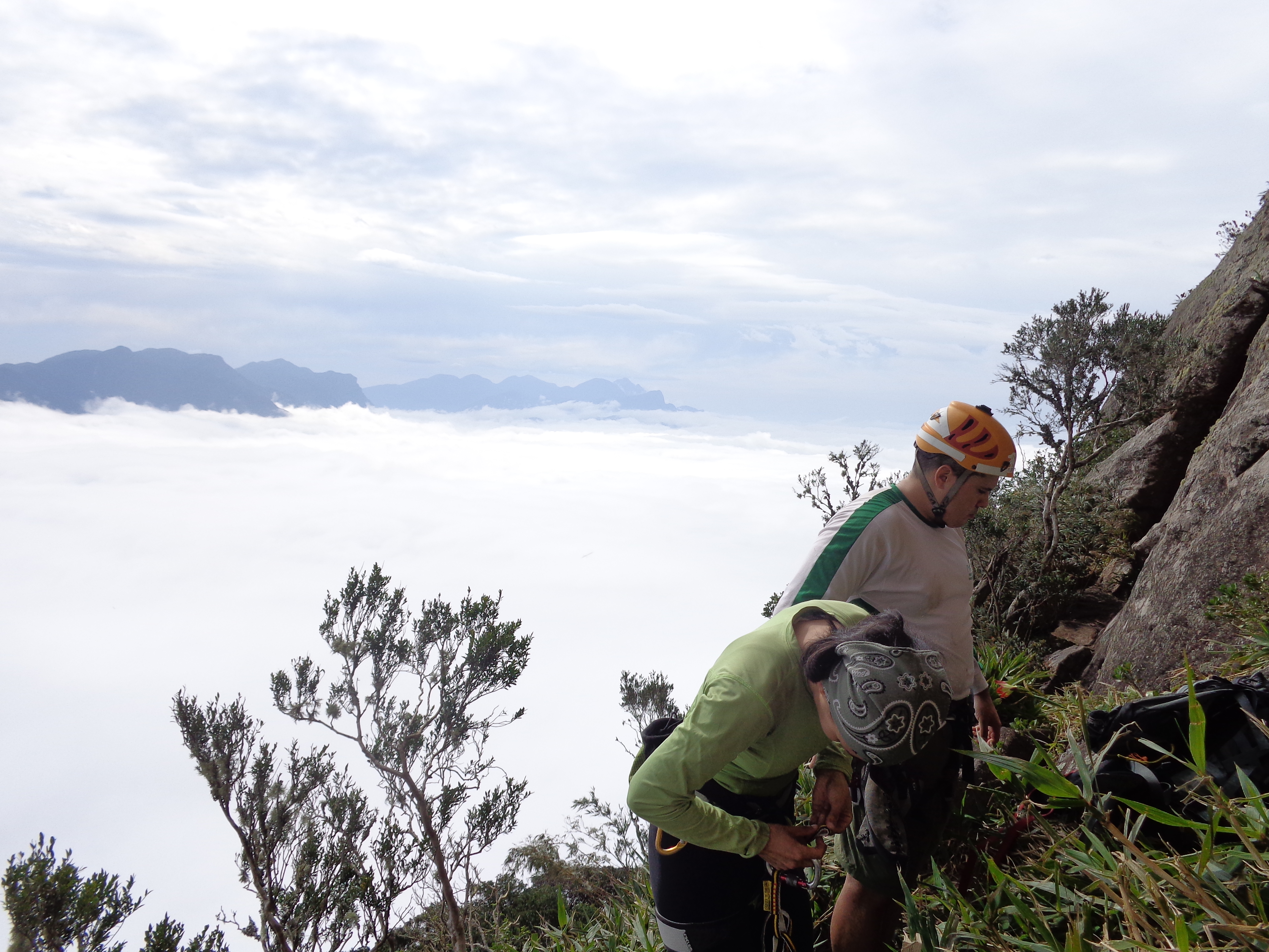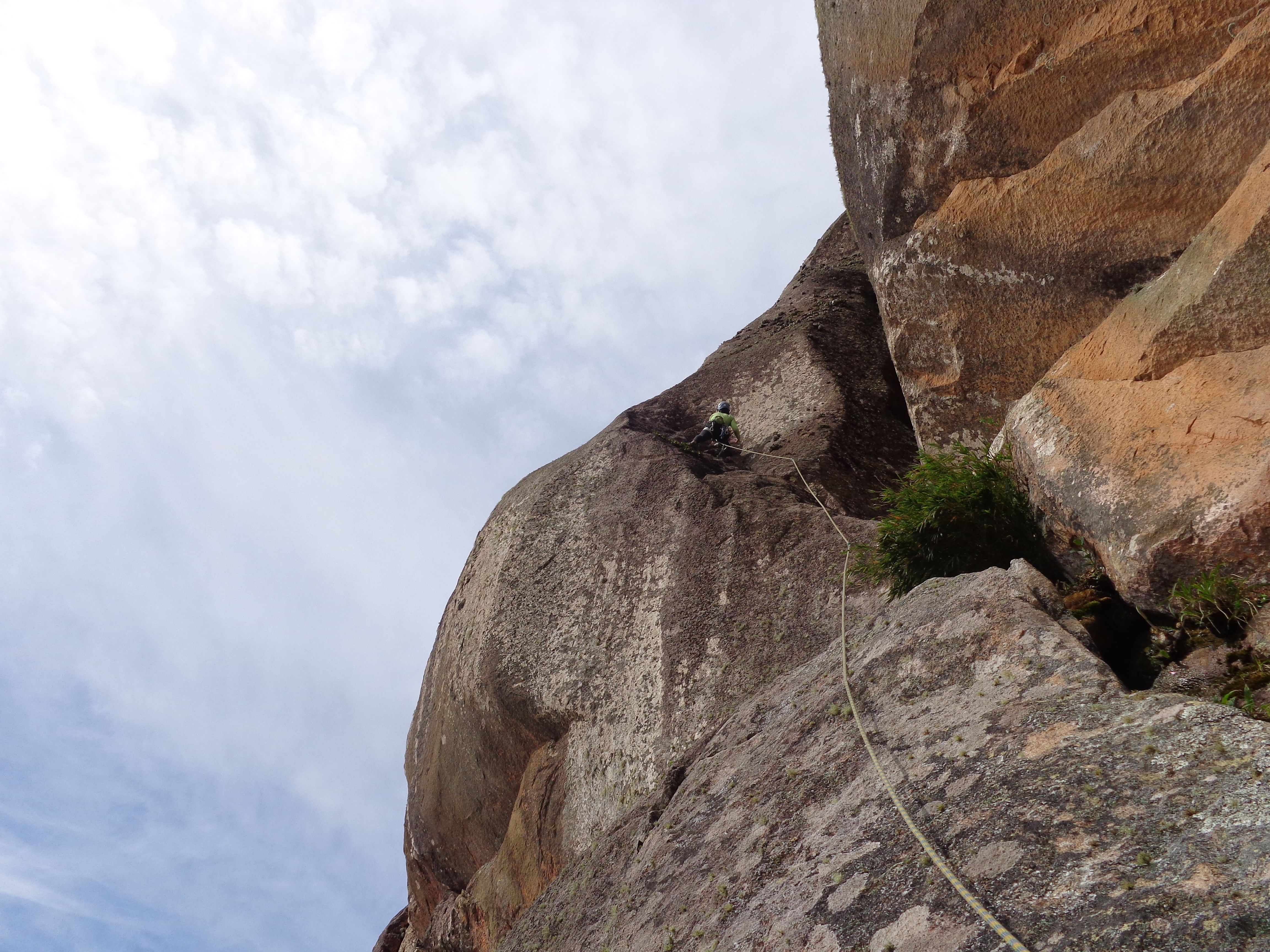 Em três cabeças a escalada queira ou não é um pouco mais demorada, fizemos as duas cordadas da Maria Buana e quando voltamos para a base da via já eram mais de 3:30 da tarde.