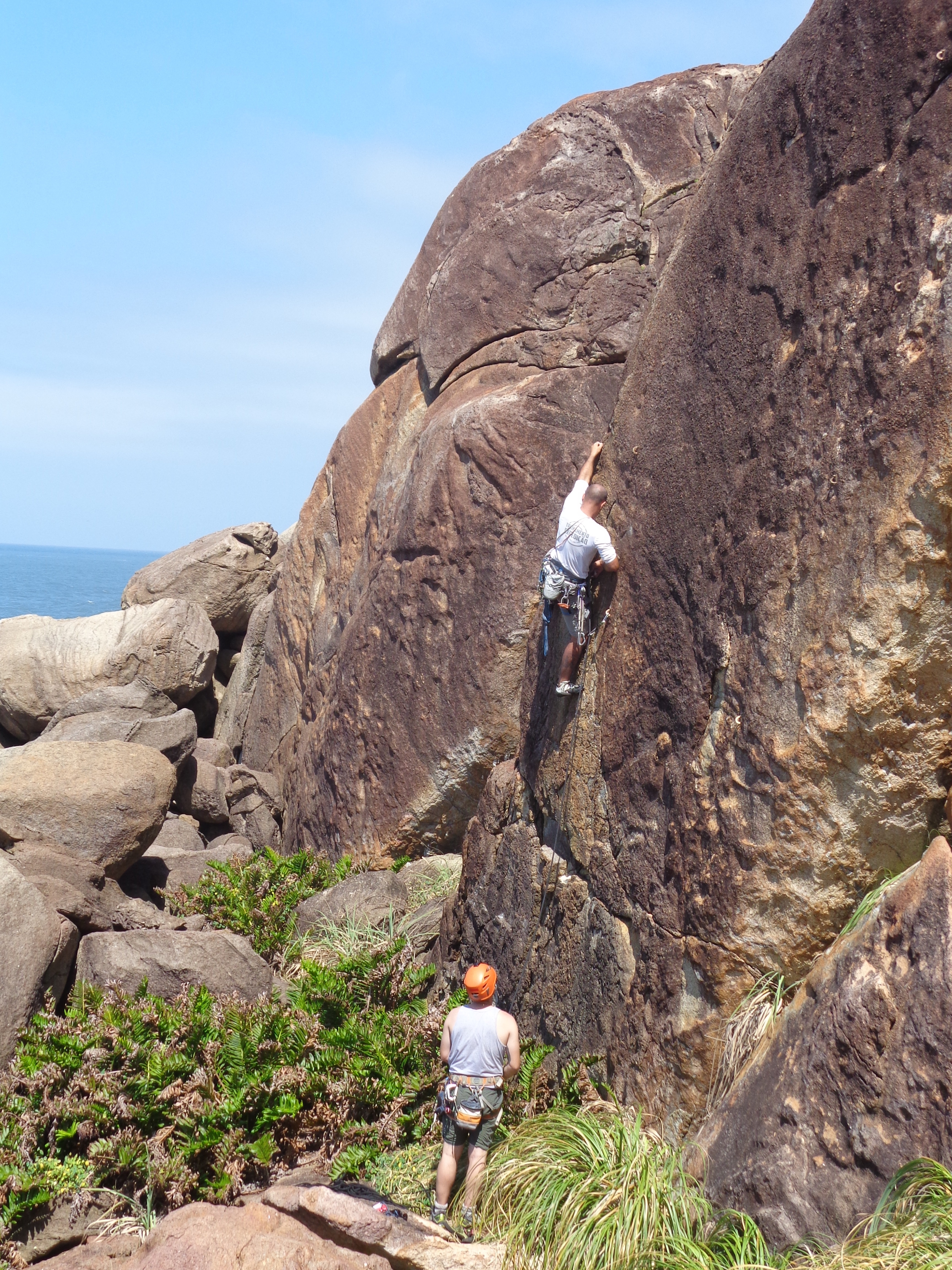 Consegui escalar alguma coisa no segundo dia que estava na cidade, fui com o pessoal para o Morro da Cruz tentar achar alguma escalada seca, até que rolou mais infelizmente a maioria das vias estavam molhadas.
