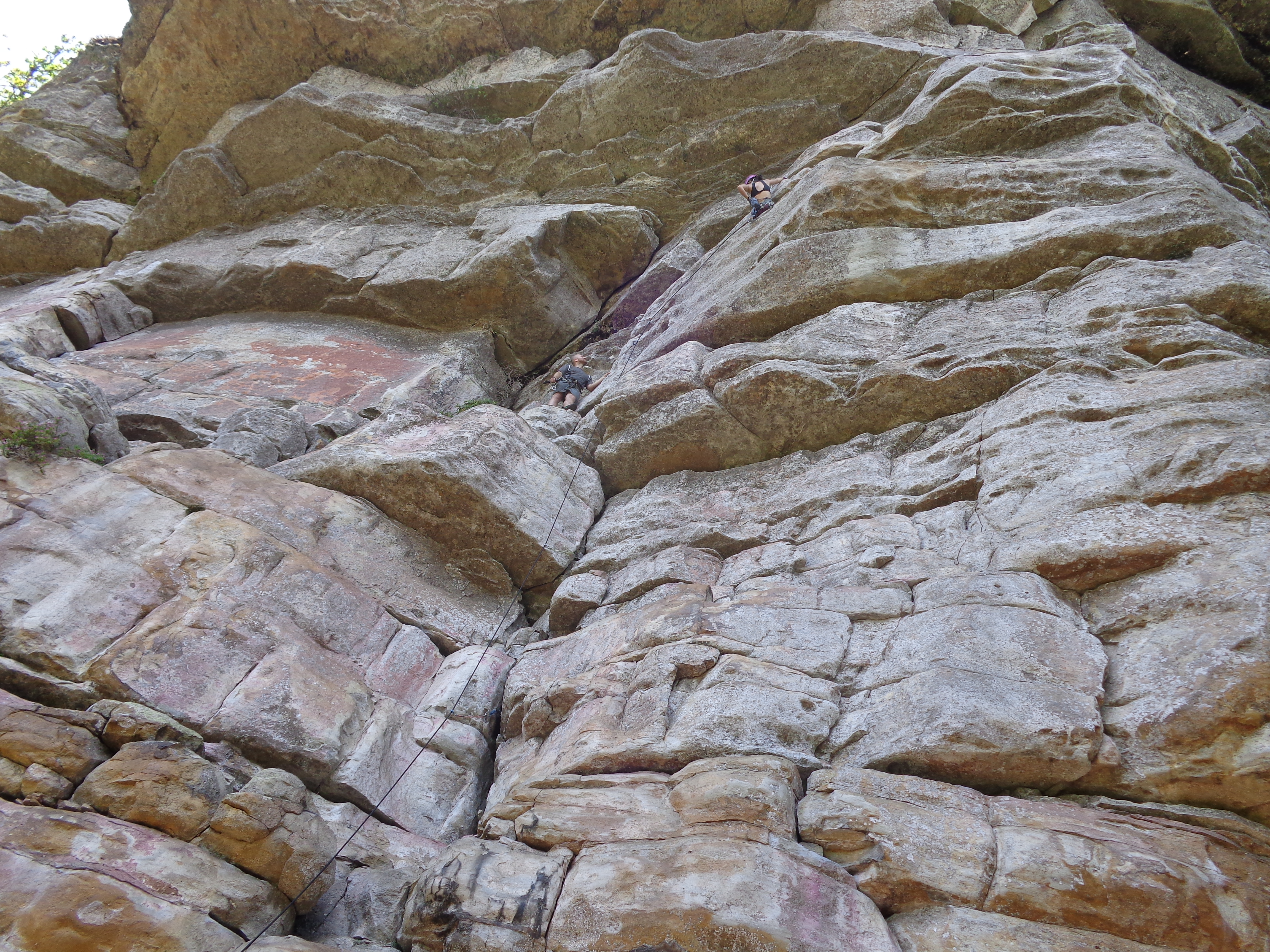 O Otaviano me sugeriu uma escalada que eu ainda não tinha feito e achei um tesão, não sei se tem nome a via mais é a junção da primeira parte da via Ajoelhou e a segunda metade da via Cata Ovo. Acredito que essa via deva ser um 7b muito boa de escalar.
