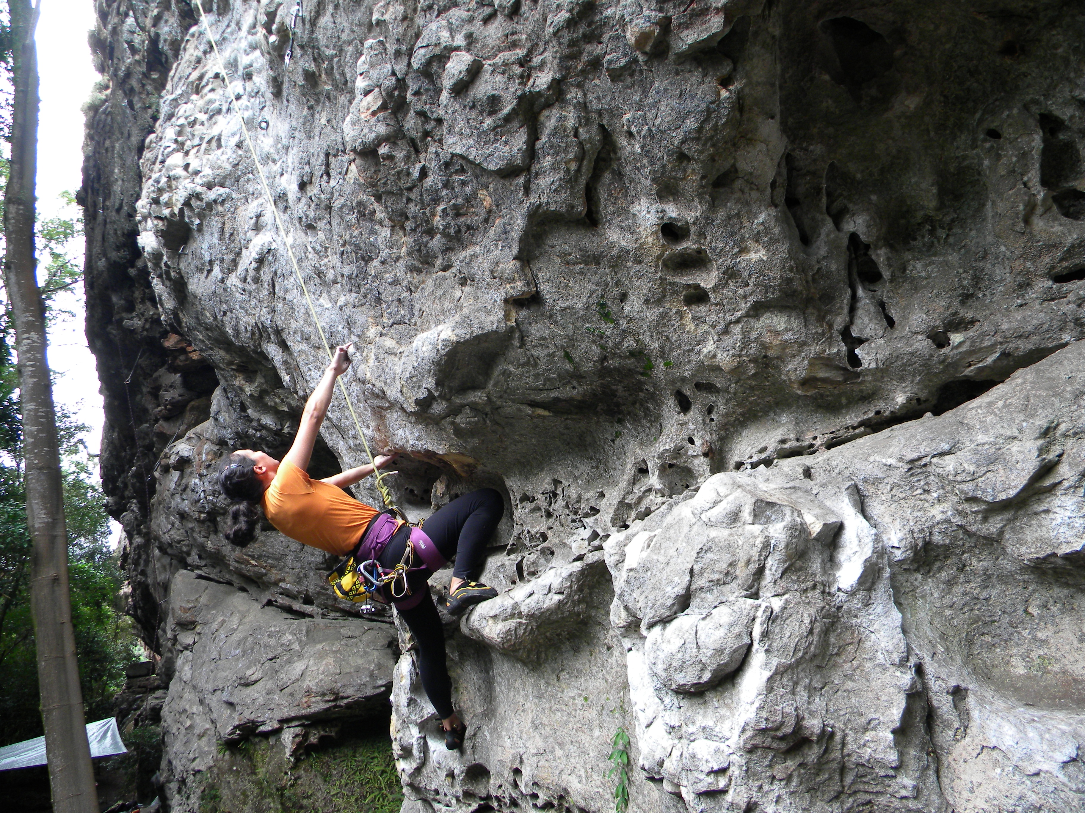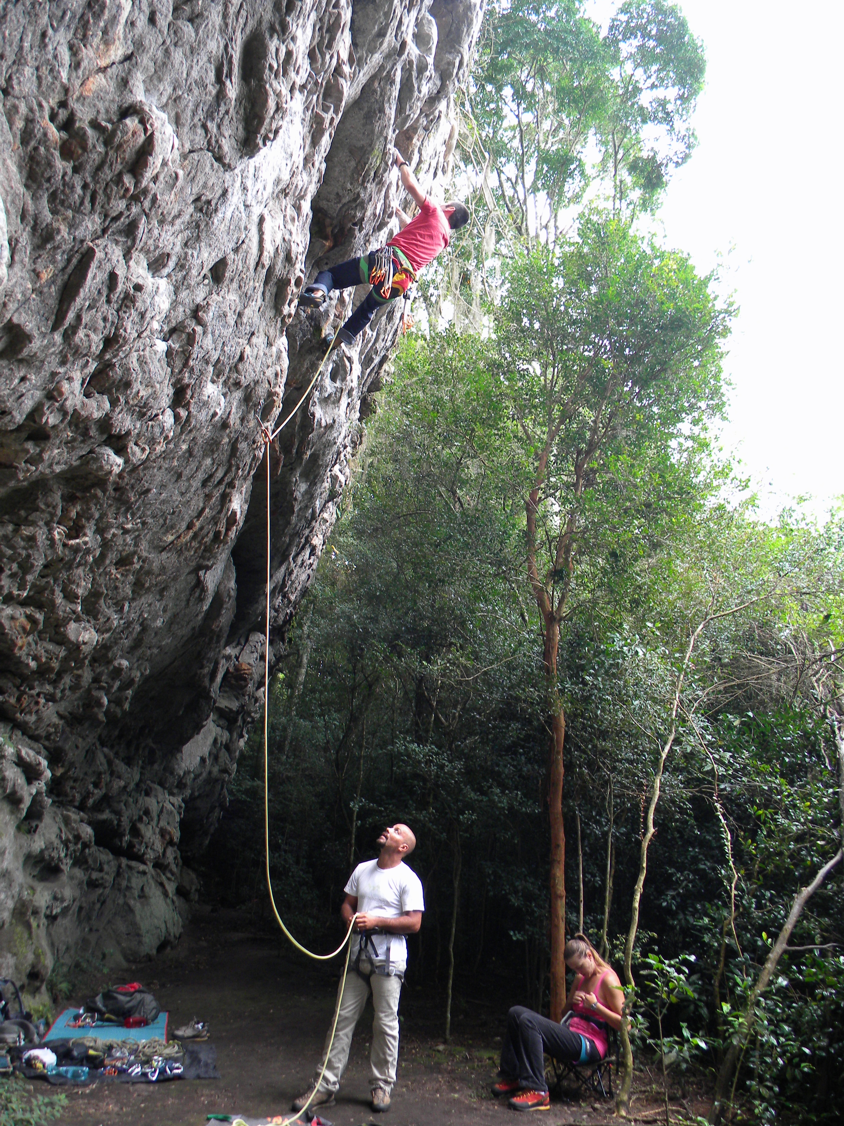 Eu e a Michelle mais o casal de amigos Anderson e Ana seguimos para o Buraco do Padre, talvez um dos únicos lugares secos para escalar.