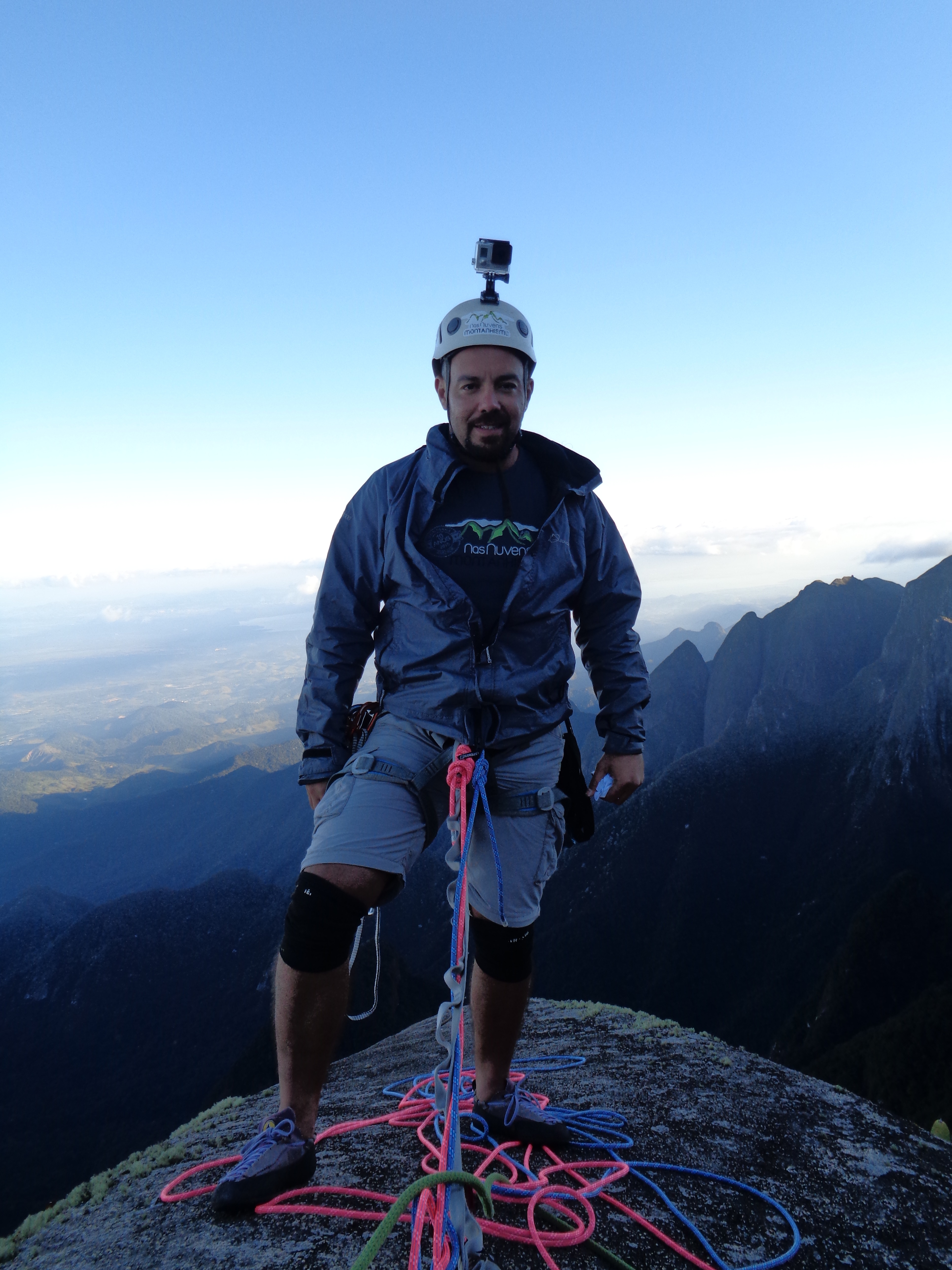 Rapel de 50 metros passando direto por cima da Unha, desceu primeiro o Natan e o segui na cola até o Platô da Unha. Só então se pensou na possibilidade da corda enroscar e, aos berros, o Natan solicitou que o Juliano dividisse em duas a sua descida. Oh boca santa! Conforme previsto a corda enroscou e lá retornou o Juliano a escalar com segurança de baixo para soltar a corda. 114 quilos acima três metros da única costura numa ponta da corda dinâmica distante 25 metros da extremidade oposta com apenas 80 quilos de contrapeso. Melhor nem pensar em cair.