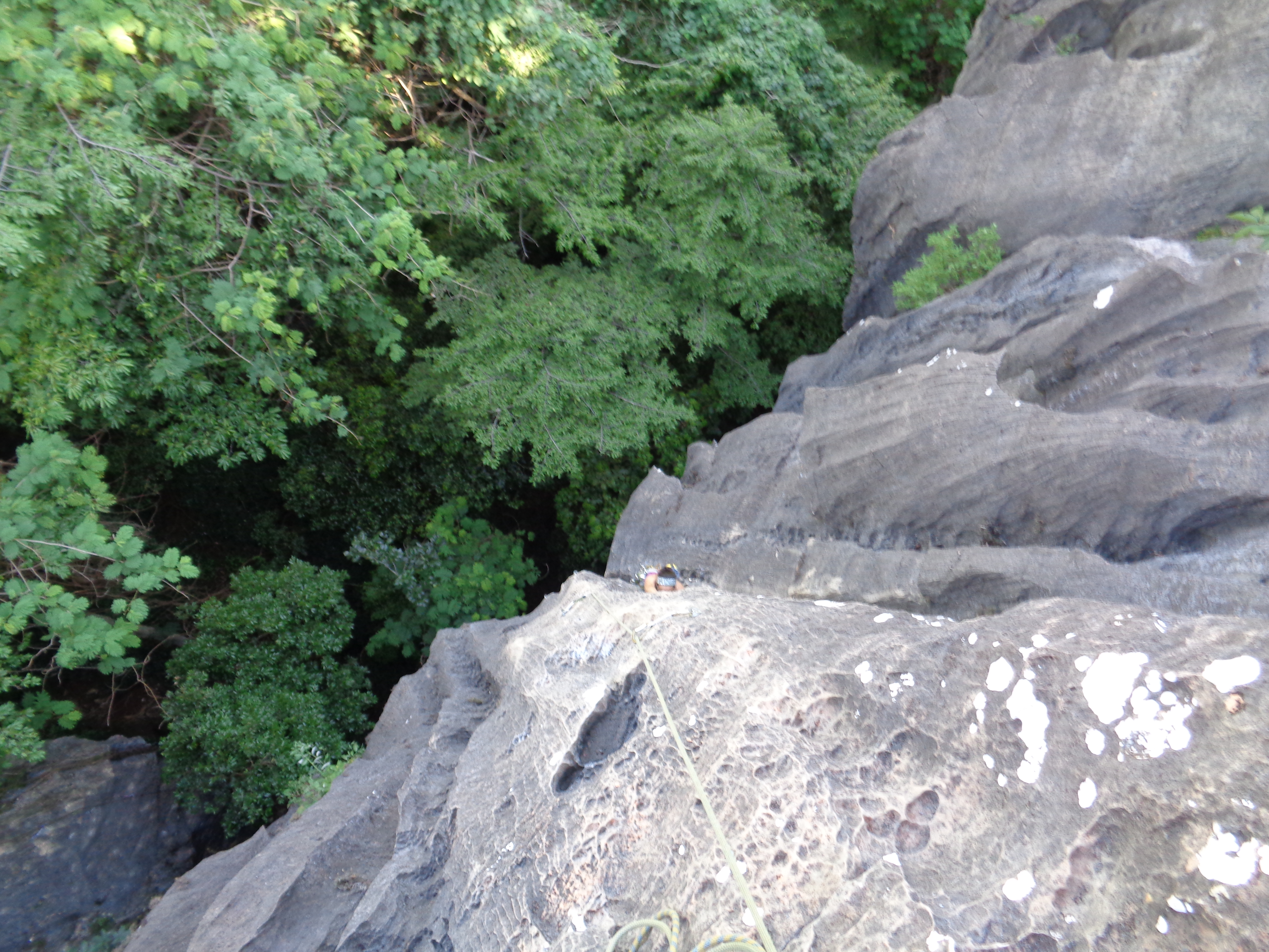 Segundo dia entramos apenas em duas vias, a Dilúvio na Saens Pena, 7a duro e bem cabreiro de fazer. A via Gigantes Pela Natureza foi indicação da Sueli, linha muito bonita com vários movimentos bacanas.