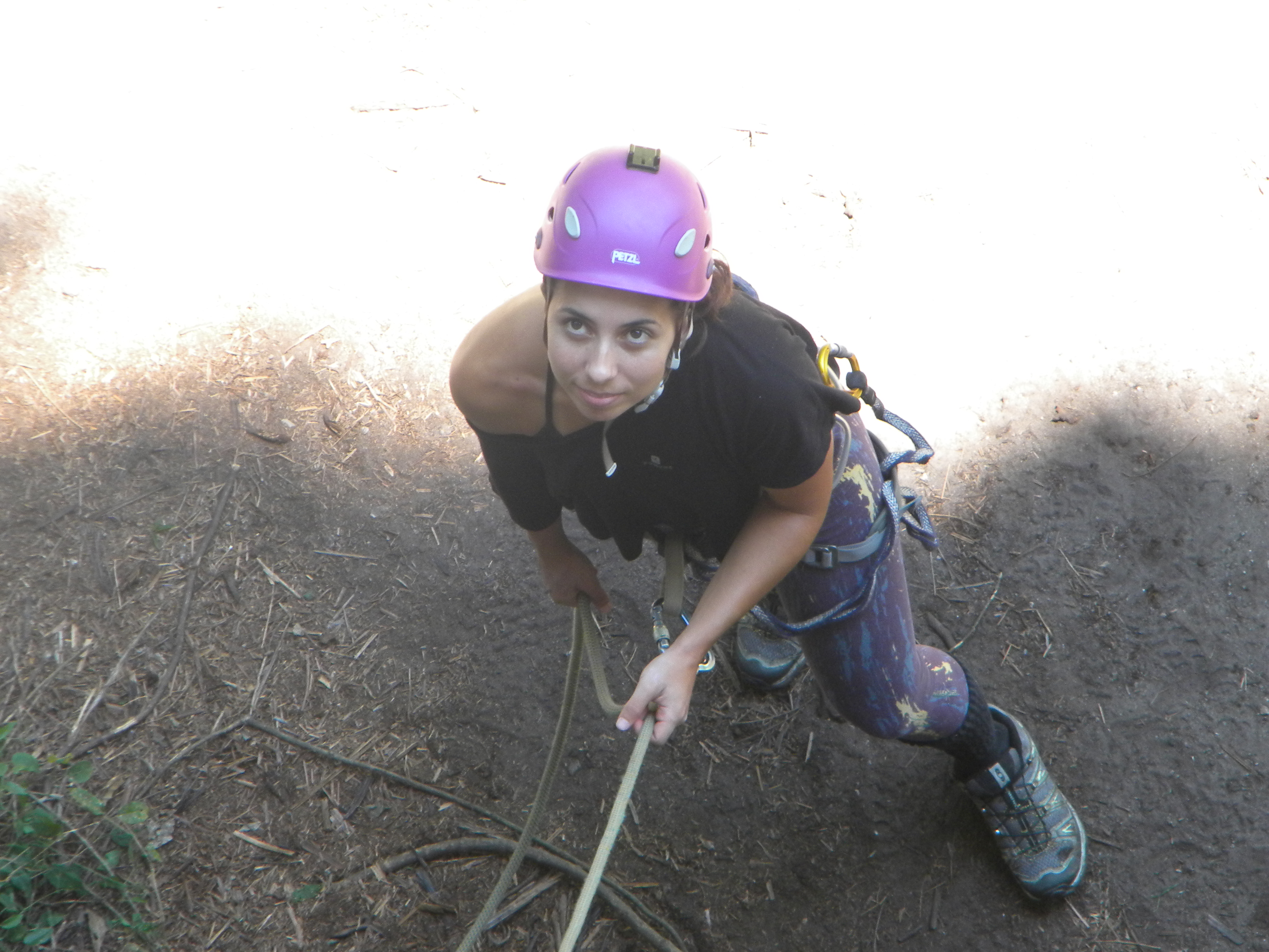 Michelle em um dos lances bem diferentes dessa via, uma transversal sentada