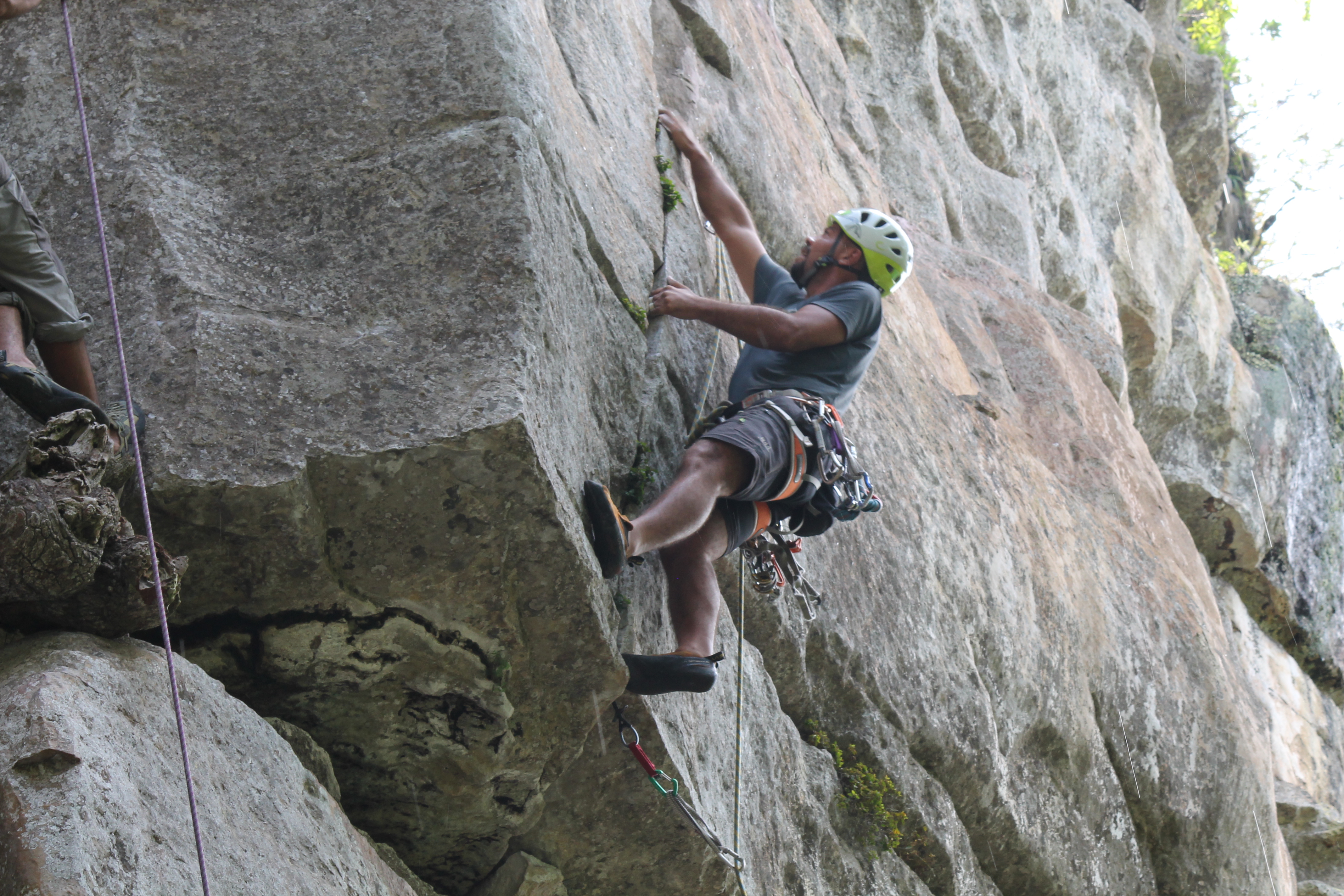 Na via Cicatriz, dando uma boa descansada antes de ir para uma sequencia forte até chegar no crux