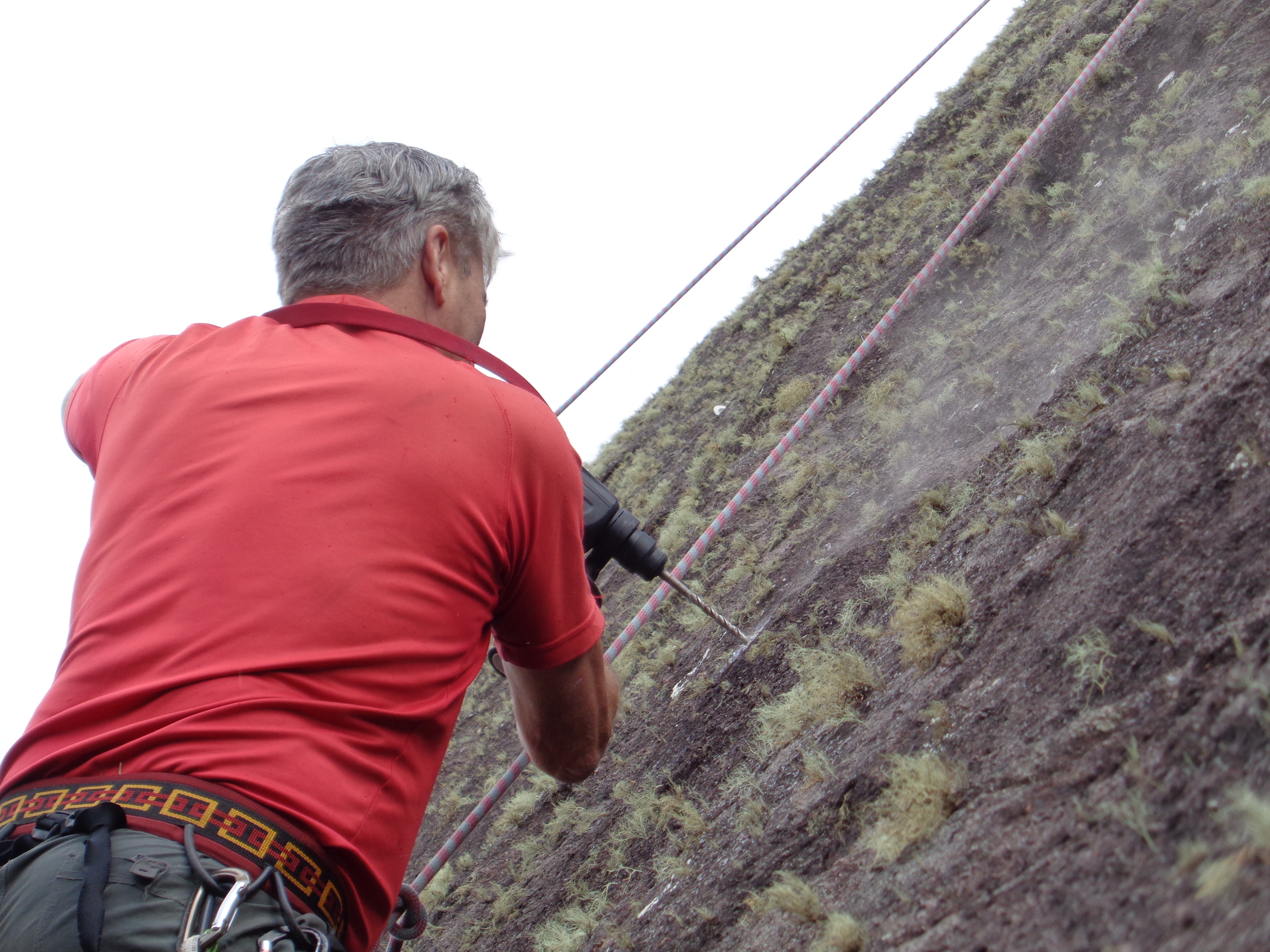 A próxima via a ser conquistada queríamos que o homenageado batesse a primeira chapeleta, e assim o Julio subiu todo entusiasmado com a furadeira para a conquista da via “Veio Loko”.