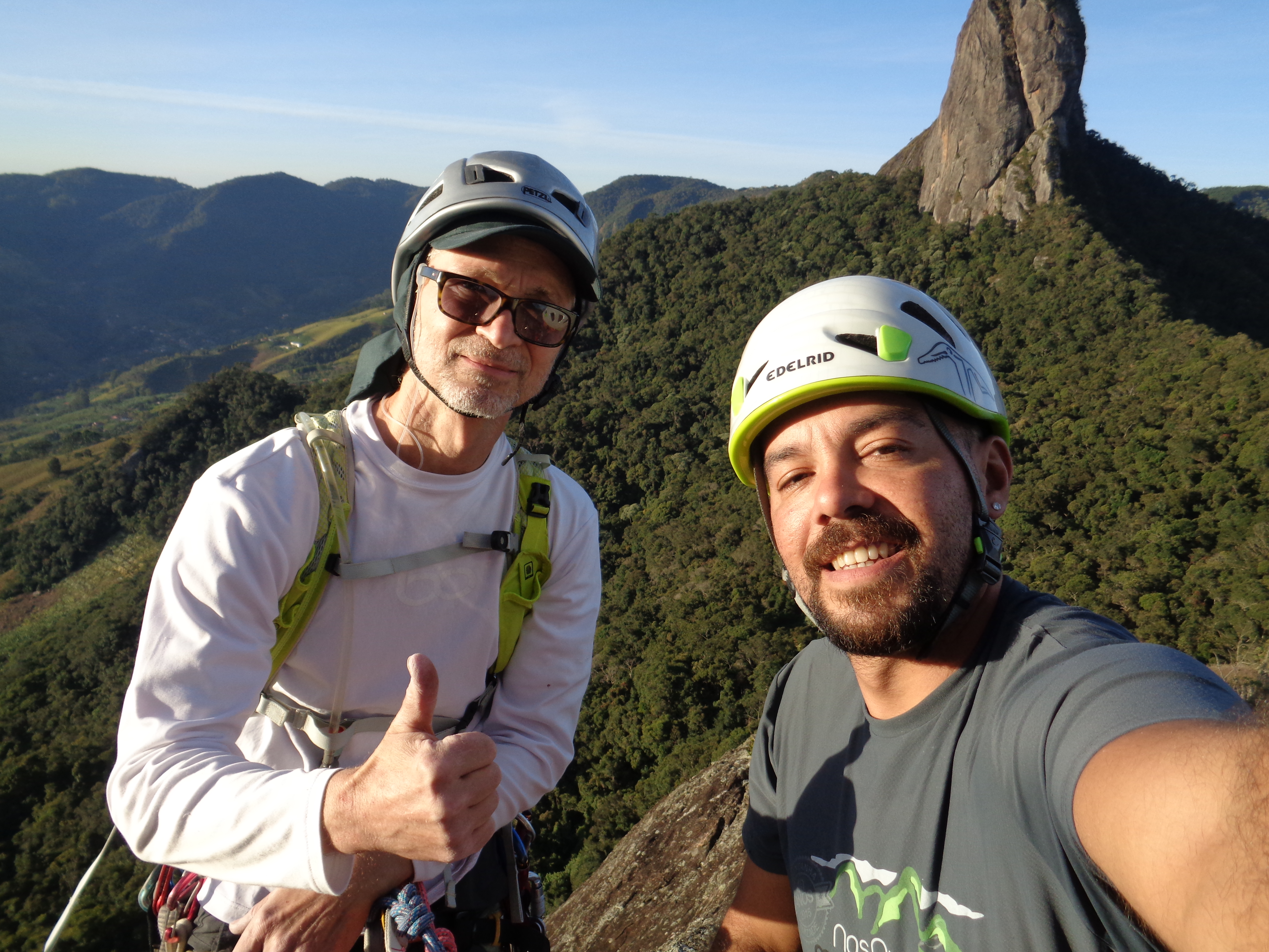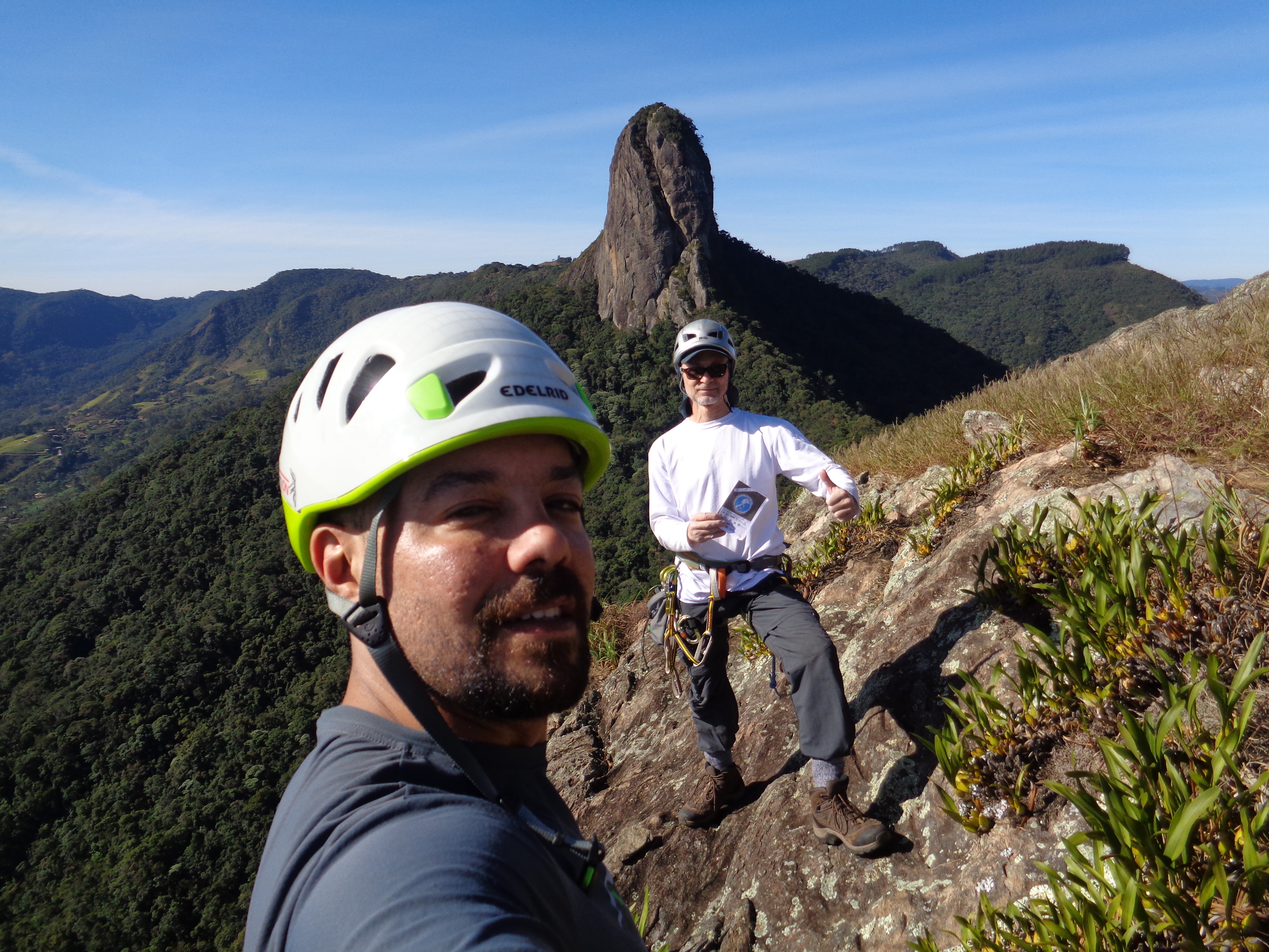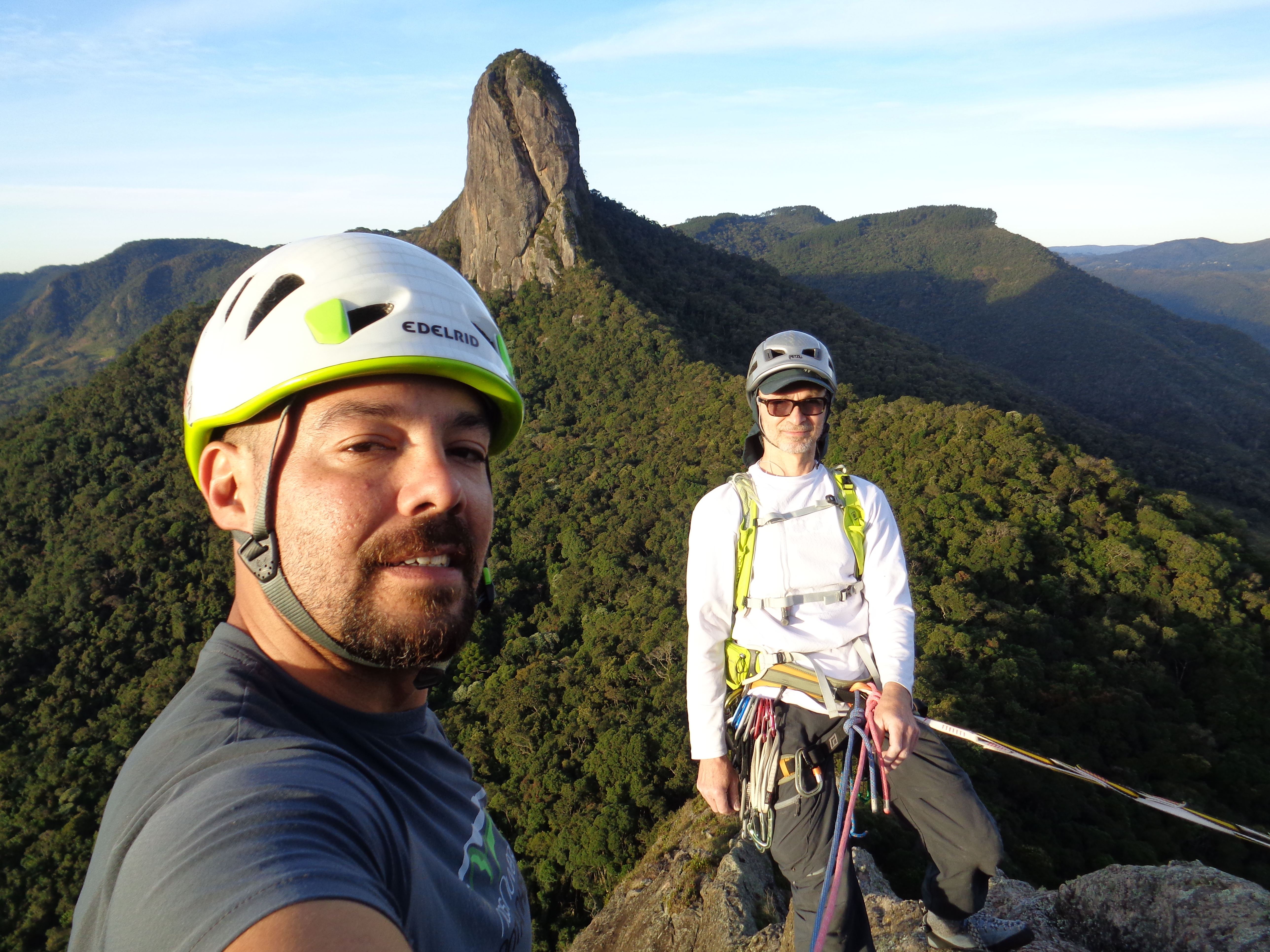 Chegando no cume encontrei o Betinho, parceiro que conheci através do Japonês, os dois são sócios em um ginásio de escalada bem bacana em São José dos Campos. Um bate papo rápido com a galera do Betinho e começamos a descida para retornar até a base da parede para fazer mais uma via.