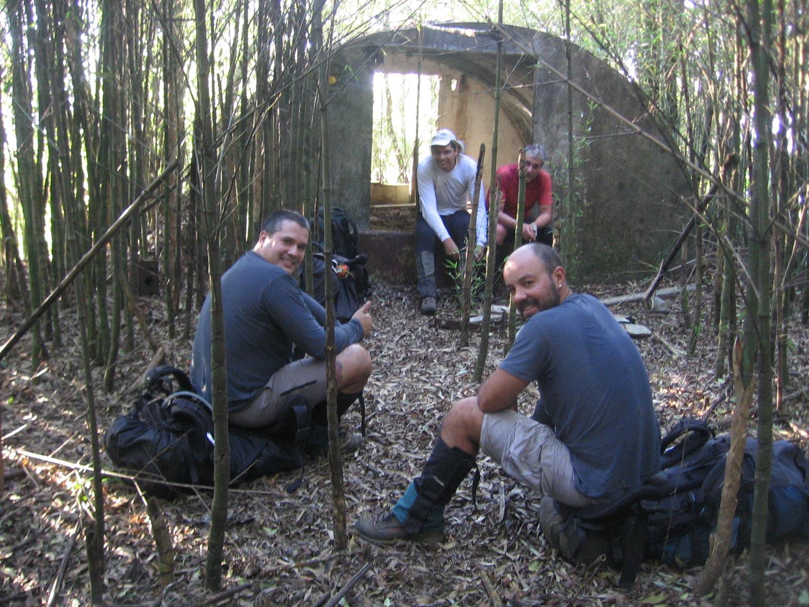 A estrada nivela e termina numa série de platôs de concreto formando consecutivos pátios interligados por degraus e protegido com guarda-corpos. Tudo dominado por um bosque fantasmagórico de finas hastes de bambu regularmente espaçadas e piso forrado por espessa camada de folhas secas implorando por um incêndio. No primeiro pátio existe um amplo e limpo abrigo com teto metálico em arco, perfeitamente habitável além de enferrujadas carcaças no entorno. No segundo se ergue uma torre metálica com quatro apoios e excelente plataforma intermediária já acima das árvores que permite visão panorâmica em três quadrantes. Só a vista para o Dedo de Deus é obstruída pela enorme massa rochosa do cume duplo do Boa Vista. Outras plataformas se sucedem com ruínas de casas e galpões nos mais variados estágios de degradação. Lugar assustador e perfeito para encontrar a Bruxa de Blair rondando a noite no meio do bambuzal.