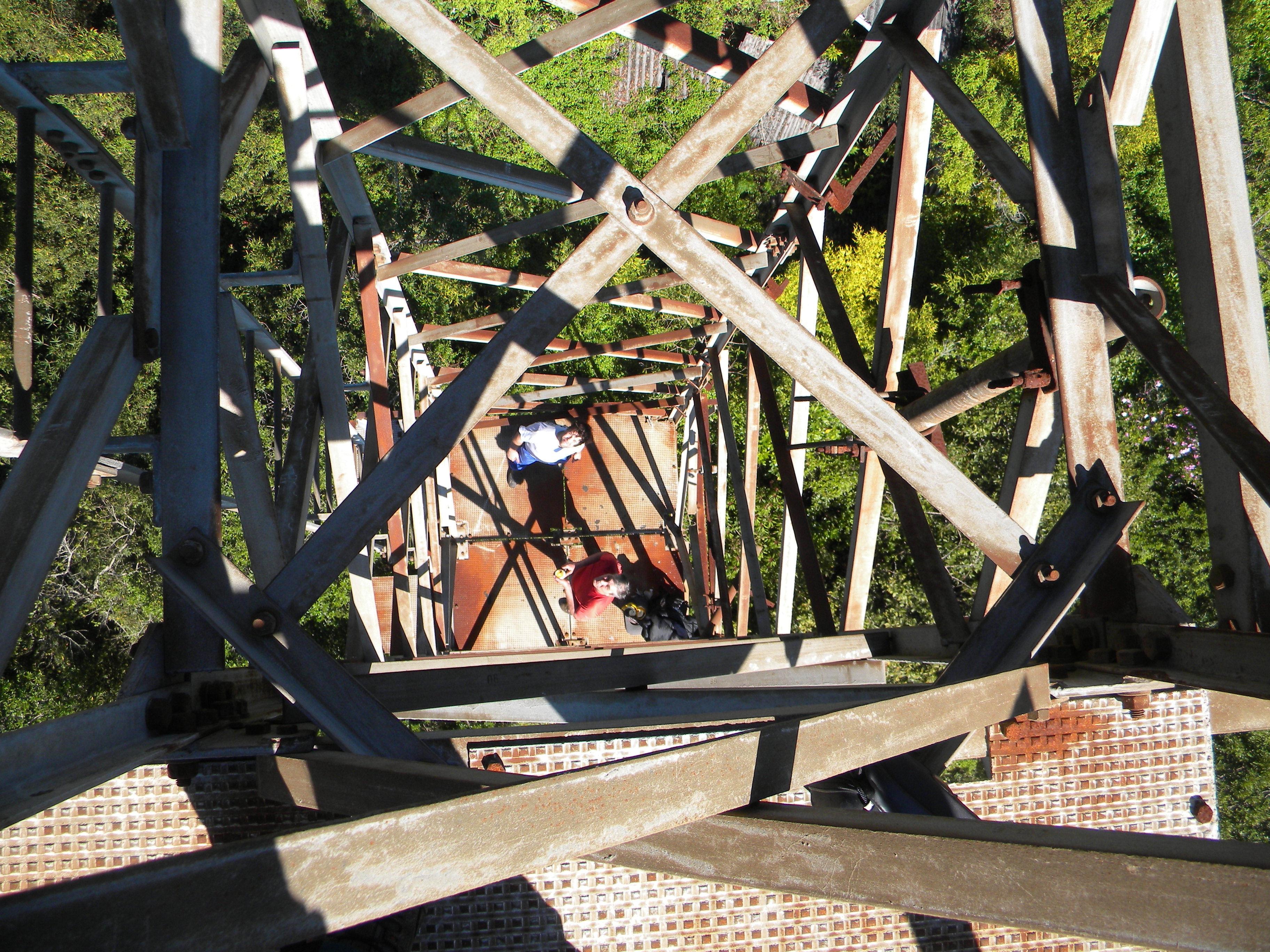 Novamente a secura do ar e o calor sufocante nos maltrata e nas poucas paradas perdemos até a pose de machões, uns catando os carrapatos dos outros. Oito ou dez por perna. Filas de micuins nas camisetas esperando sua vez de subir para as dobras da barriga. As cinco batemos o ponto debaixo da antena e o Jean, sem lanterna, picou a mula estrada abaixo para descer rapidinho aproveitando a luz do dia. As seis ficou tudo preto e acabou a pressa. Sentados num tronco passamos o chapéu para recolher cada gota d’água que ainda existisse no fundo das pets para reunir pouco mais de meio litro e fazer um suquinho de pacote e dar o último gole.
