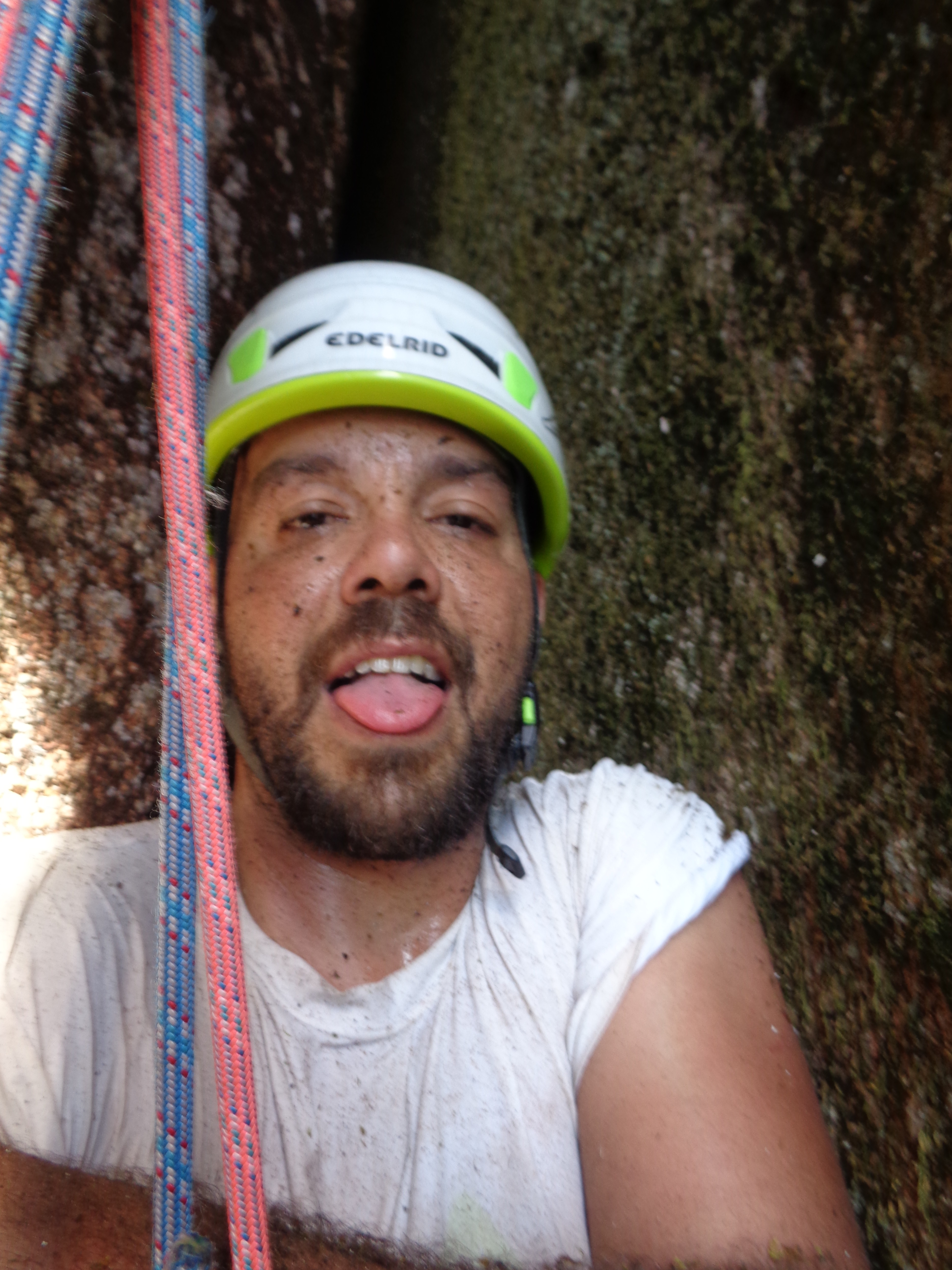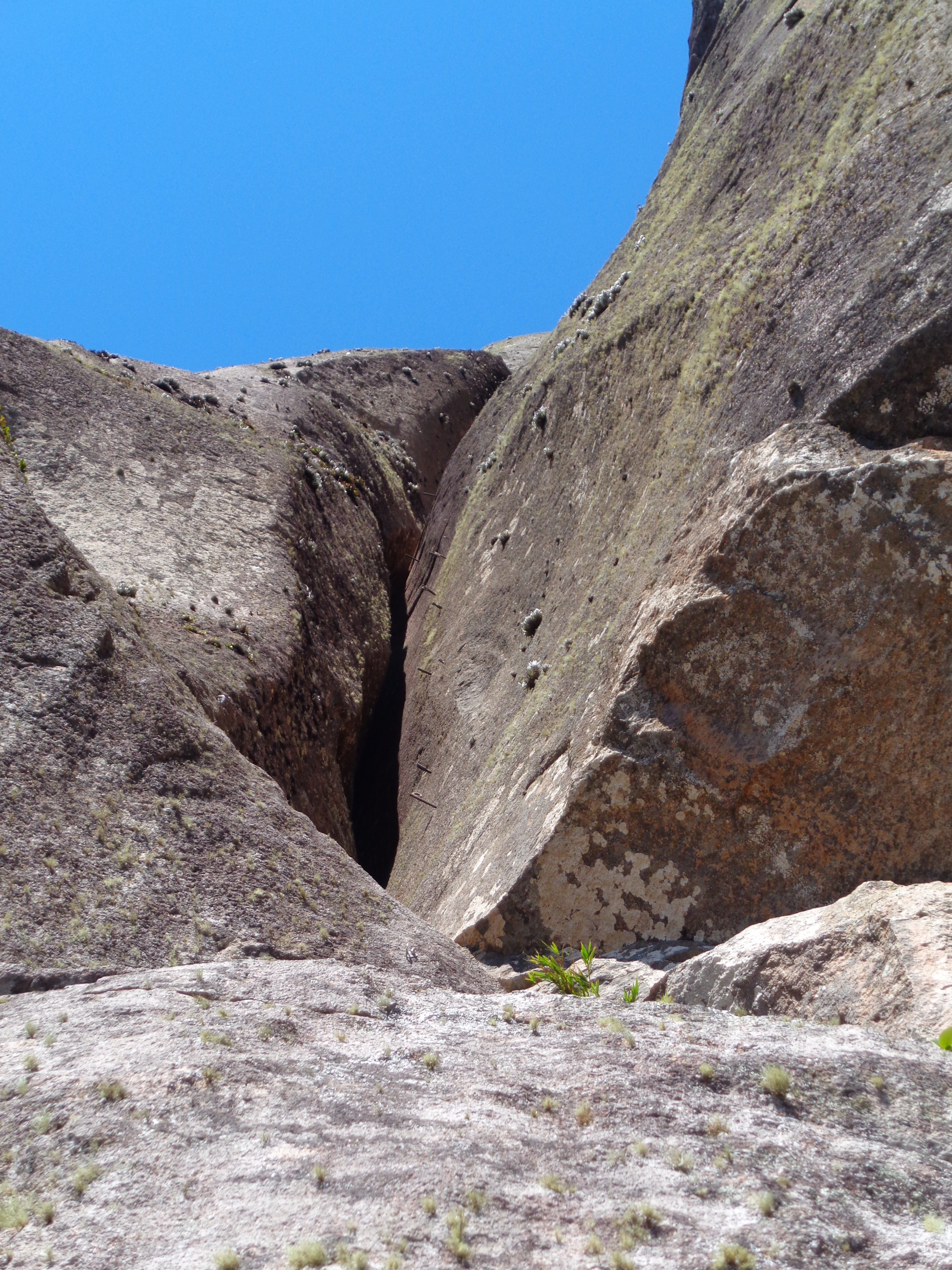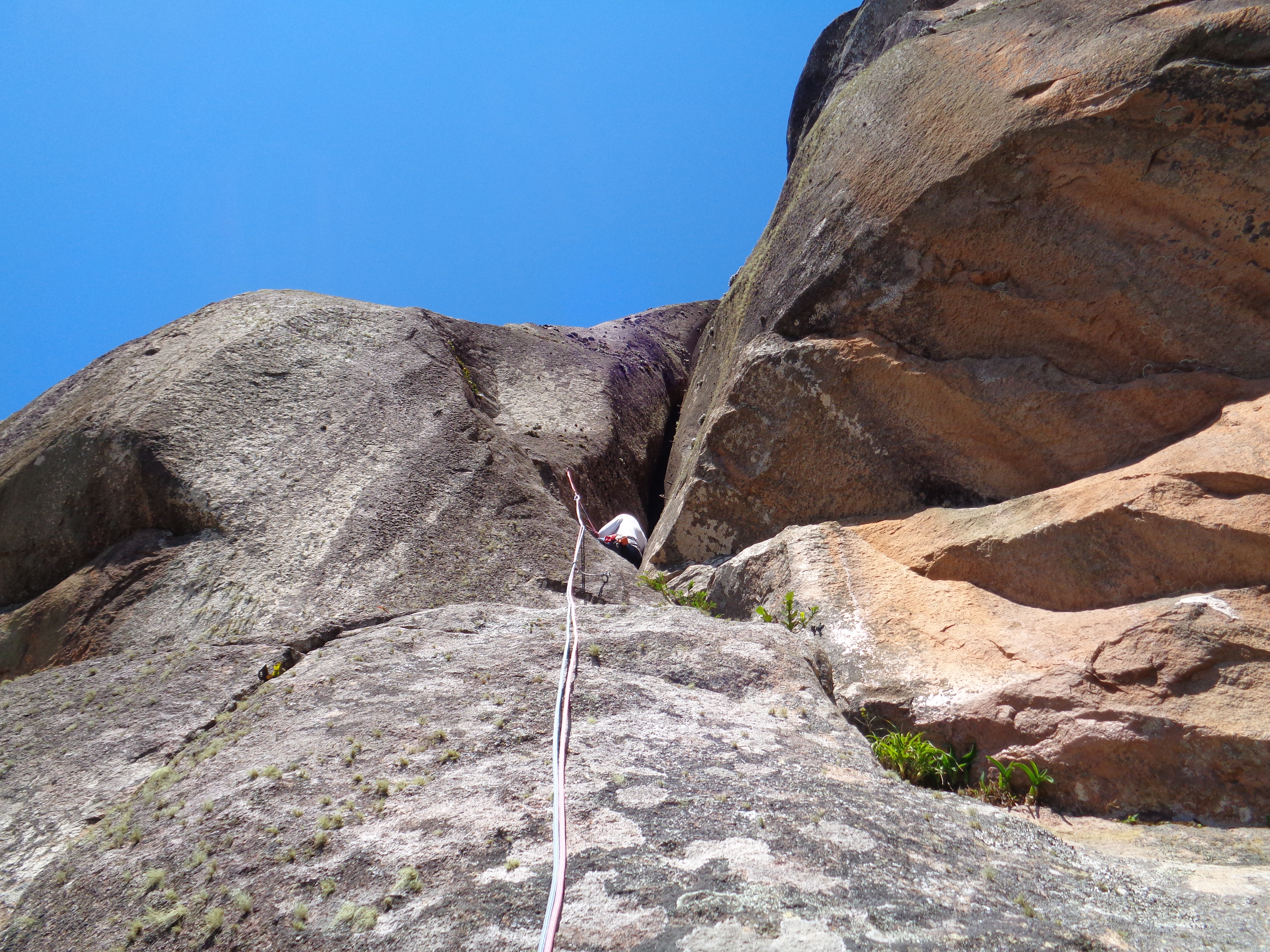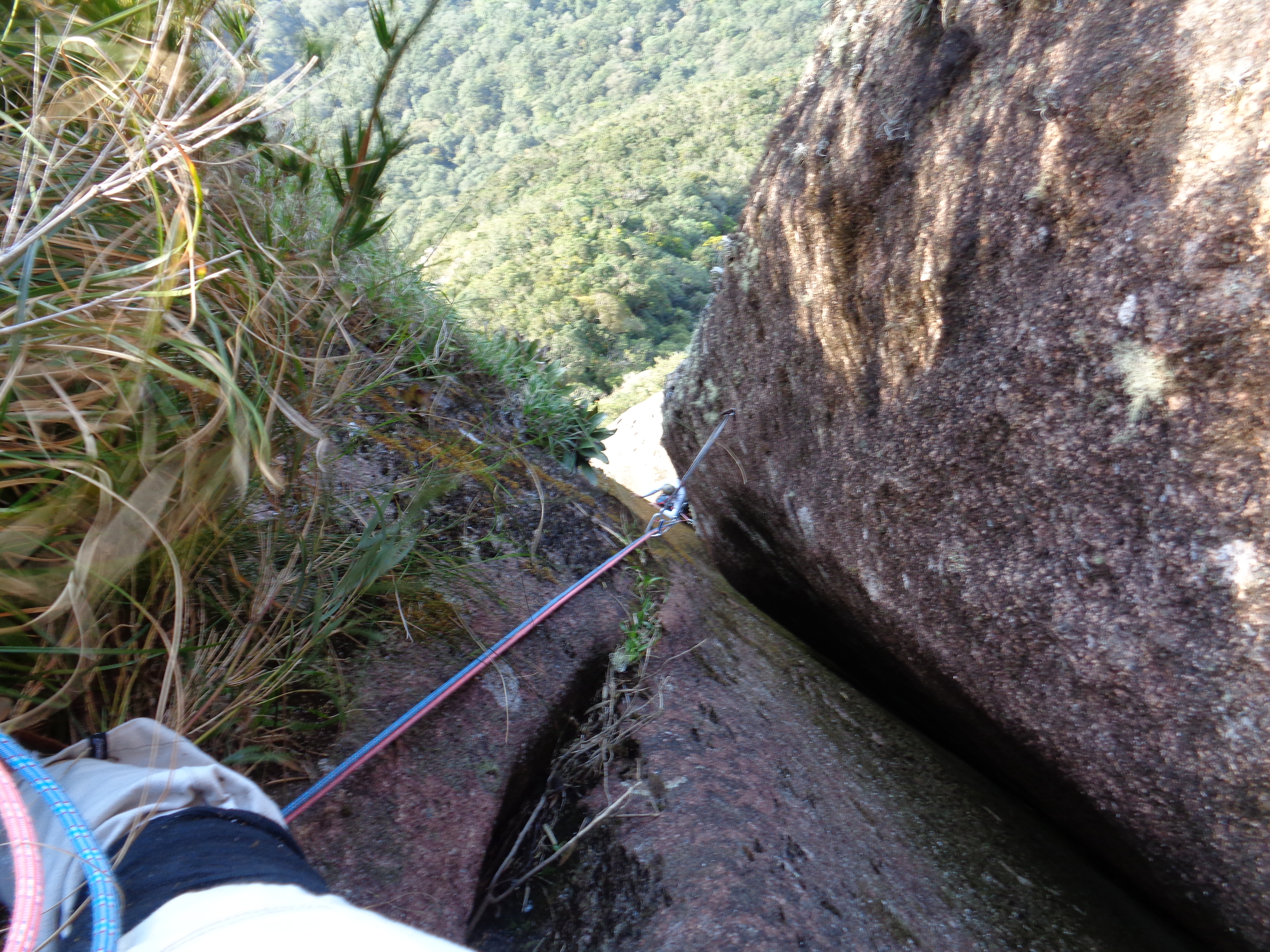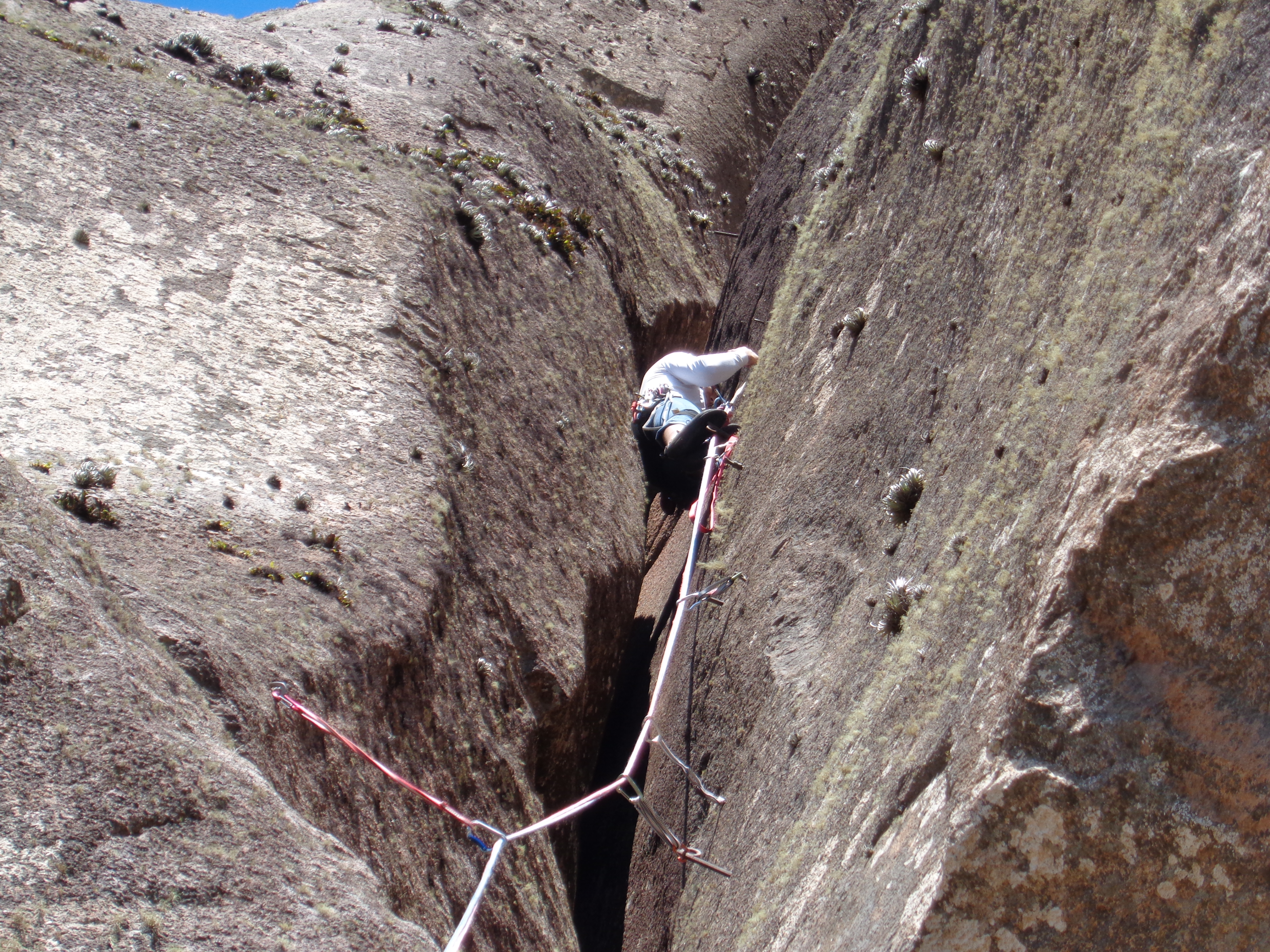 A fenda começa meio larga e vai se estreitando, eu via a parada não muito longe, fazia uma força gigantesca para subir um palmo naquela fenda estreita que mal conseguia me mexer.
