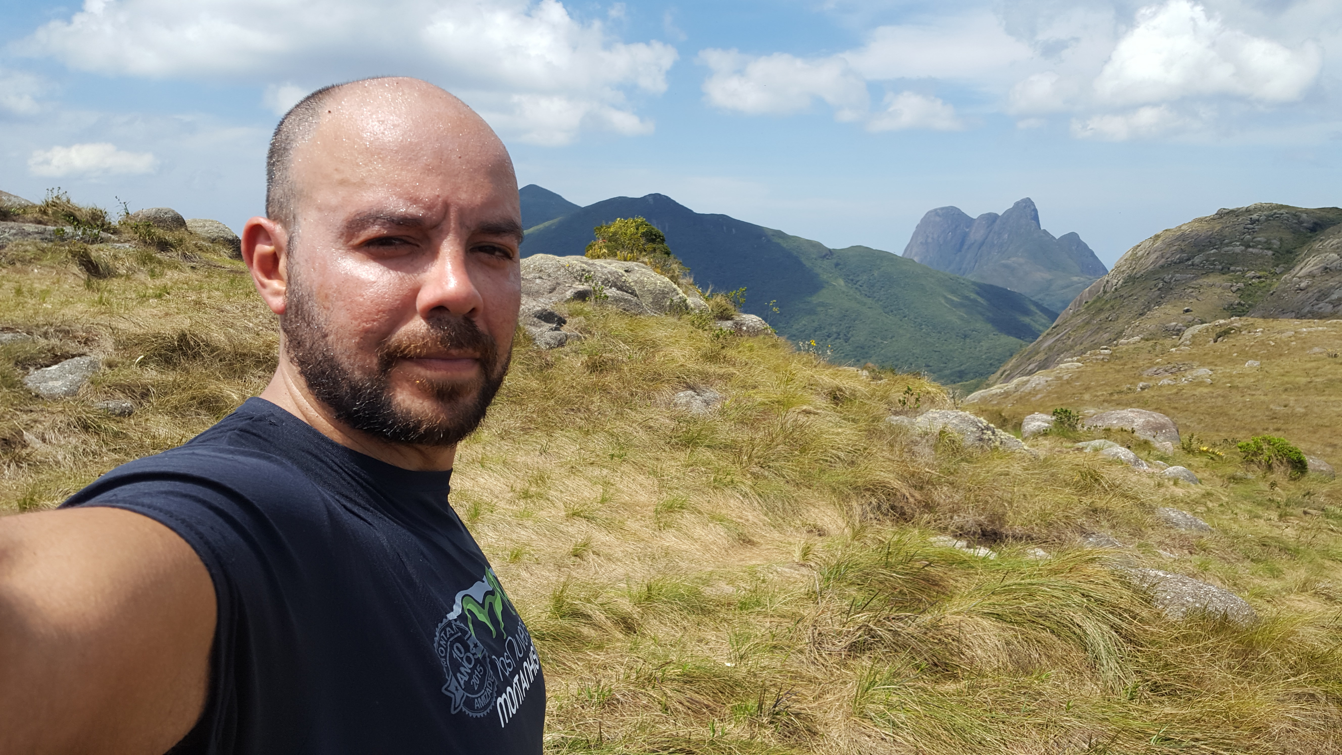 Muita gente até aquele ponto e tinha mais várias cabeças que eu conseguia ver subindo até o cume, tomei um gole de agua e segui em um tiro só chegando as 14:09 no cume do Camapuan.