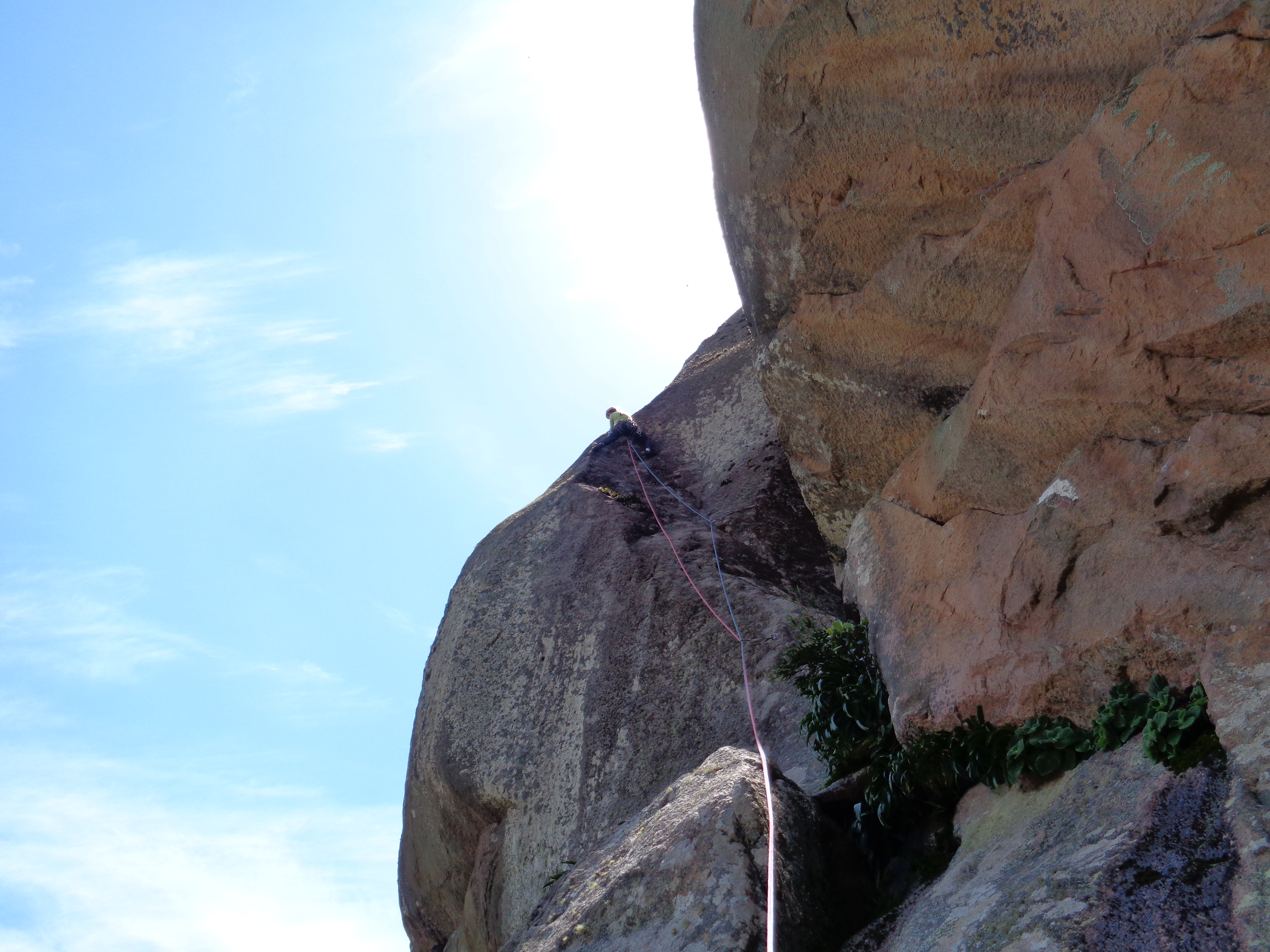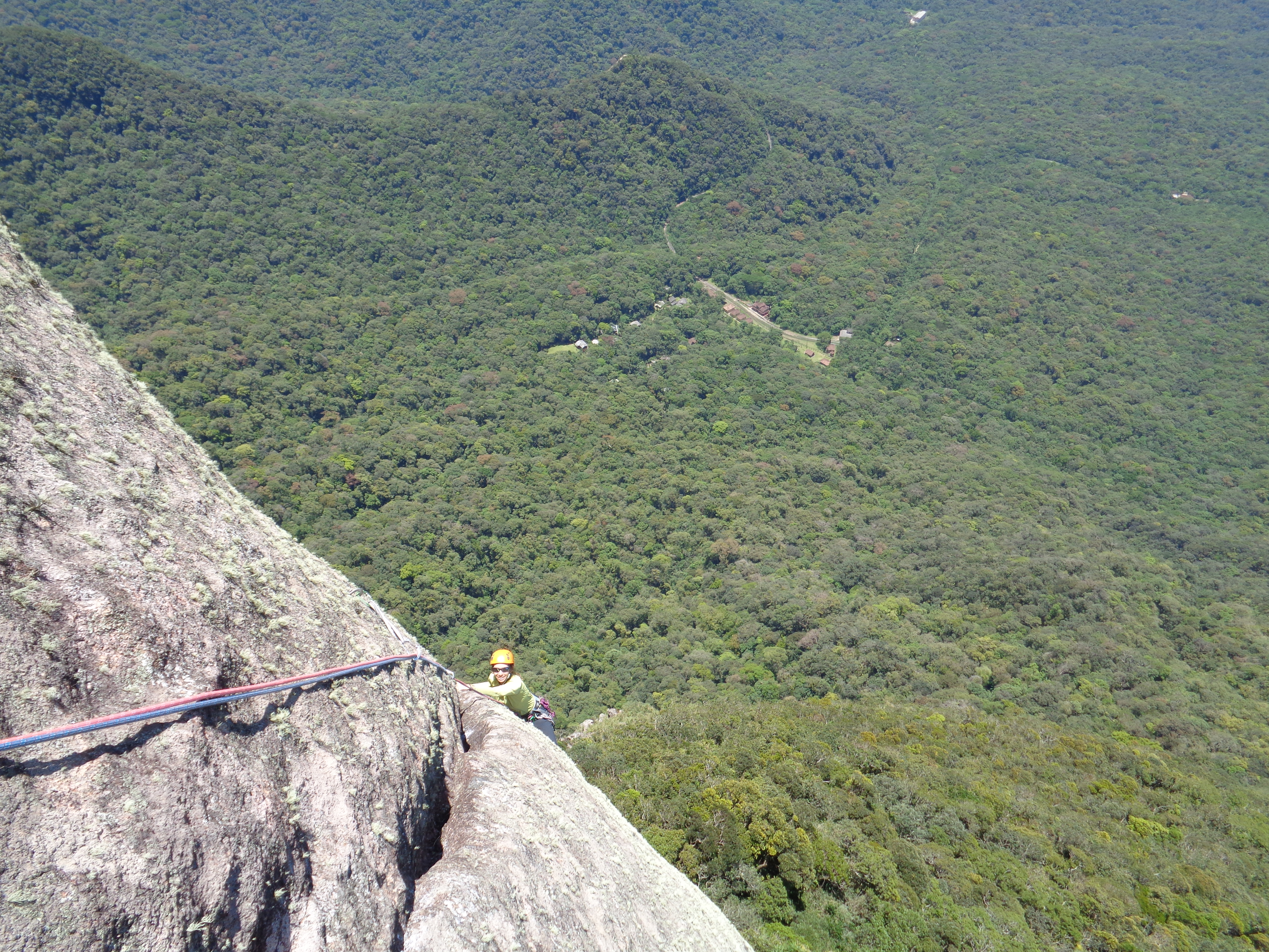 A via mais rápida para fazer naquele momento já que não podíamos demorar era a Maria Buana, escalada de duas enfiadas que daria para os dois guiarem.