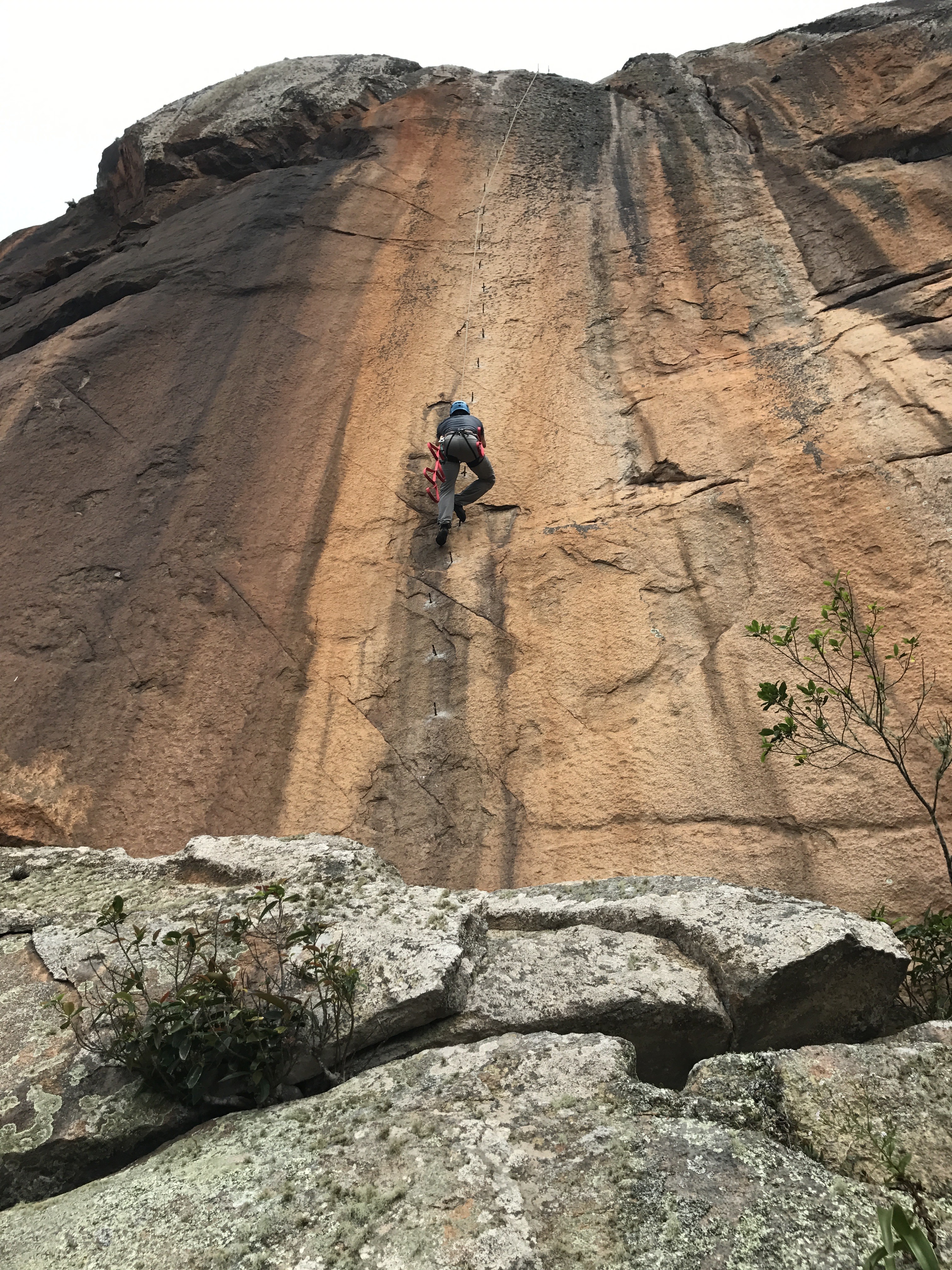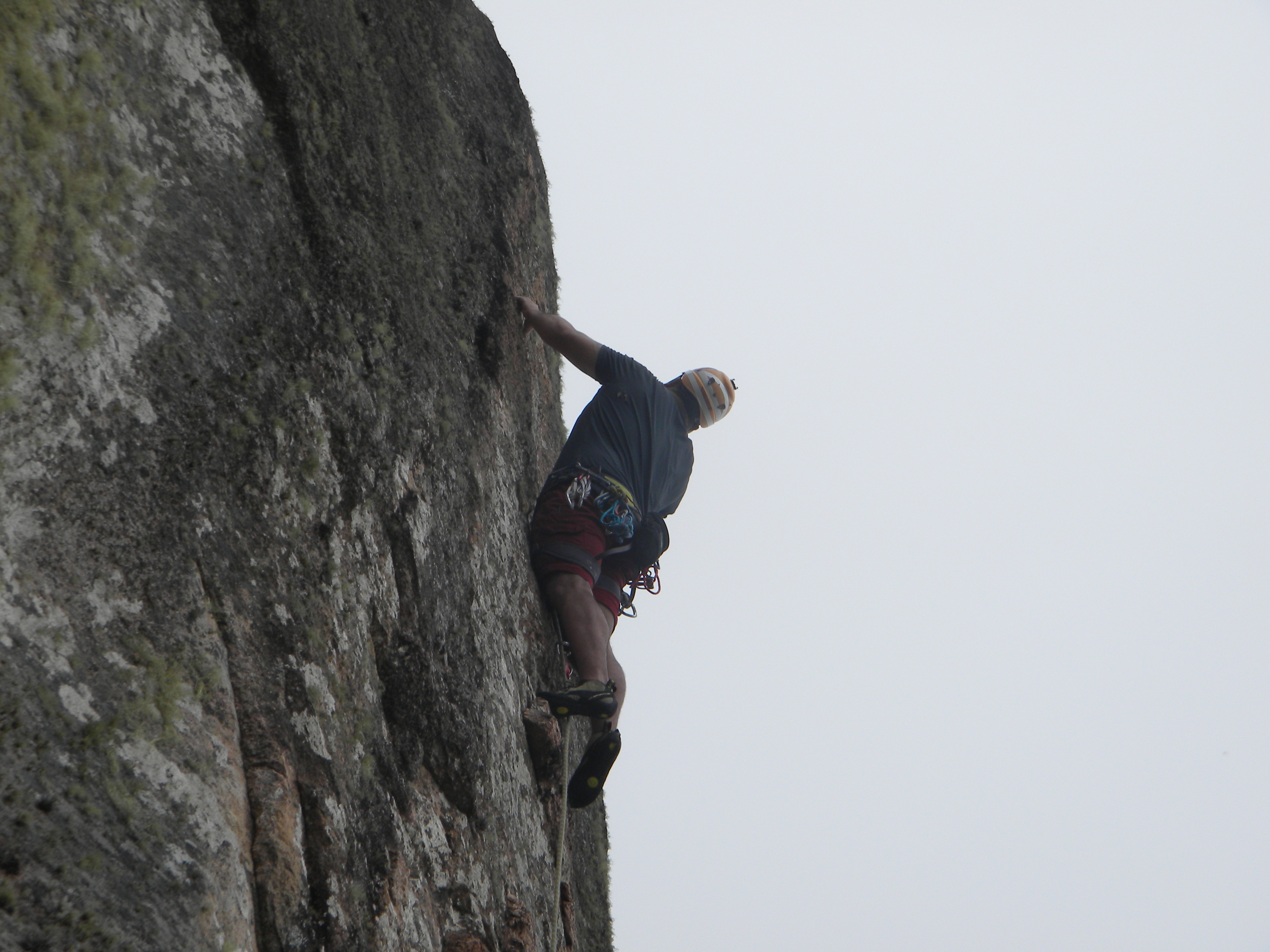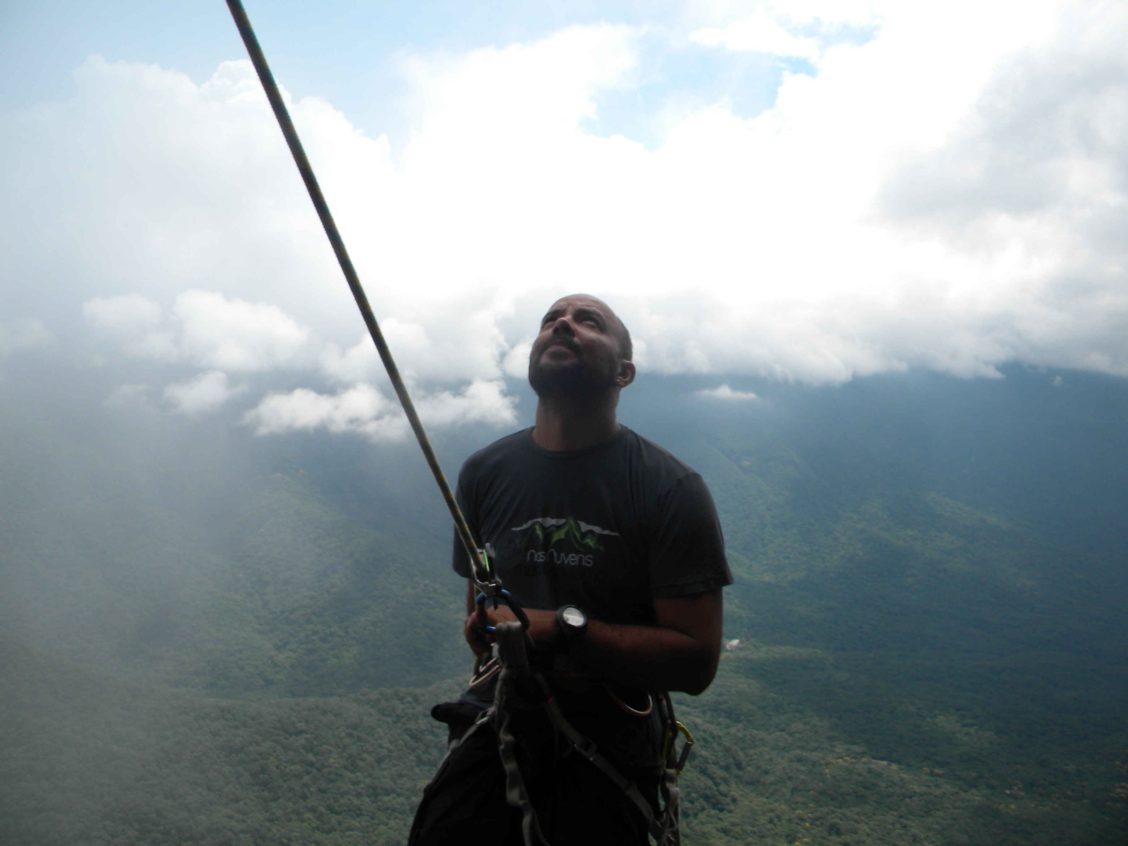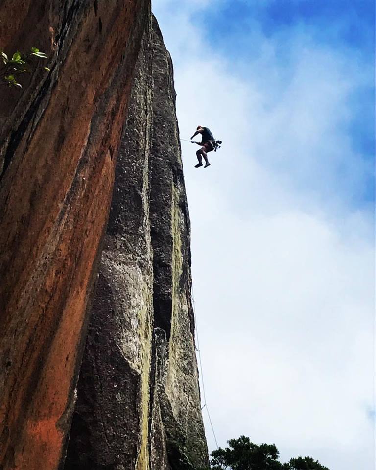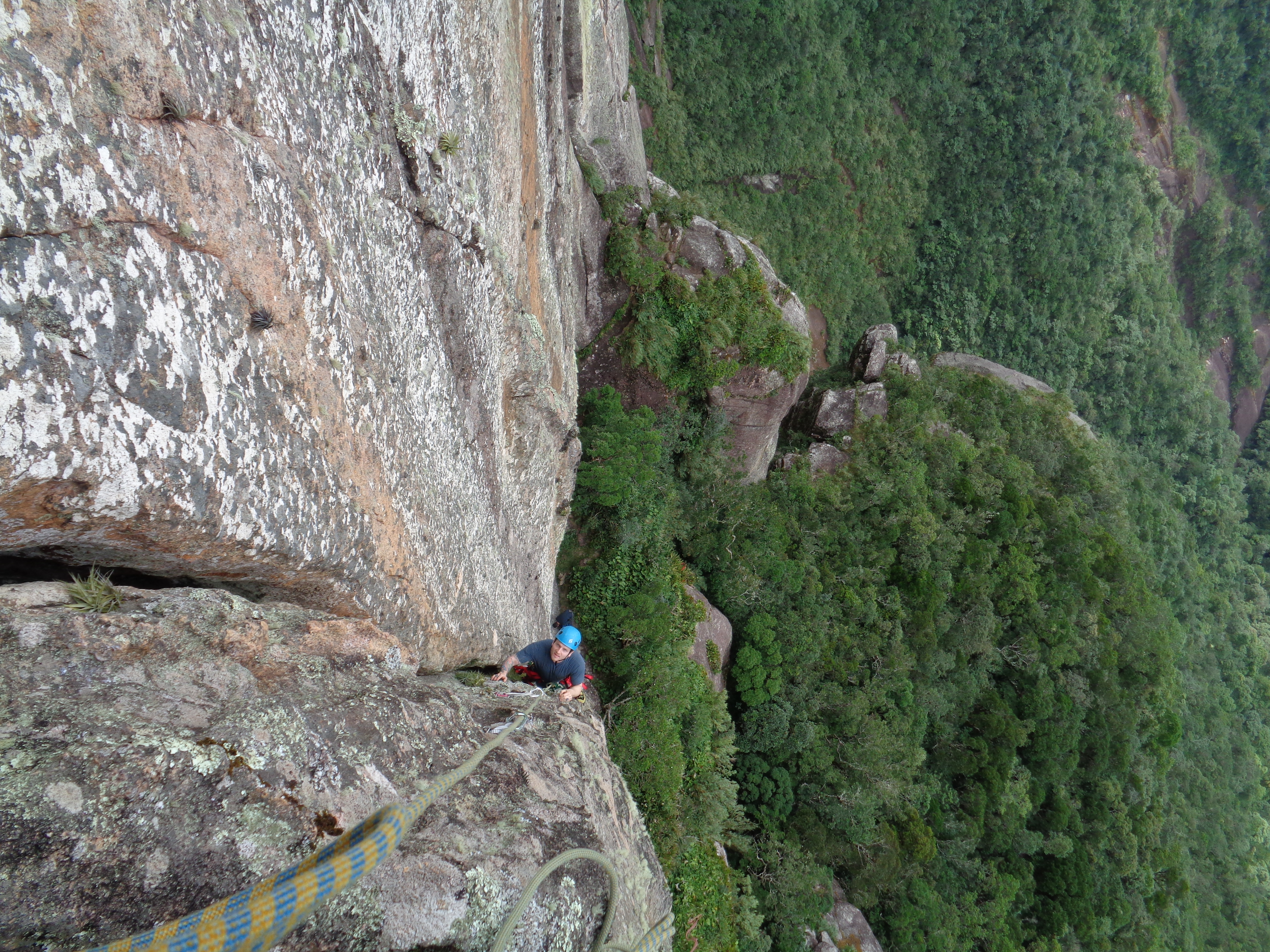 Outra brincadeira divertida que agradaria a todos era fazer o pendulo na via Enferrujados. Guiei a primeira enfiada, na sequencia veio o Lucas e o Cassiano. O Cassiano como era a primeira vez que visitava o Marumbi estava impressionado com tudo, na escalada então ficou maravilhado com o visual, a via, com tudo na verdade.
