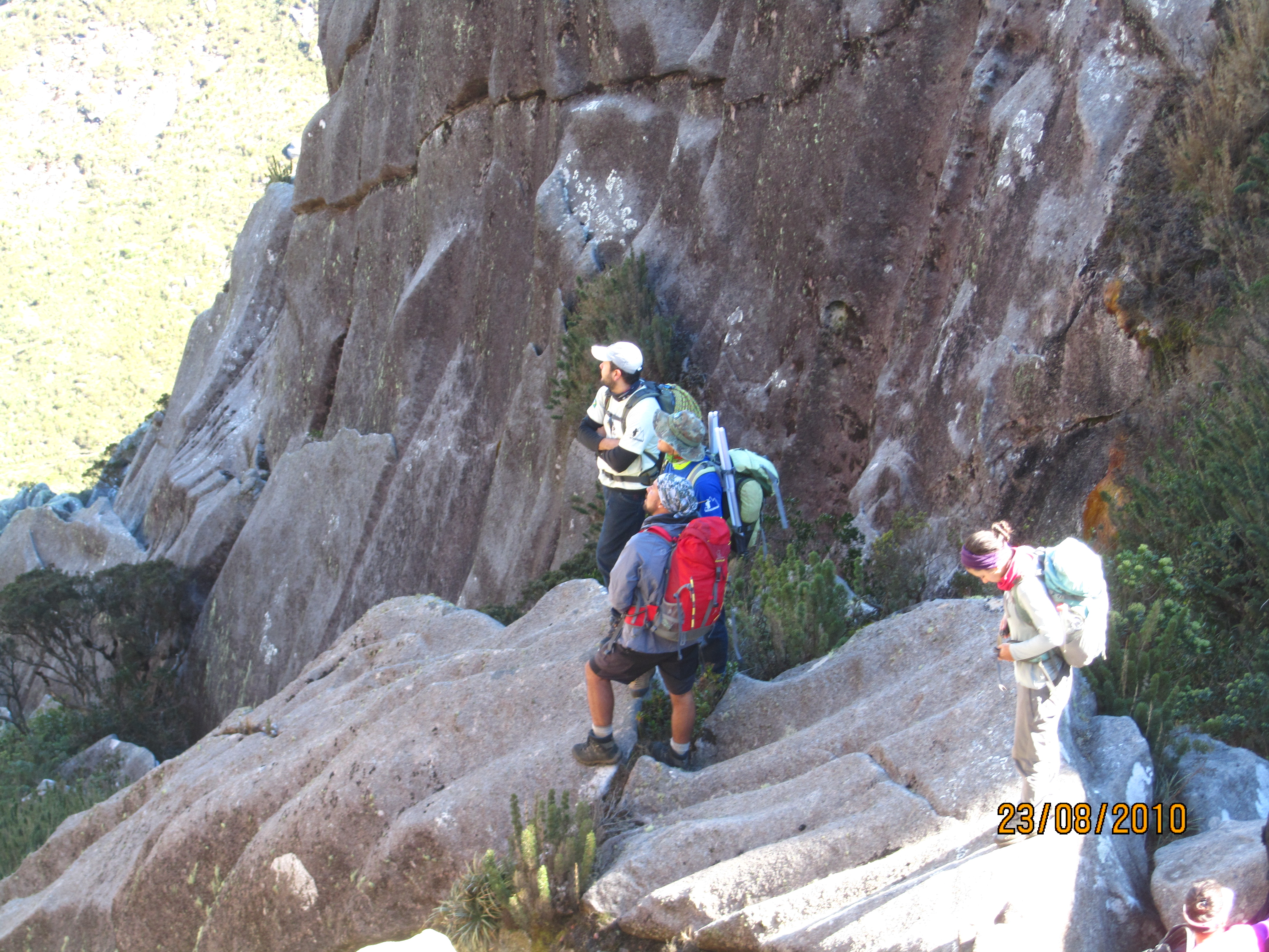 Eu, Neto e Carol começamos a caminhada cedo, subimos juntos a trilha principal da montanha. No caminho fui tentando me informar com alguns guias que cruzamos sobre aonde era o início da via que pretendíamos fazer.