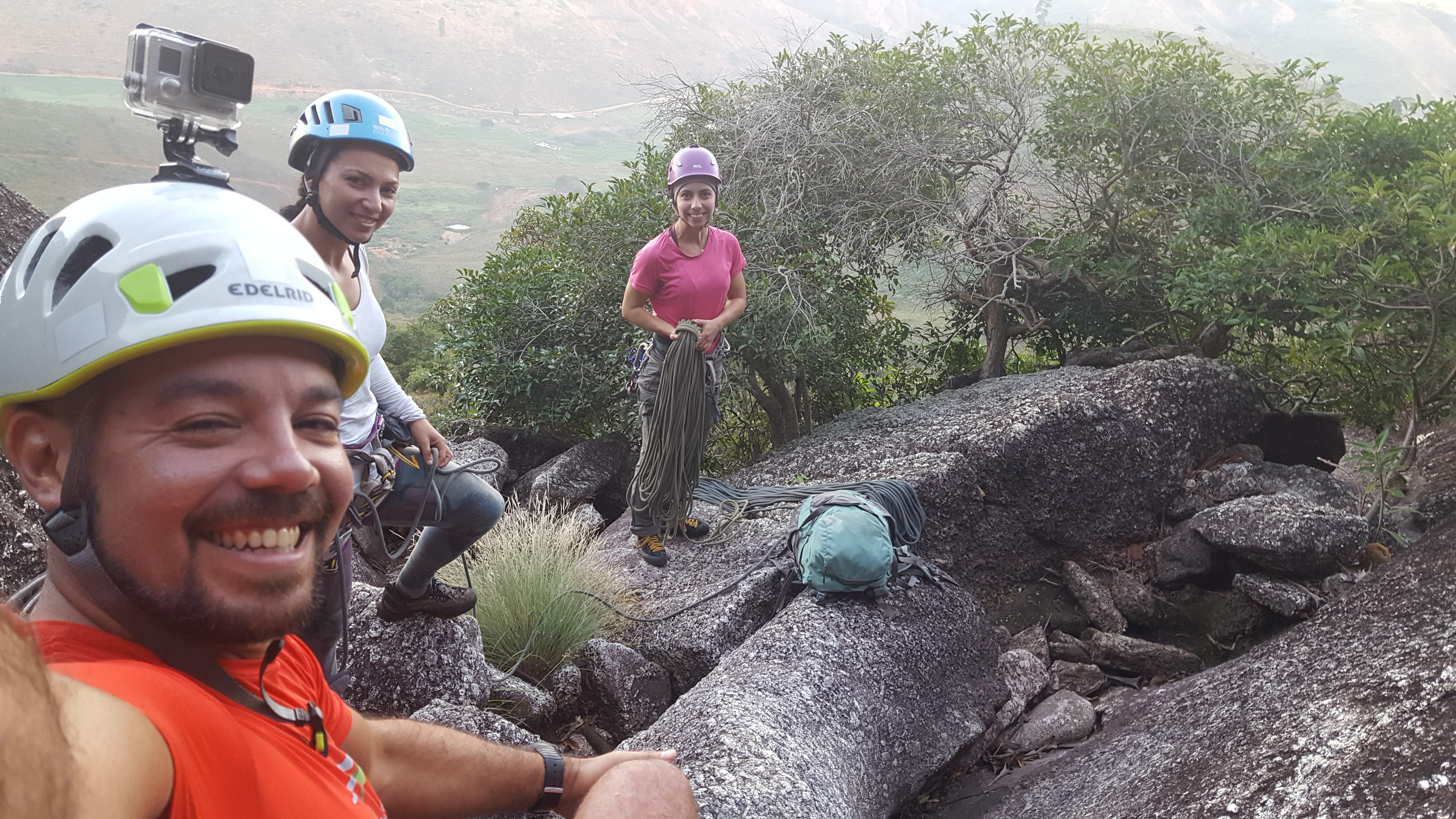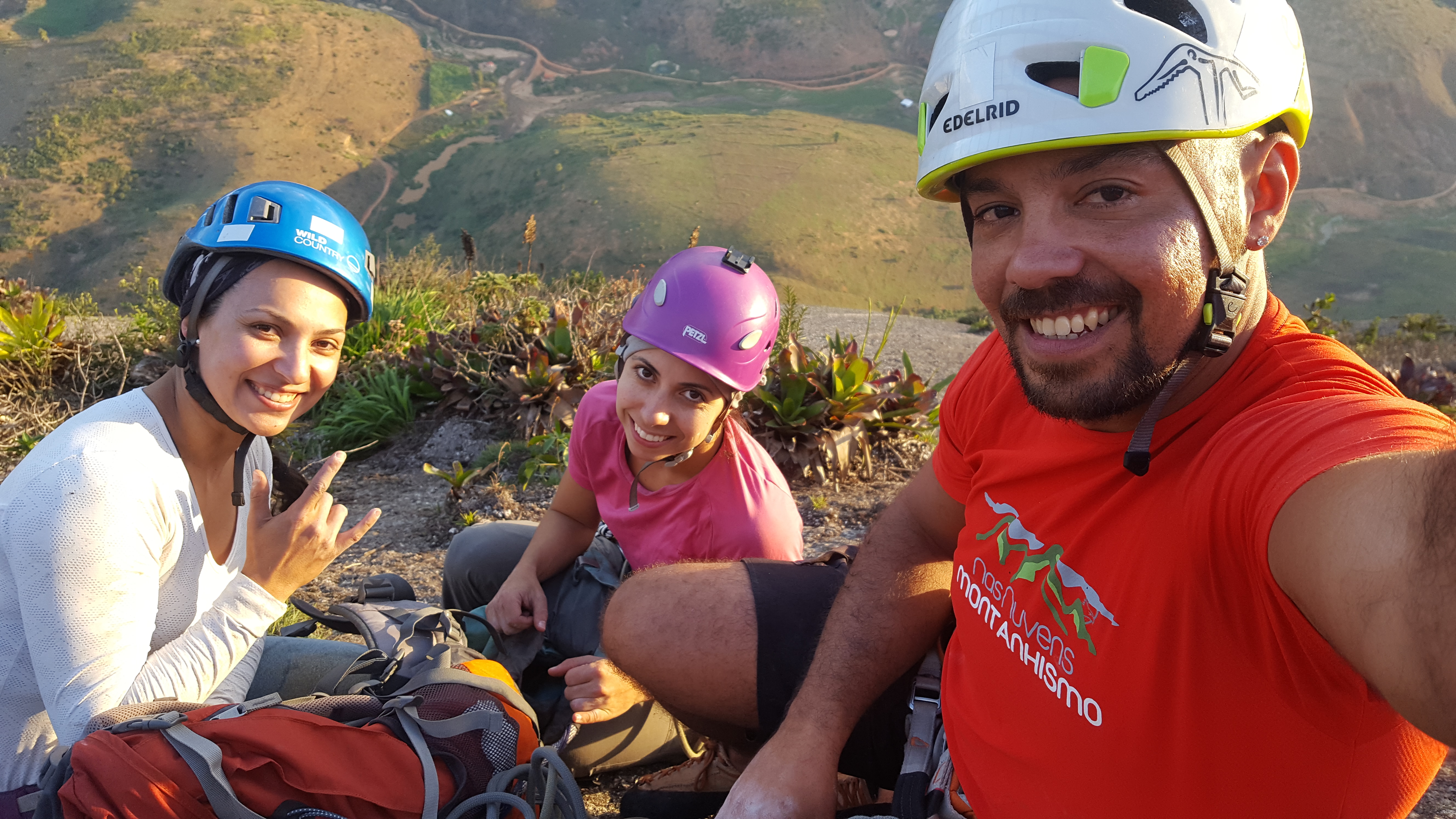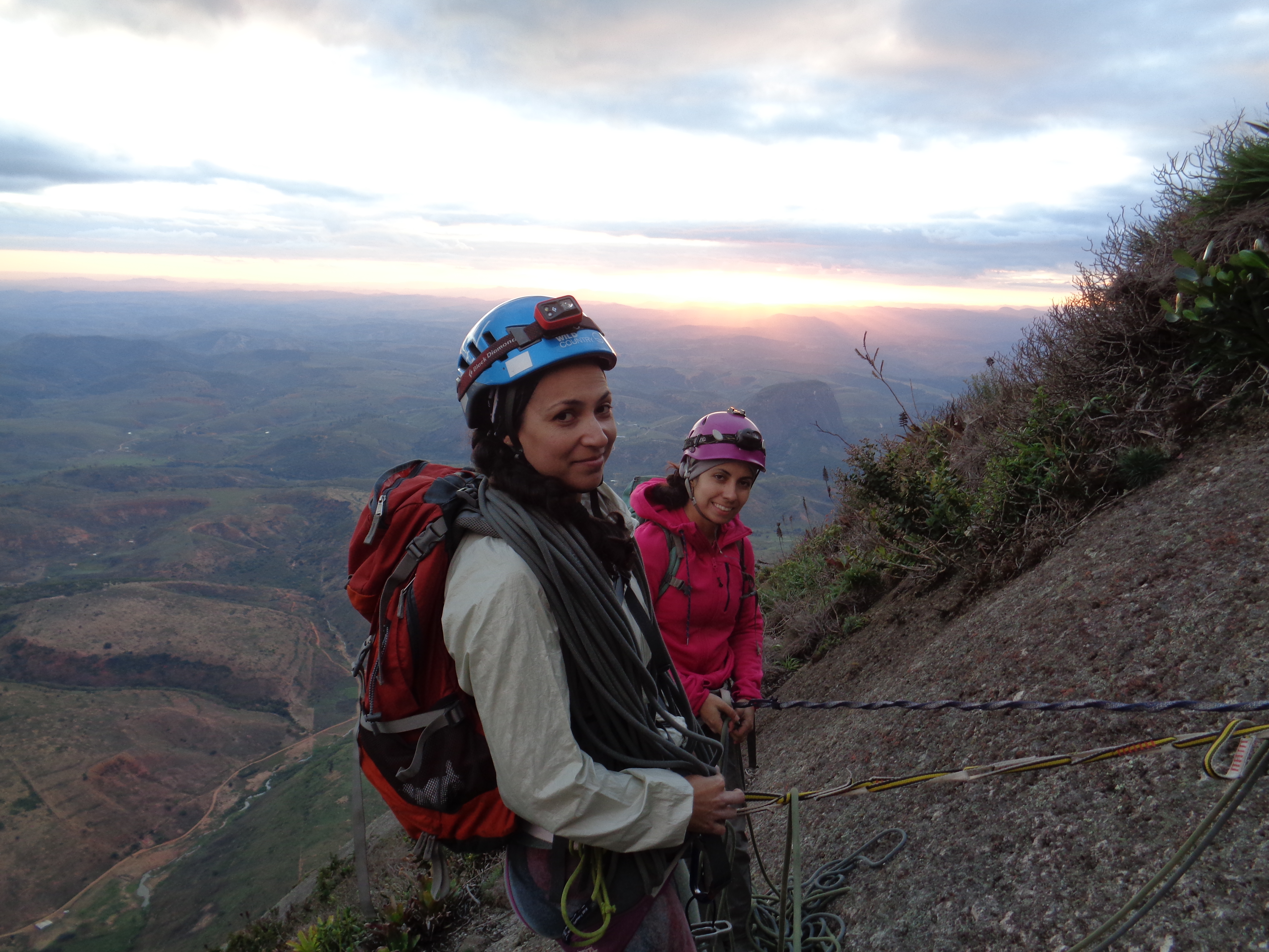 As 16:40 da tarde finalizamos a via Moonwalker, ainda com luz começamos a rapelar até o Platô, tanto eu quanto as meninas muito contentes pela bela via que tínhamos acabado de escalar, além da sincronia que rolou entre os três escaladores que foi ótima.