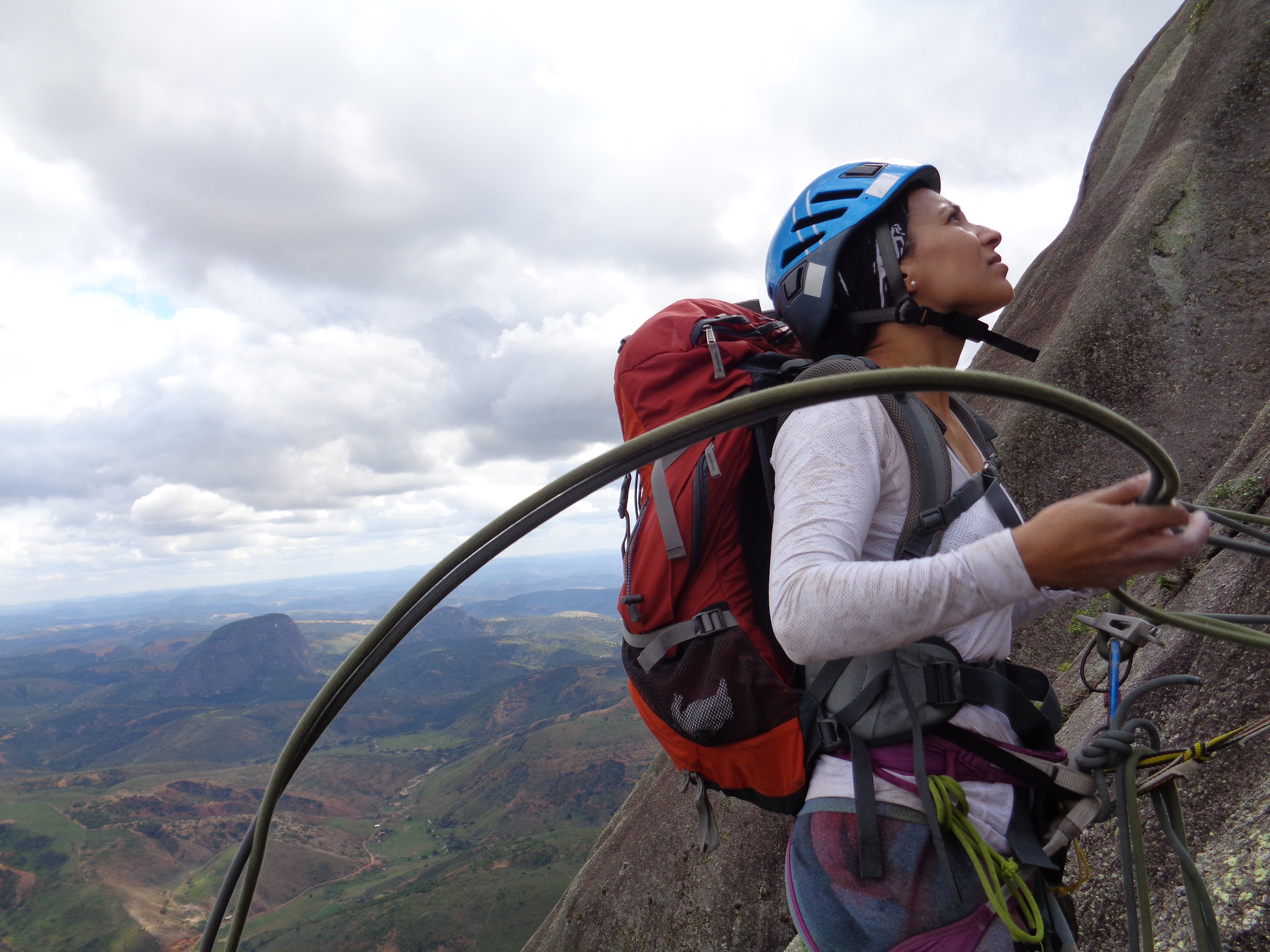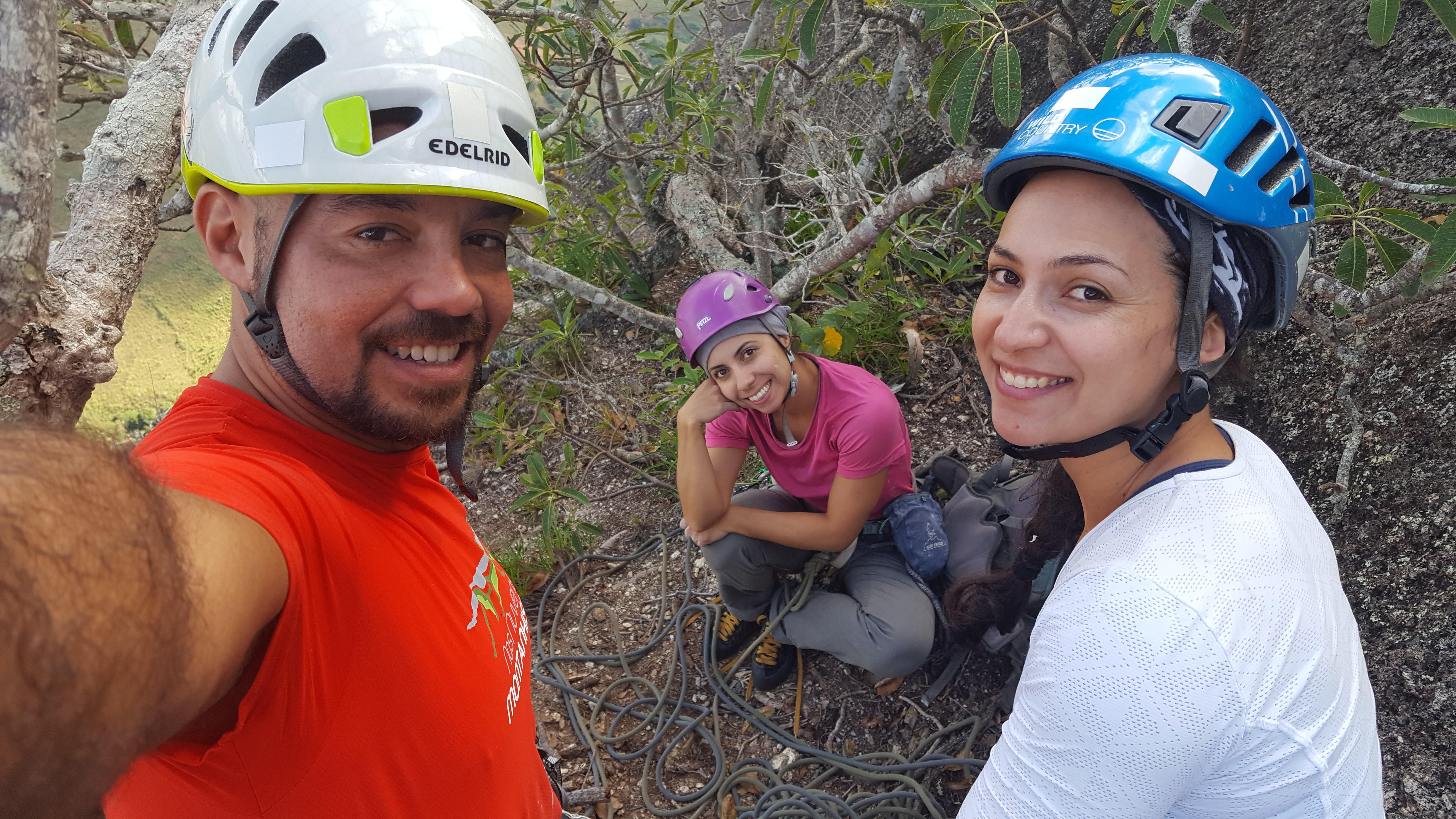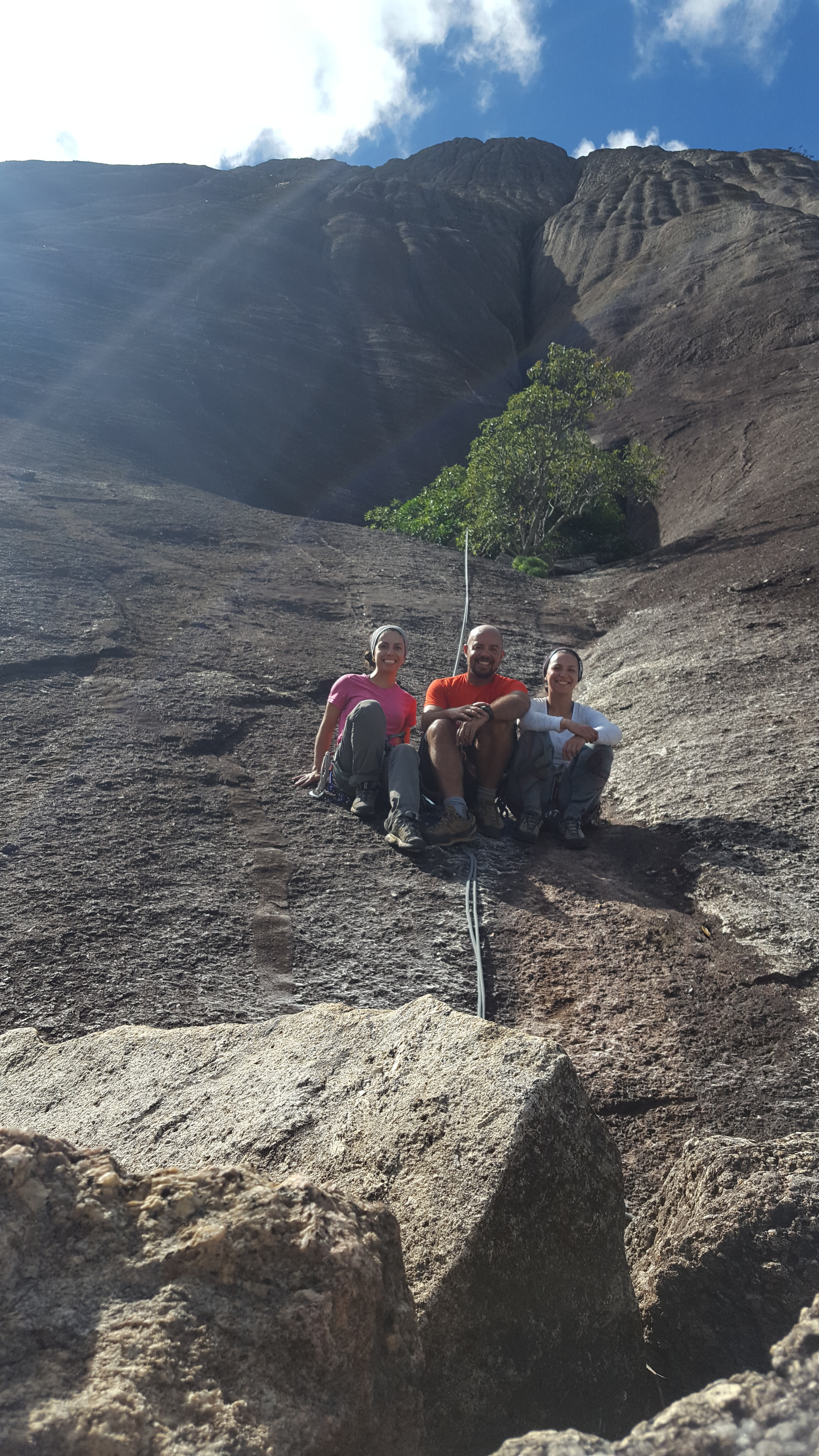 As 16:40 da tarde finalizamos a via Moonwalker, ainda com luz começamos a rapelar até o Platô, tanto eu quanto as meninas muito contentes pela bela via que tínhamos acabado de escalar, além da sincronia que rolou entre os três escaladores que foi ótima.