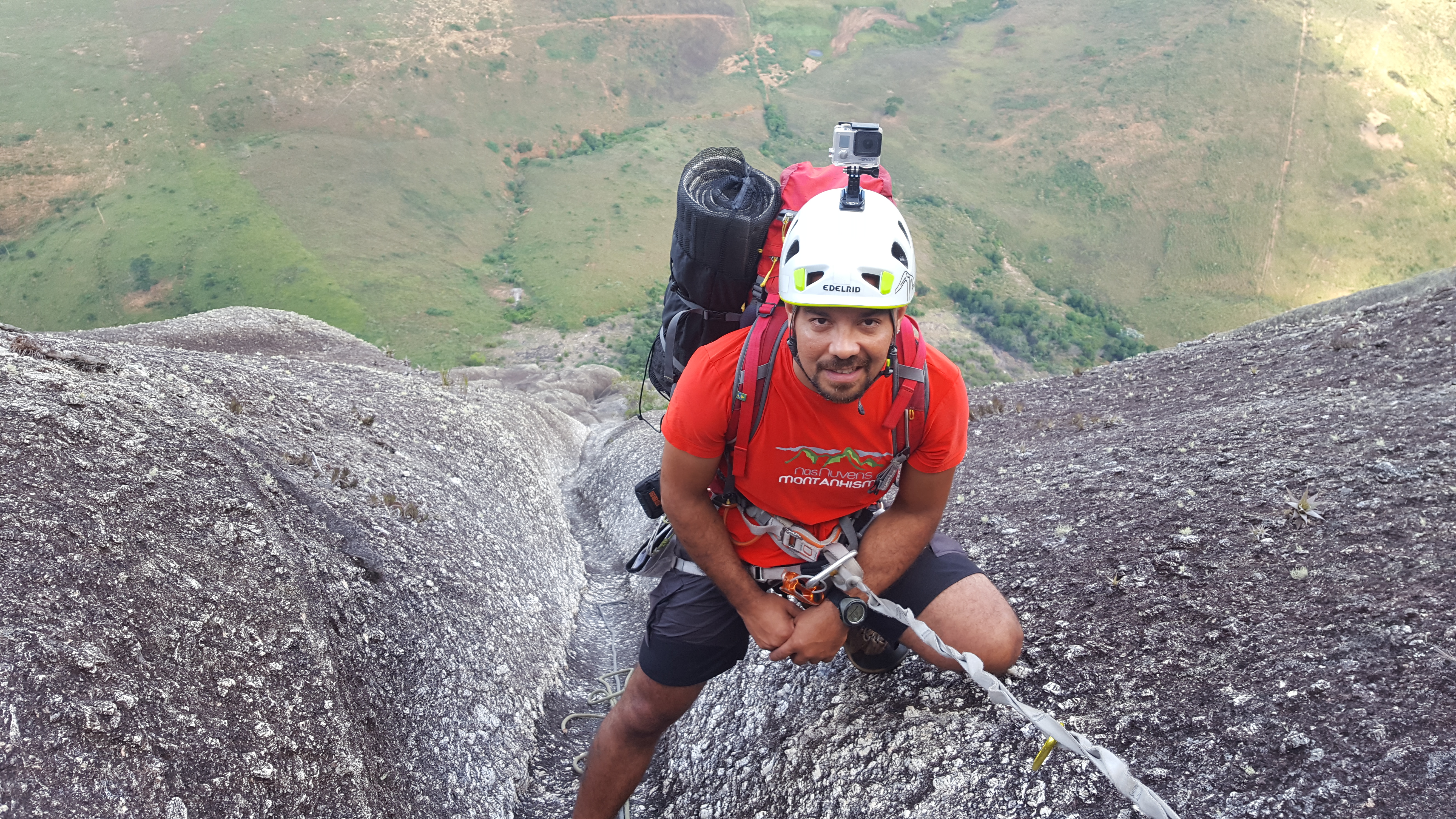 Depois disso a escalada rendeu muito, como as primeiras enfiadas são muito parecidas era só fazer quase o mesmo sistema que ganhávamos altura rapidamente.