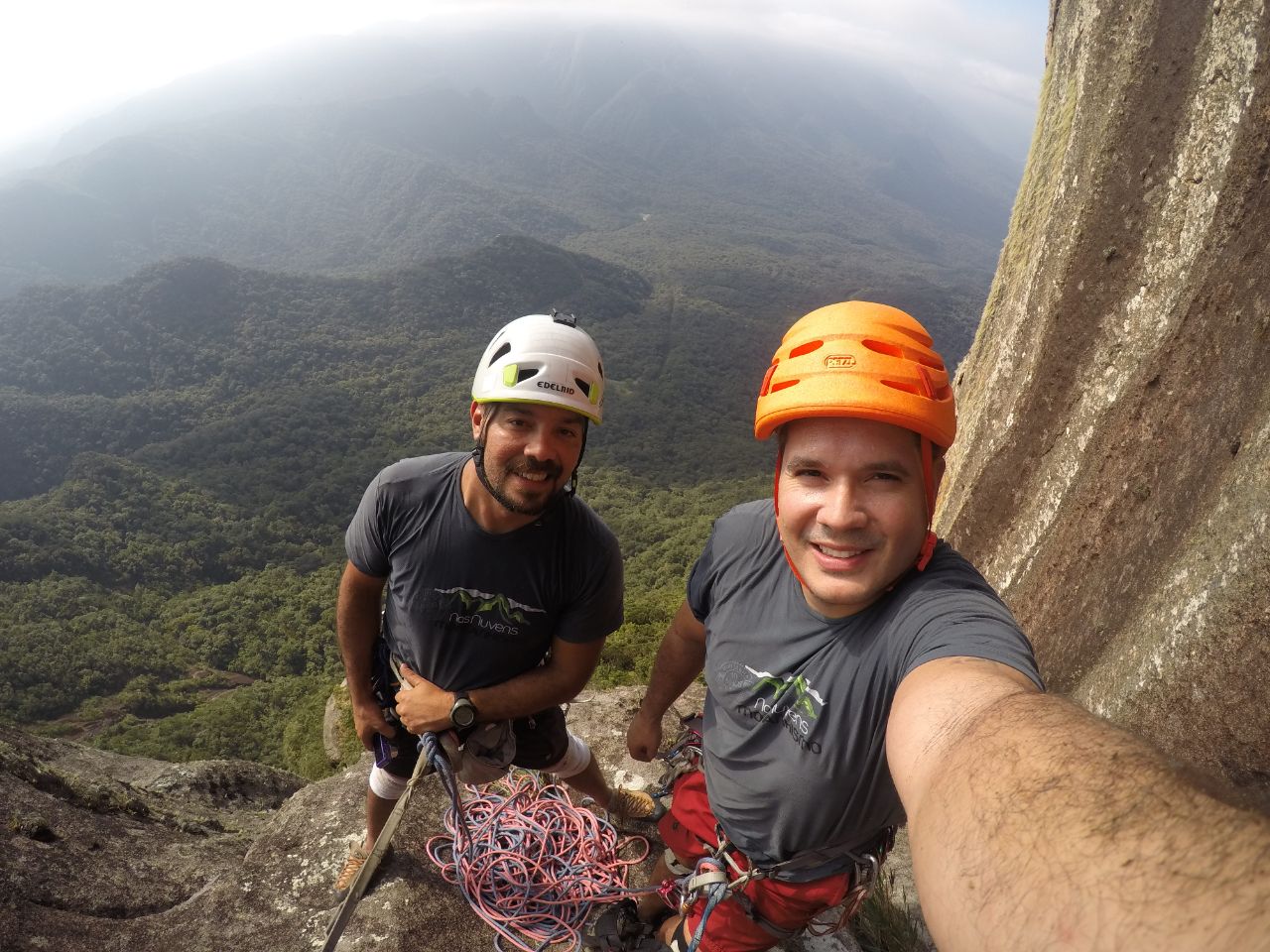 Após 09 horas de escalada e vara mato repetimos a Diretíssima do Abrolhos, escalada intensa com o verdadeiro DNA Marumbino. Escalar leve, rápido e de forma integrada são imprescindíveis.