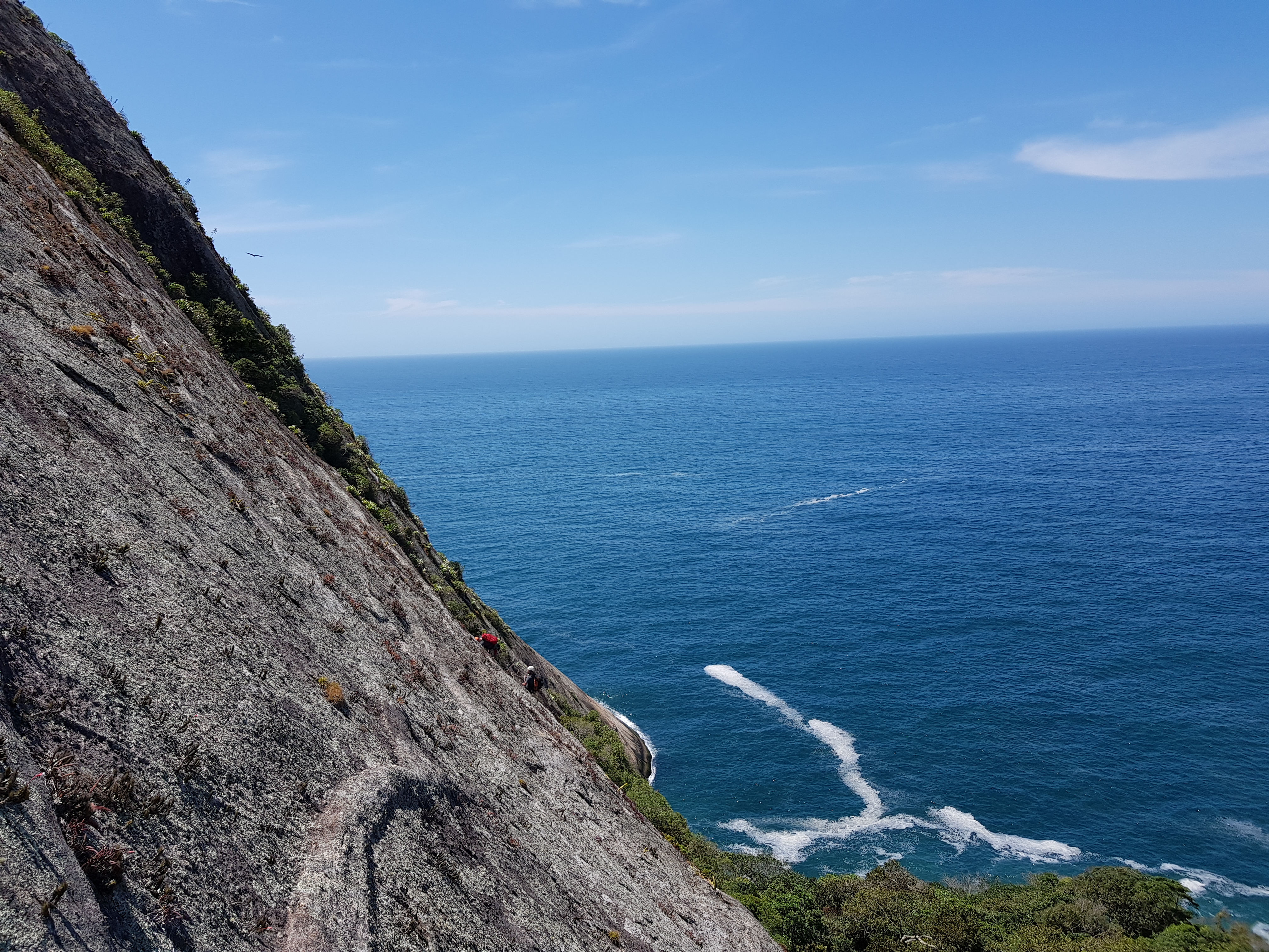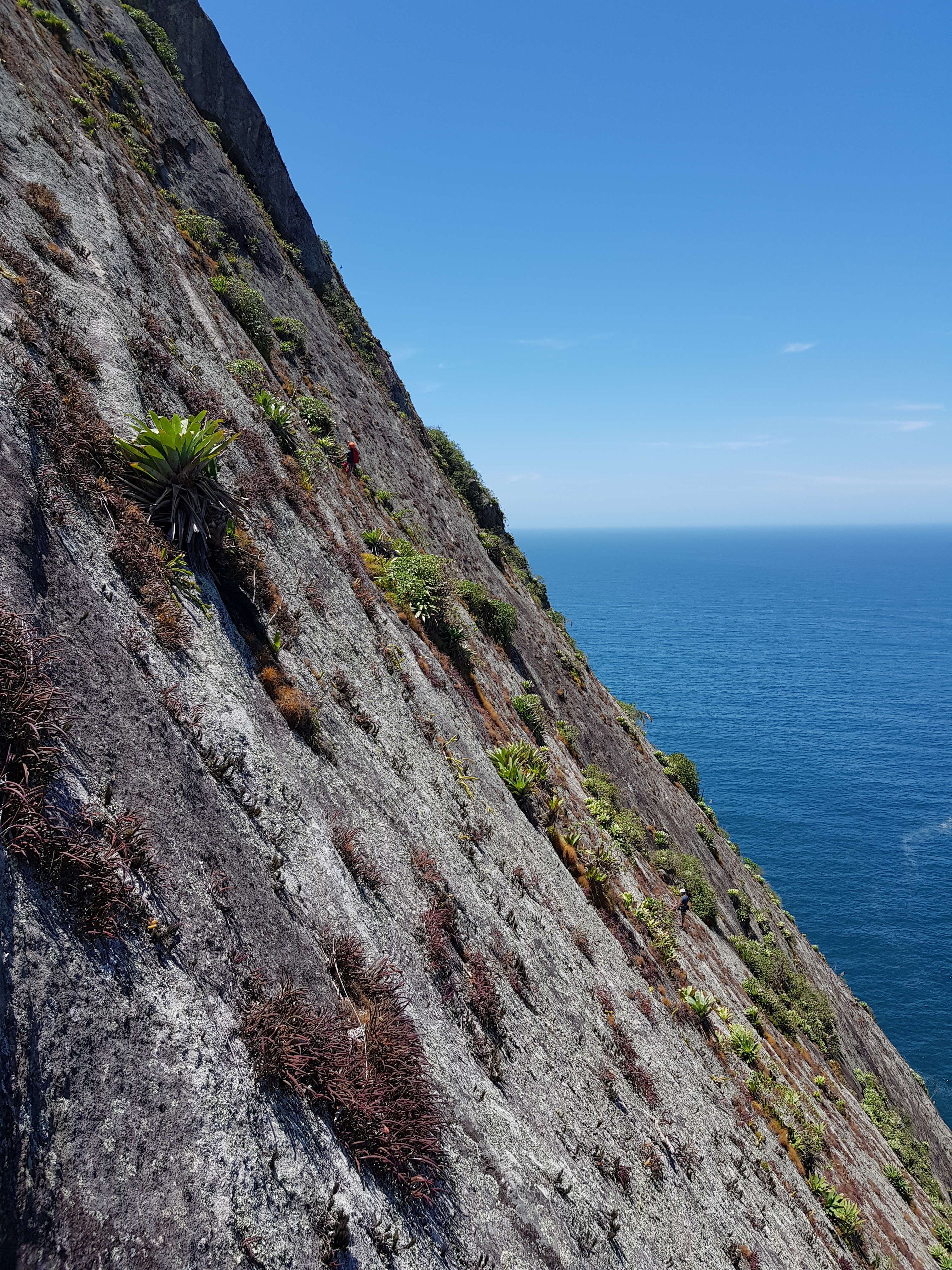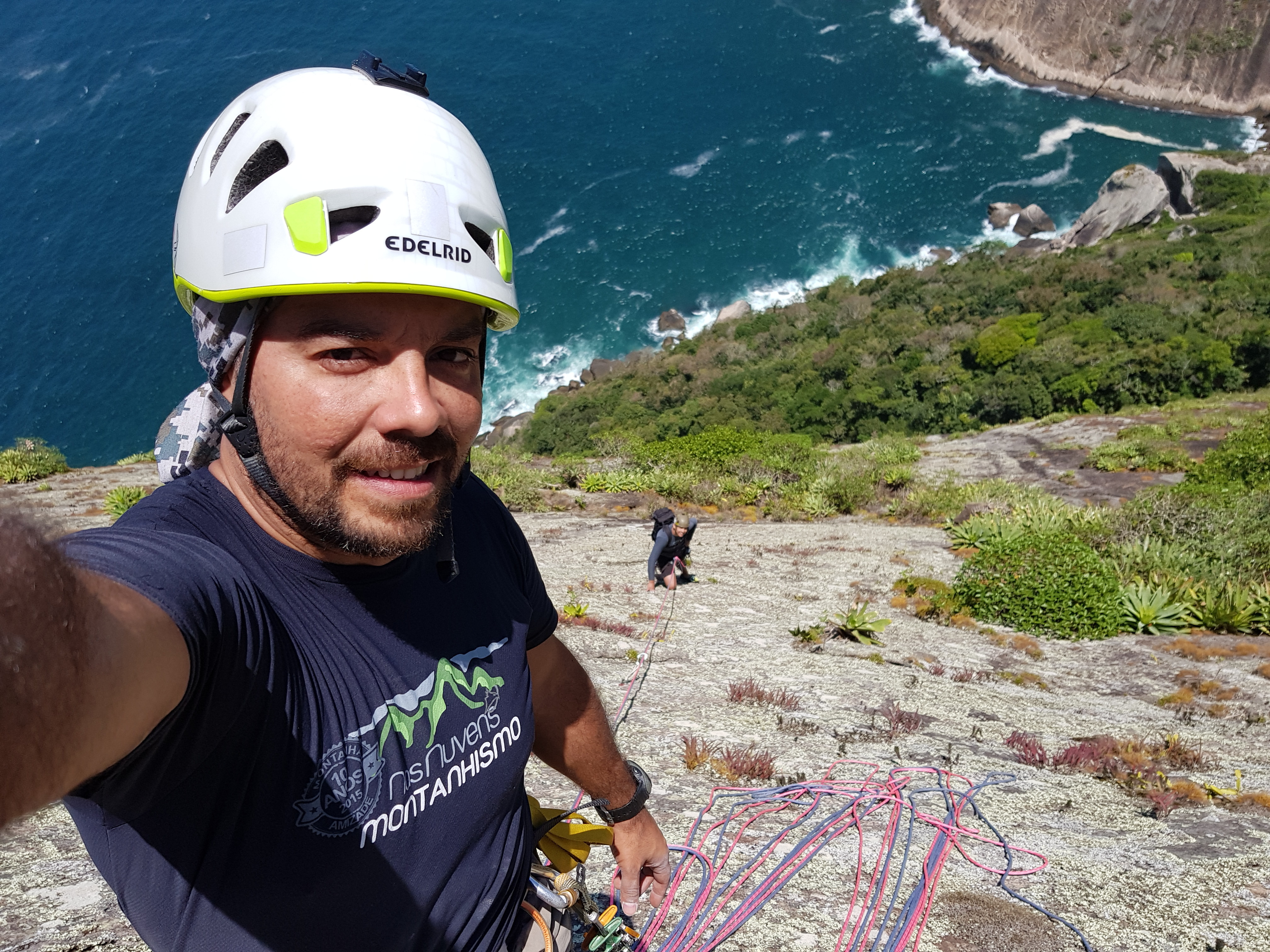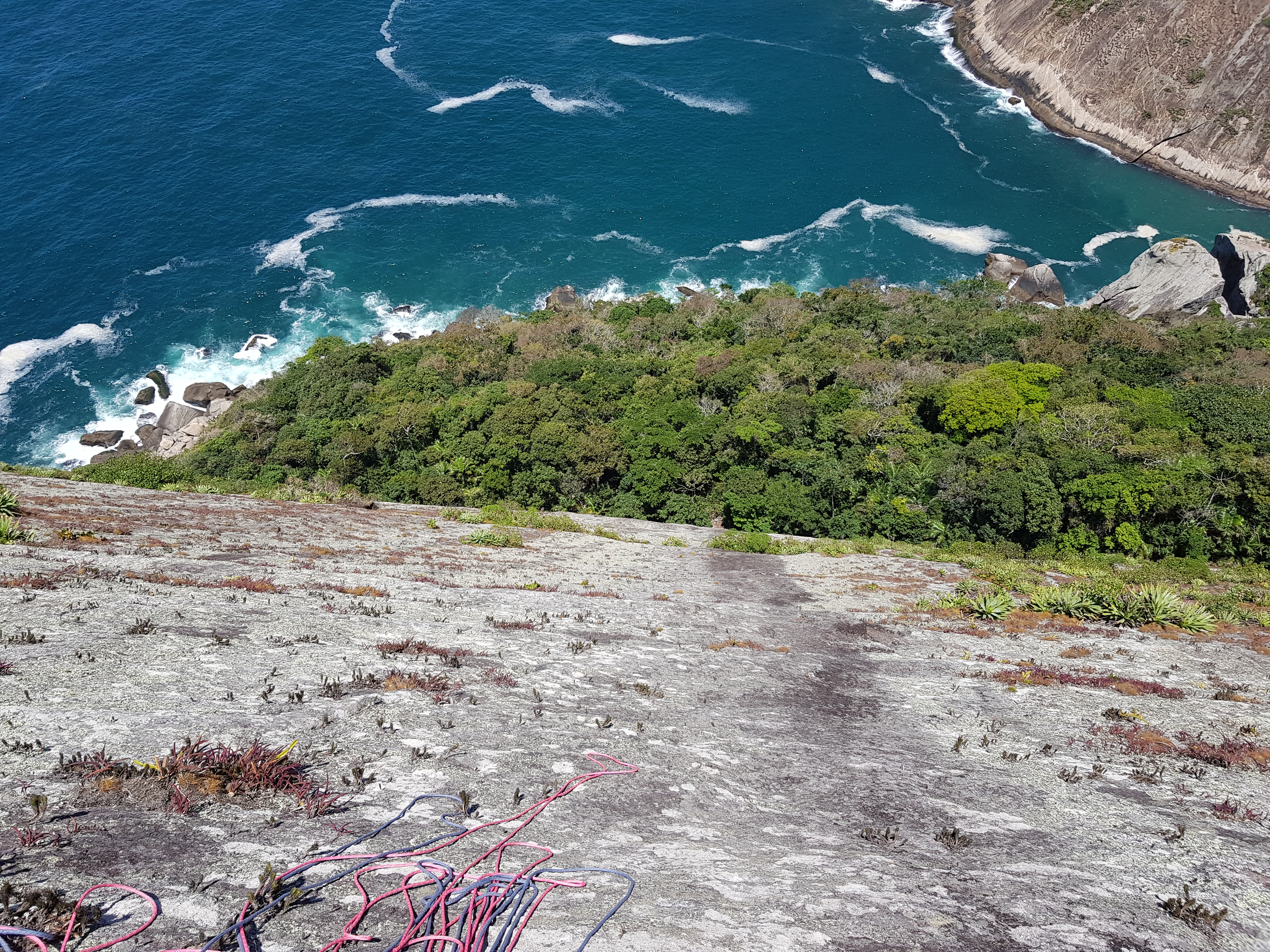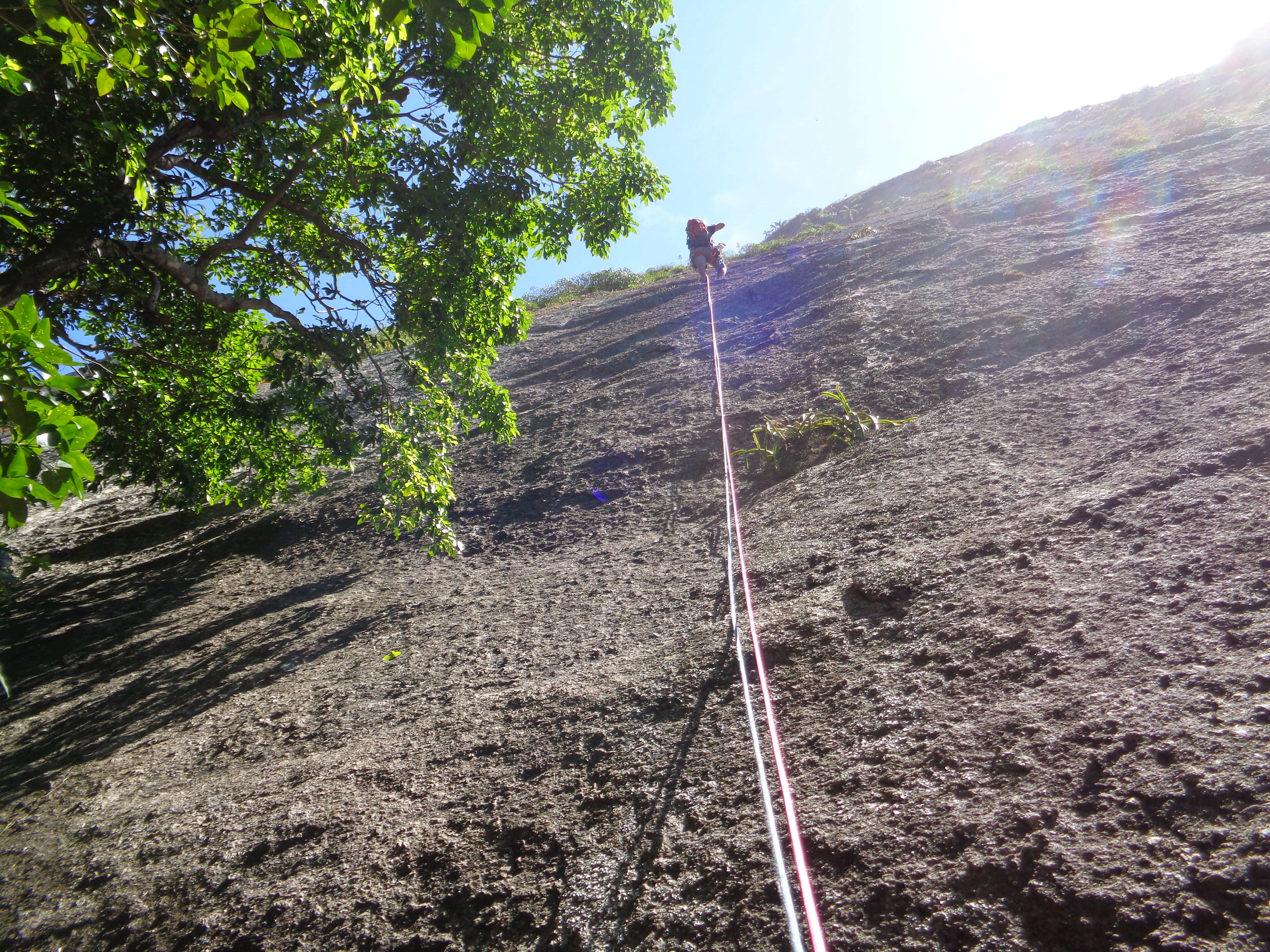 A escalada fluiu na maior tranquilidade, apesar do calor do Rio de Janeiro que para nós é infernal, escalamos em um ritmo bom. A dupla ao lado também seguia na mesma pegada, só quase no final da via, na P8, que perdemos contato visual com o Juliano e o Xandão.