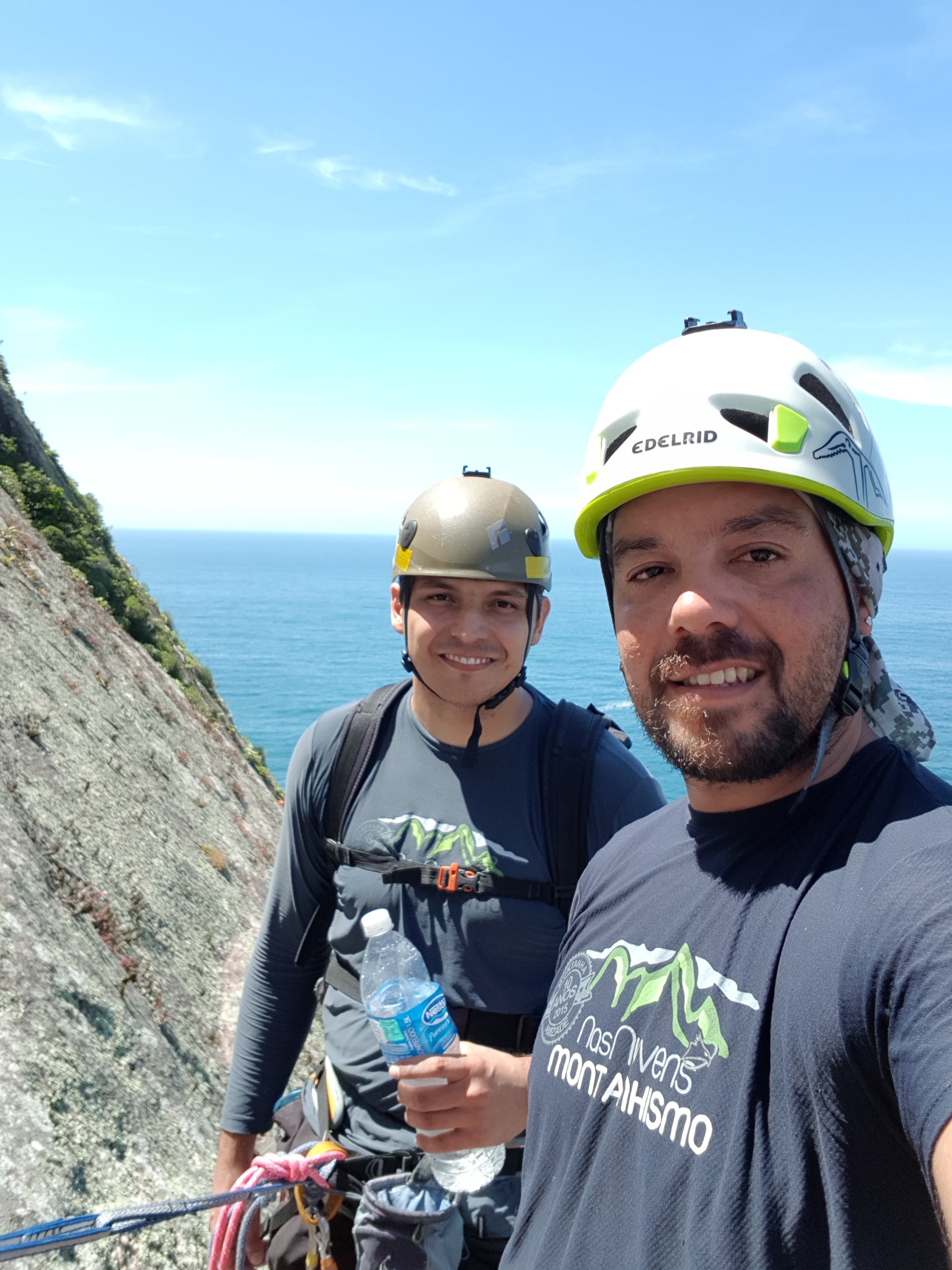 O Juliano queria repetir a via Oswaldo Pereira com o Xandão. Eu já havia escalado essa via com o Juliano em outra oportunidade, escolhi a Via Face Sudoeste do Alto Mourão, 4° V E3 D3 485 metros, uma das vias mais clássicas de Niterói. O Alisson seria meu parceiro de cordada, mesmo a tempo longe das paredes ele estava bem empolgado para essa escalada.