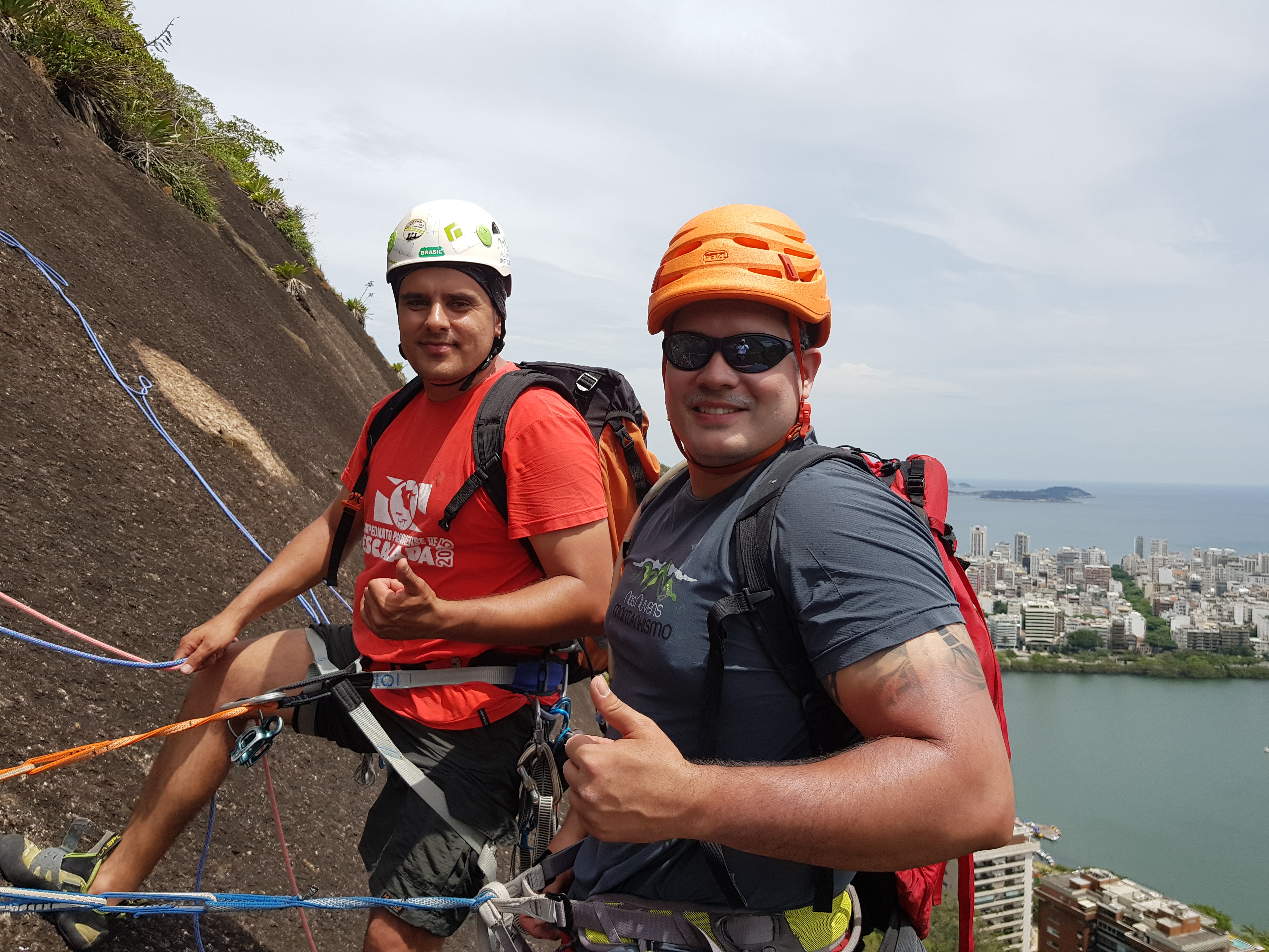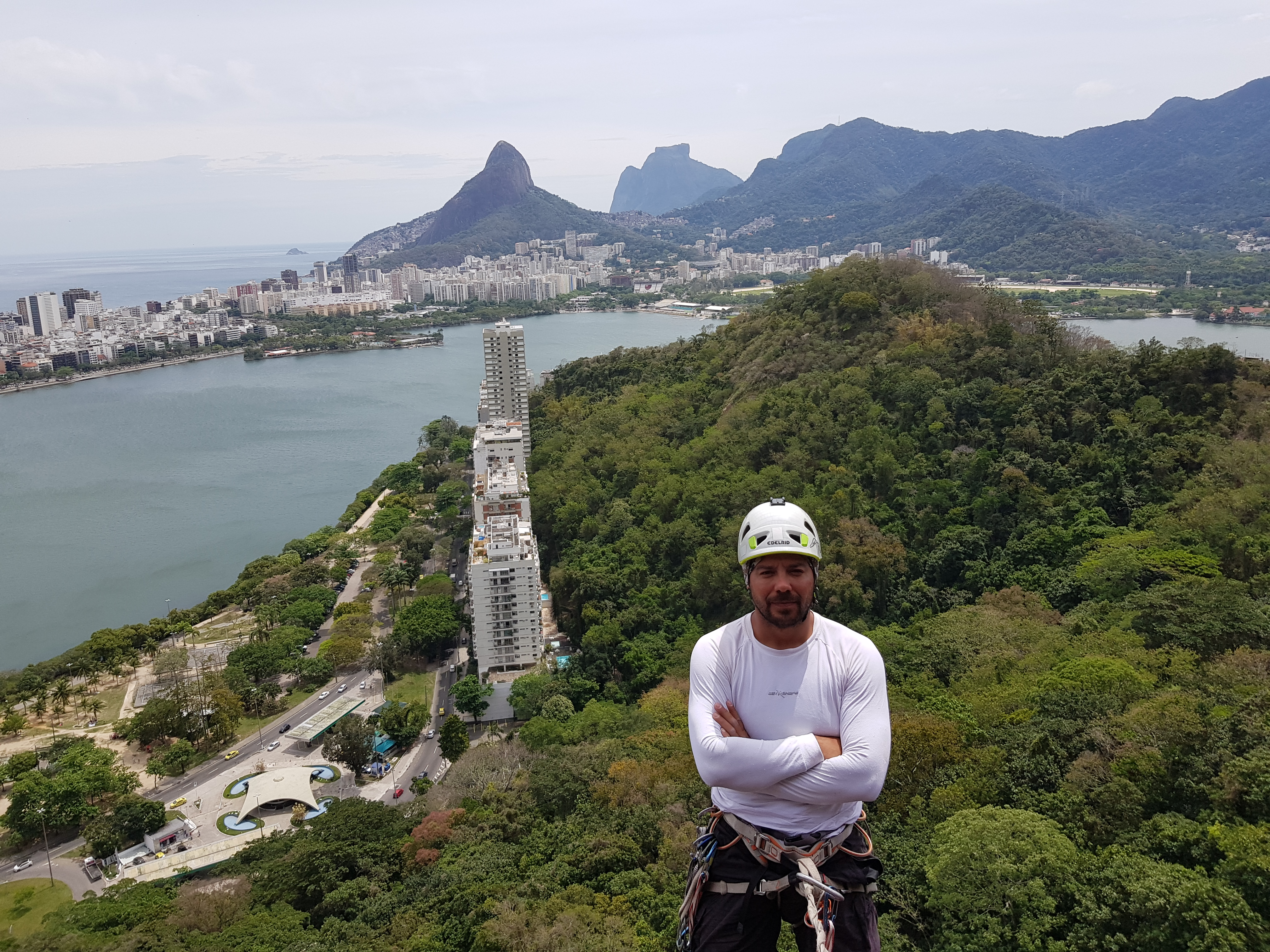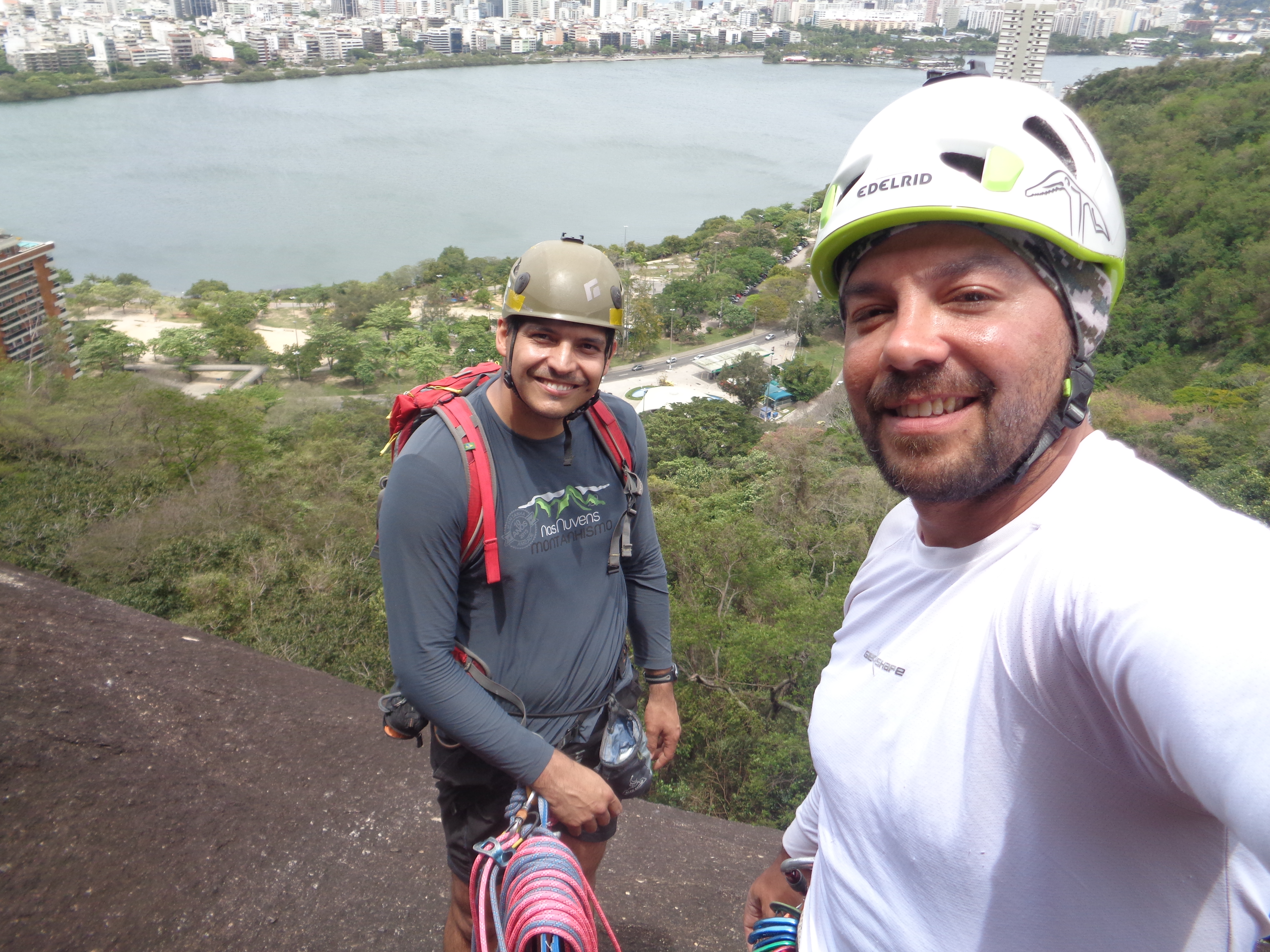 Ontem o dia foi puxado, 500 metros de parede naquele sol não foi fácil. Hoje o pé estava quadrado, ninguém estava muito diferente, mas seguimos para o Morro dos Cabritos na Lagoa Rodrigo de Freitas para mais uma escaladinha.