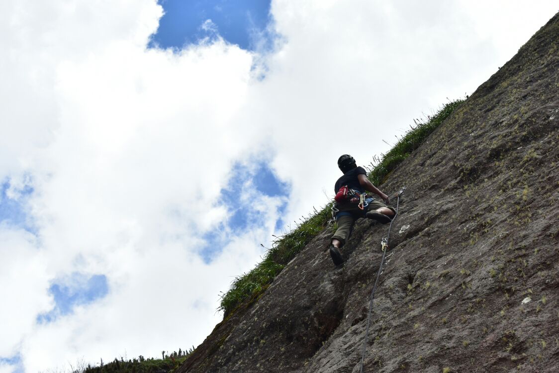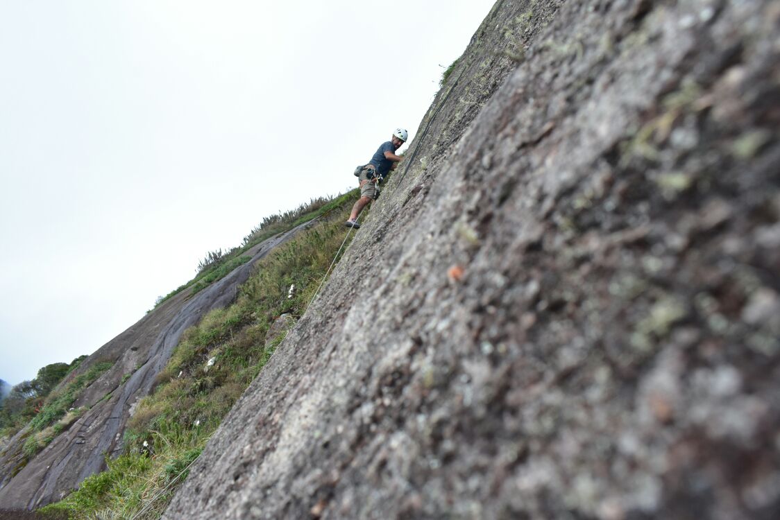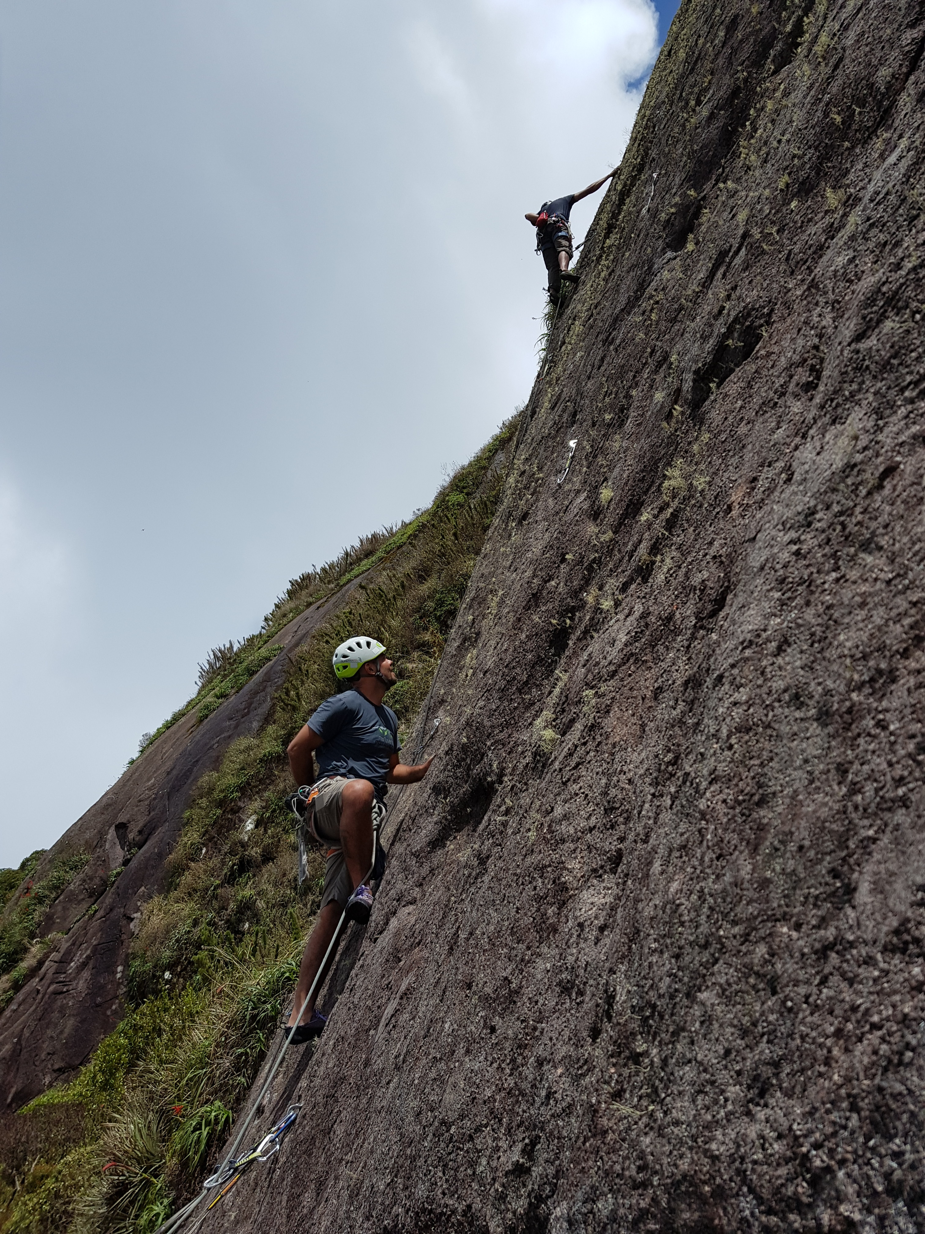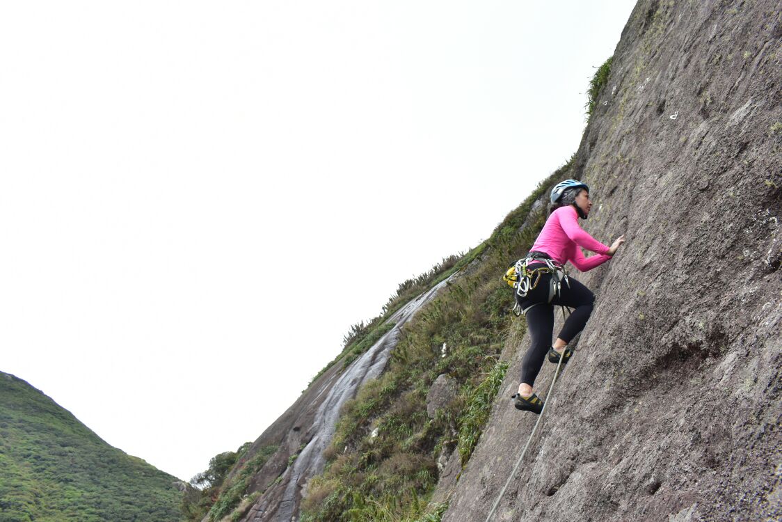 Enquanto analisava se continuaria a escalada ou não, avaliei os riscos ali envolvido caso tivesse uma queda. Depois de calcular cada movimento até chegar no final da via gritei para Michelle “escalando”, e segui cada lance que tinha visualizado antecipadamente.