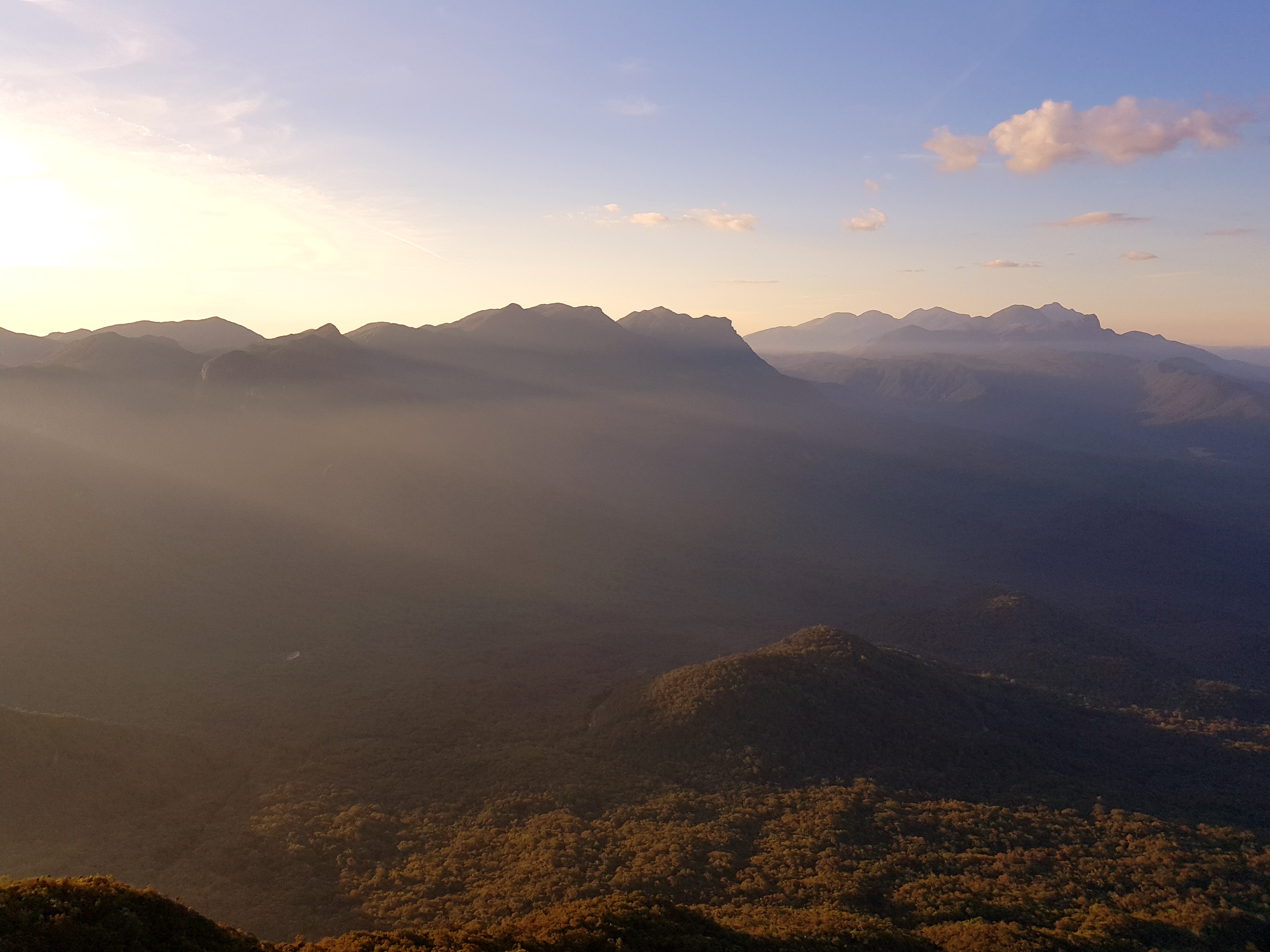 Já na P5, que também é a mesma parada da P3 da via Caroço, tiramos algumas fotos e iniciamos o processo de descida, o sol já estava se pondo e queríamos chegar ainda na base da via sem precisar usar as lanternas.