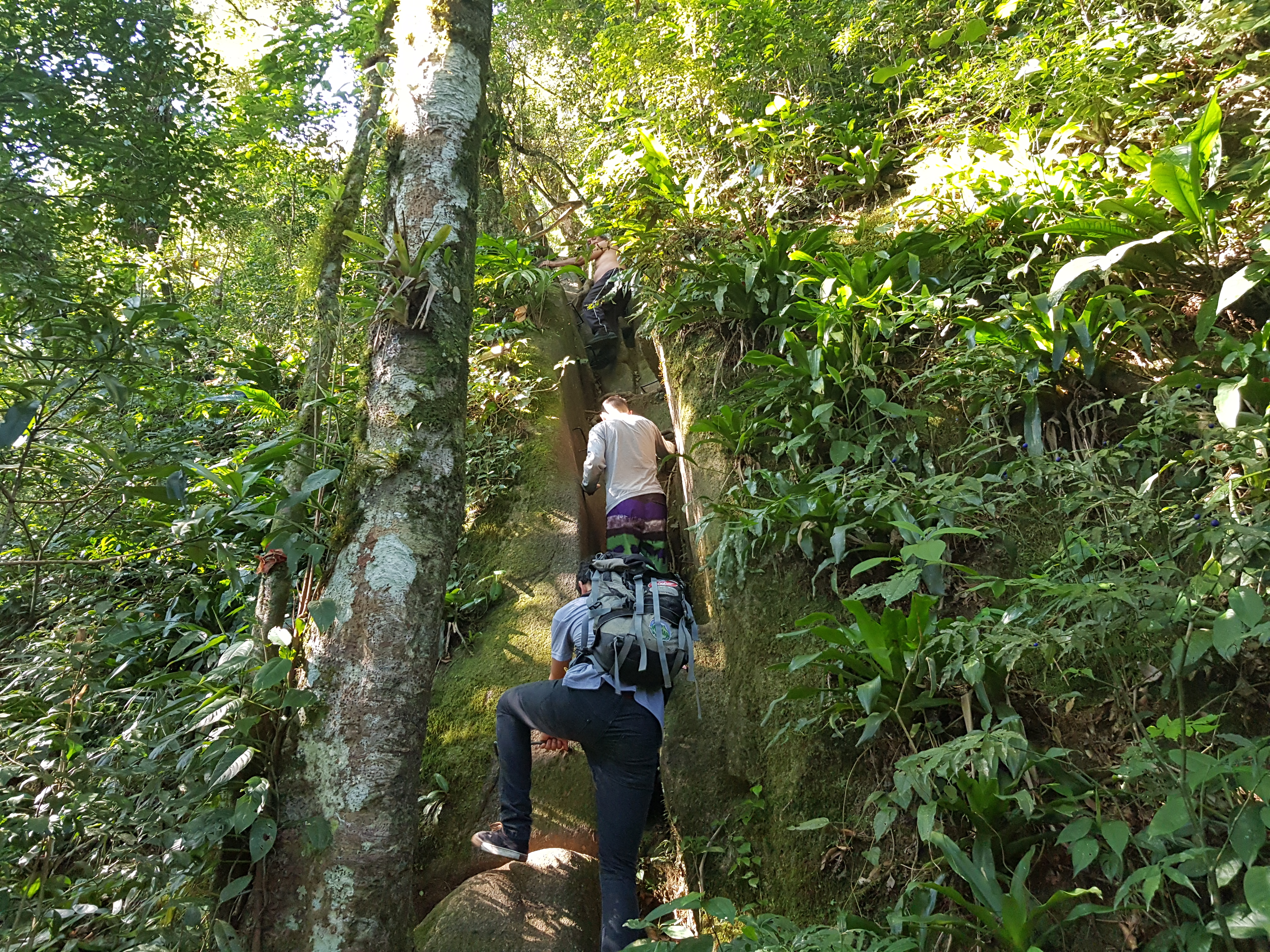 A subida foi muito lenta, meu pai carregava a maior parte da carga enquanto sobrava apenas uma pequena mochila para eu carregar. Um pouco acima do cruzo da Ponta do Tigre com o Abrolhos paramos para mais um lanche e descanso, estávamos tão cansados que acabamos dormindo por alguns minutos sentados em cima das mochilas.