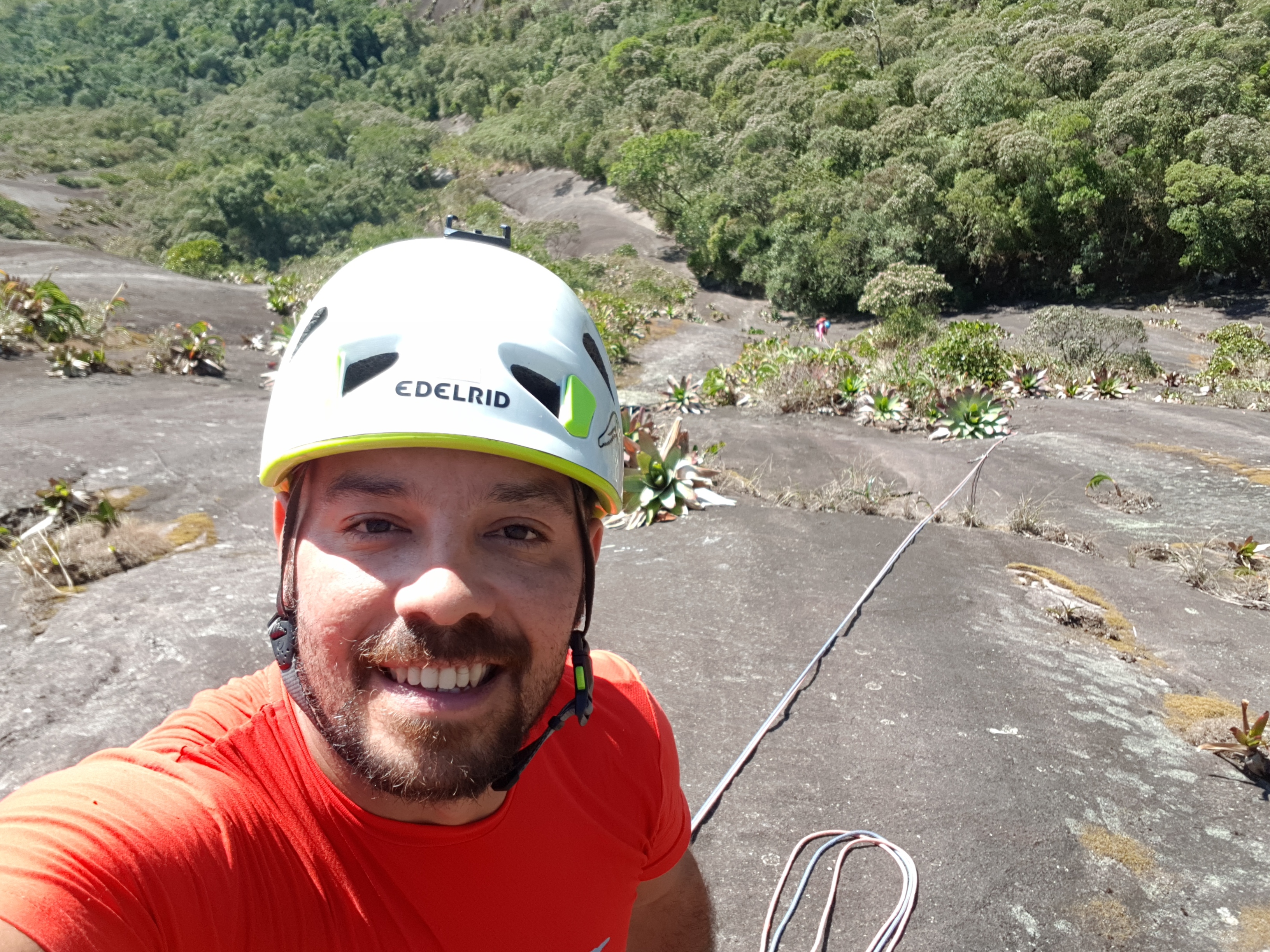 Chegamos no cume as 15:10h , o tempo estava perfeito com uma temperatura bem agradável para passar o dia todo na parede. No cume uma boa pausa para comer, descansar e aproveitar aquela montanha linda.