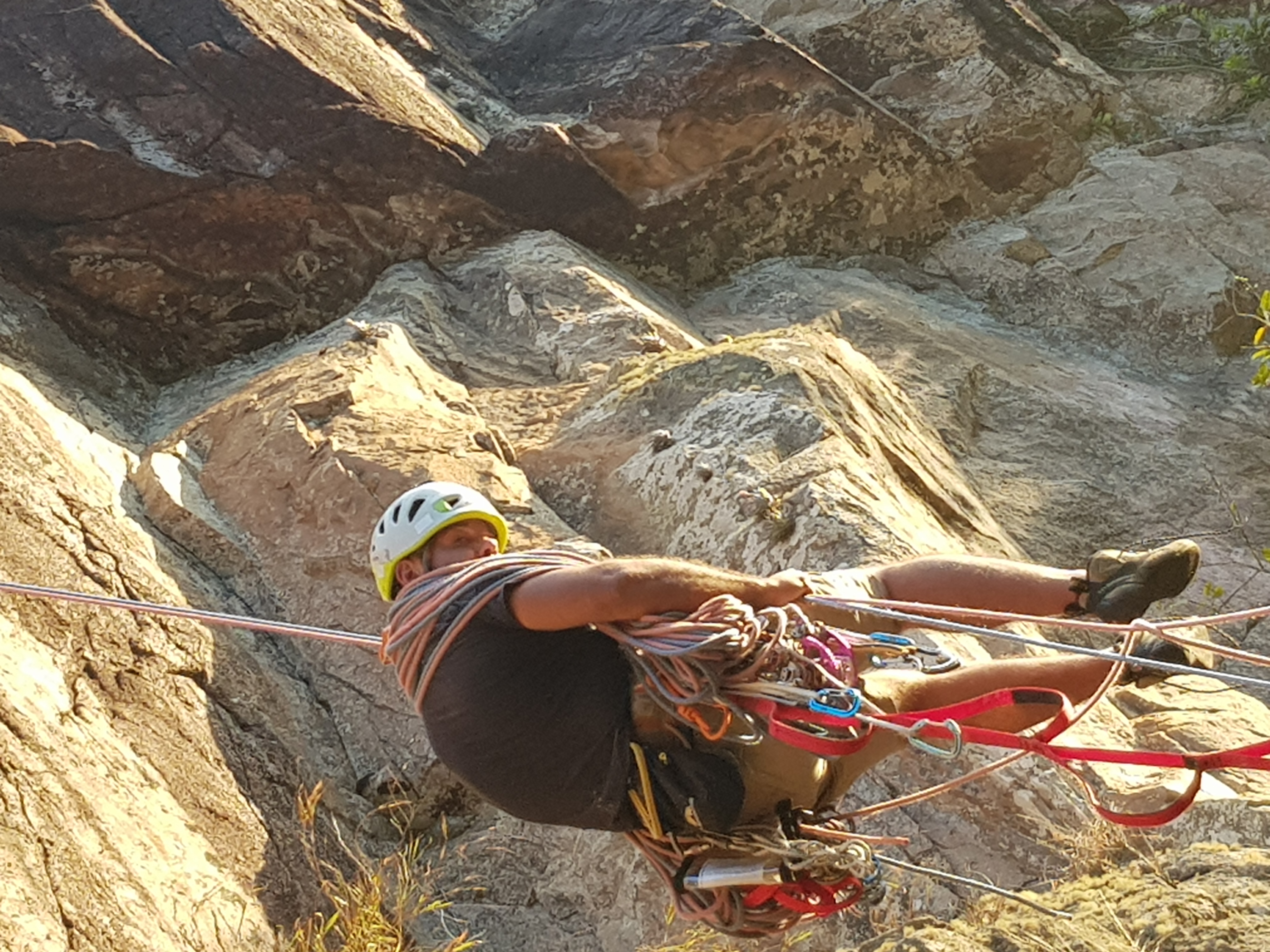 Escalamos mais a terceira enfiada devido ao horário. Mas já sabemos em qual via voltar para fazer uma escalada bem divertida.
