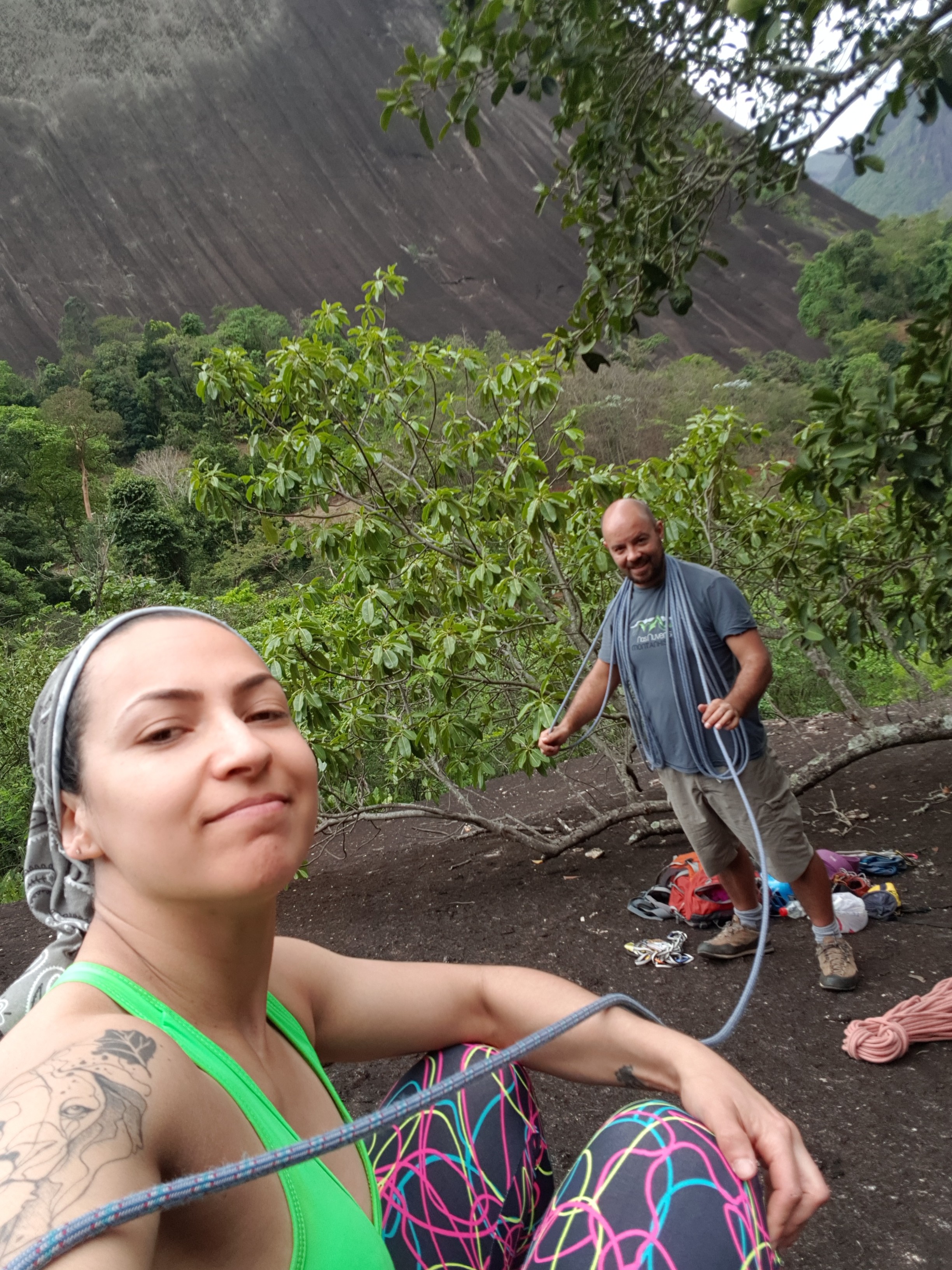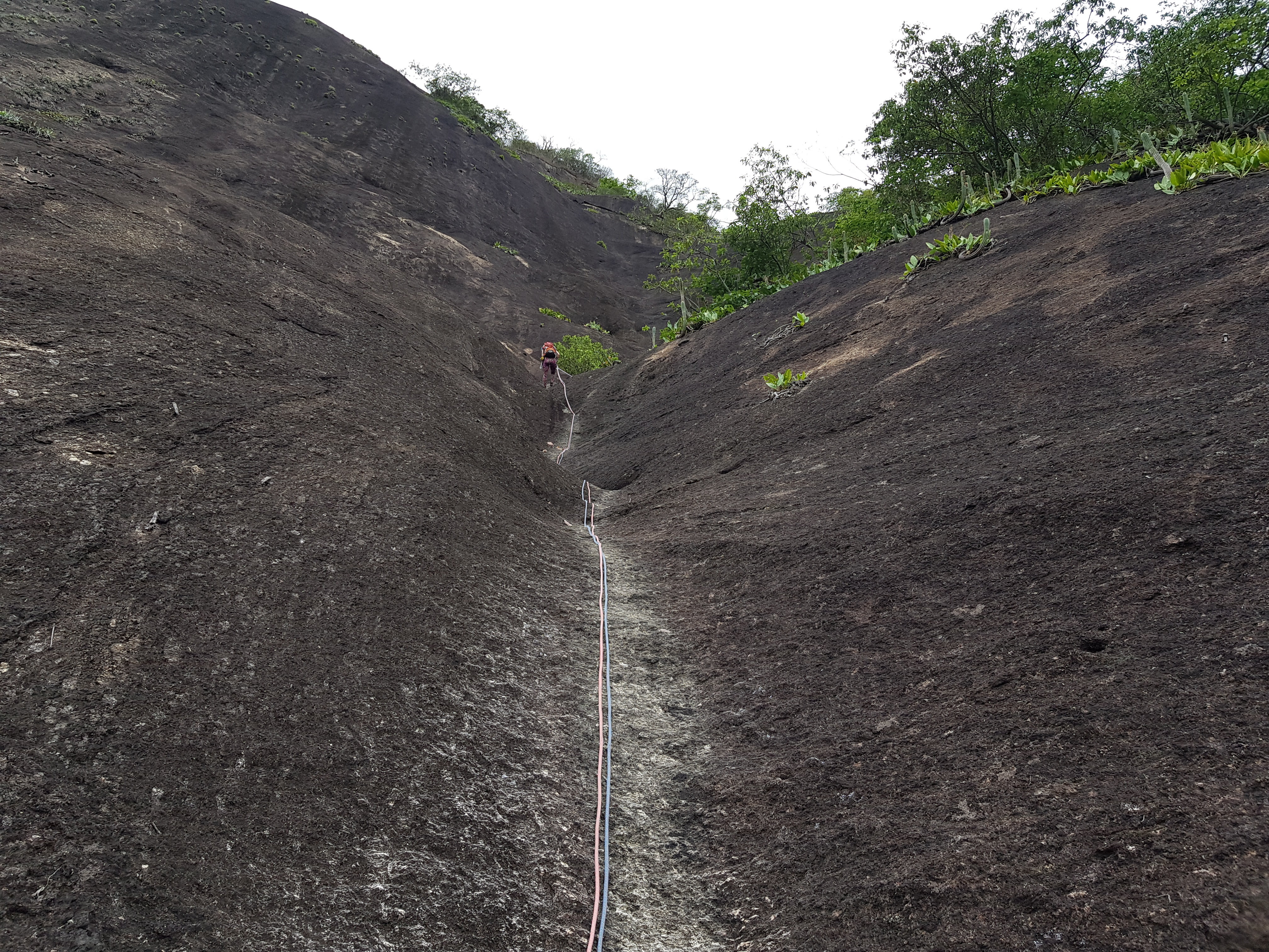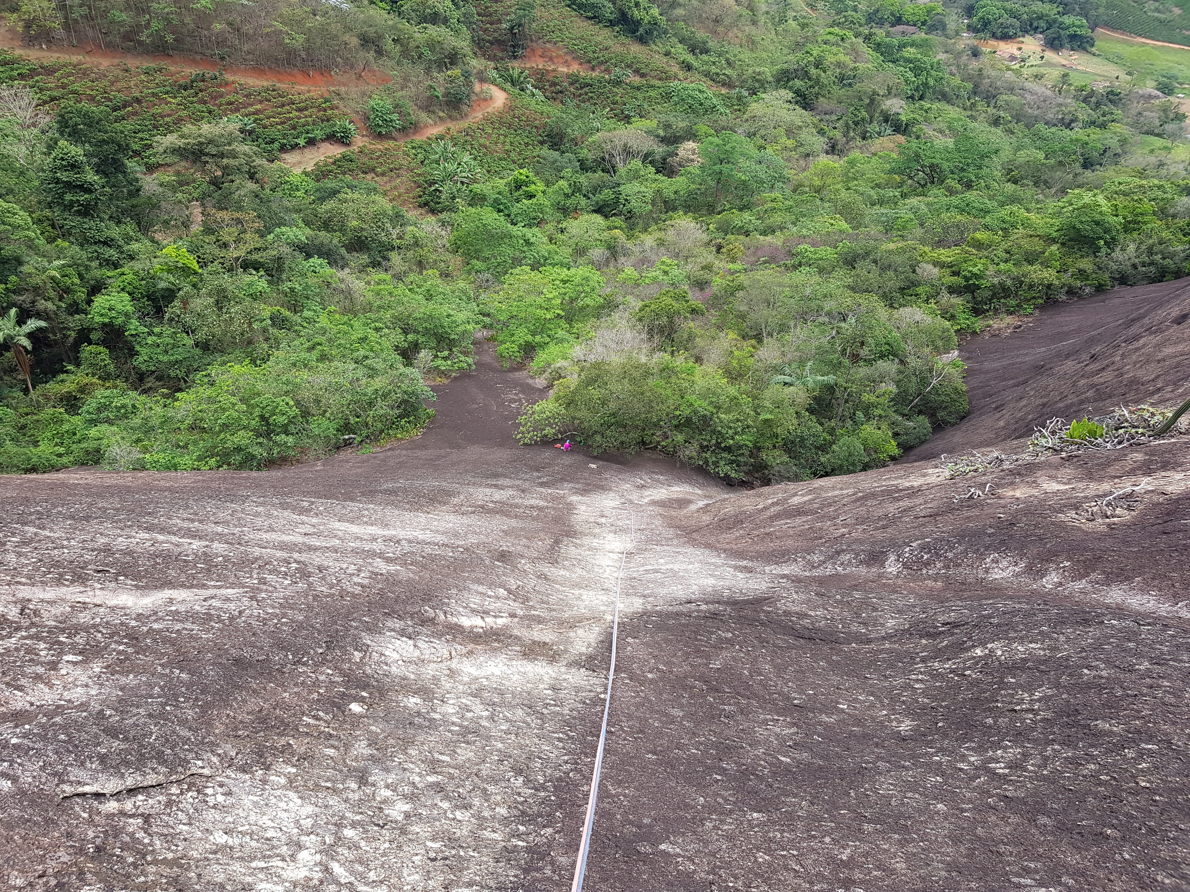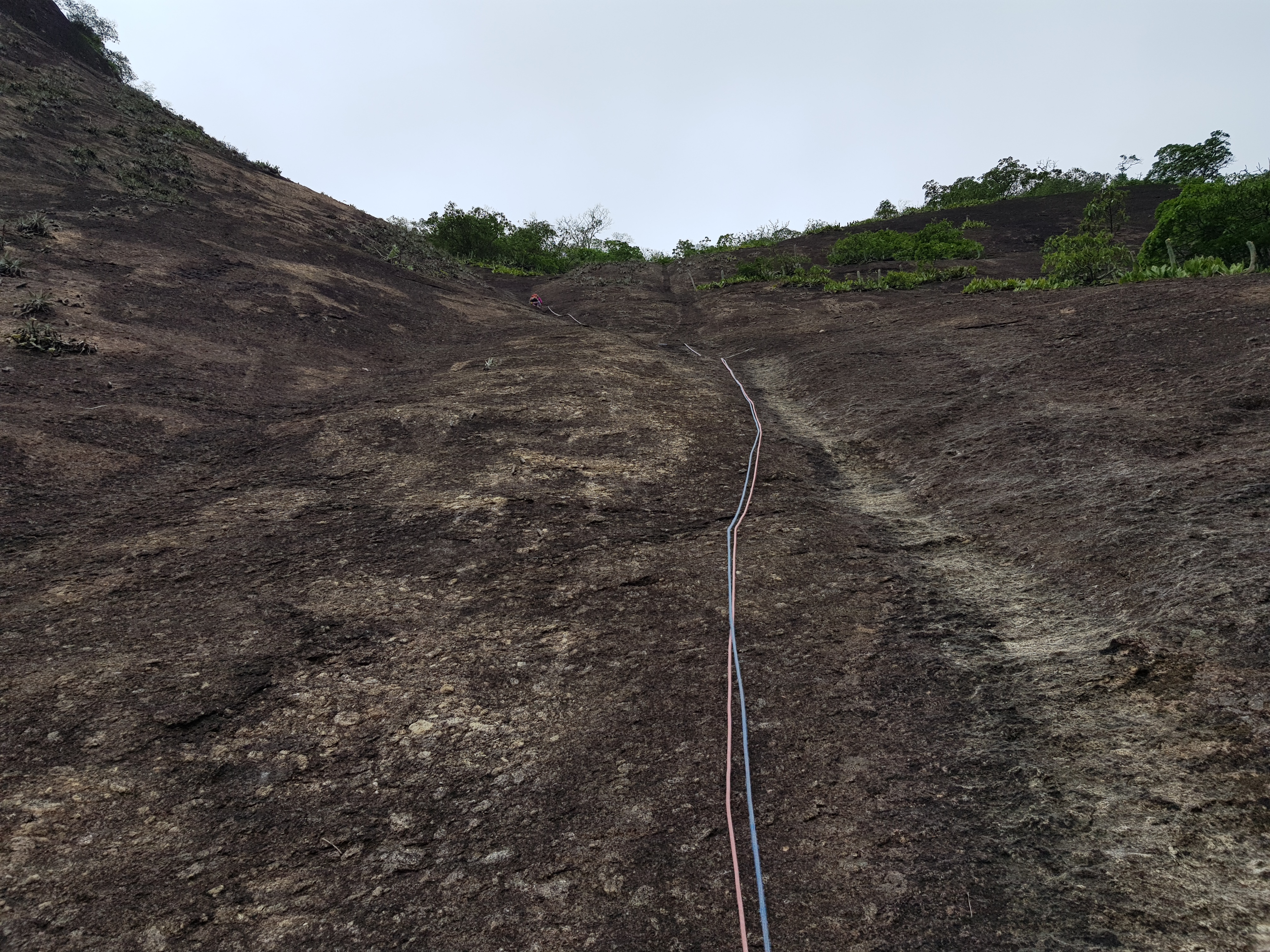 Escalada bem divertida e gostosa de fazer. No final da via, na última parada que fica quase que dentro do mato, tem um barreiro enorme, e devido à chuva o lugar estava tomado pelo barro, tirando isso a via é muito bacana.